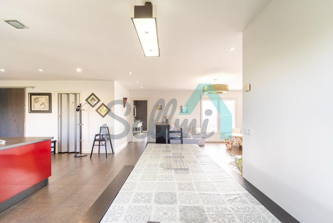 Planta baja (161 m2): actualmente cuenta con tres dormitorios, un gran gimnasio con diferentes máquinas, dos baños con ducha (uno de ellos aún sin terminar), gran salón y cocina también pendiente de acabar. Esta planta puede dividirse fácilmente en dos apartamentos de turismo rural. Cuenta además con acceso directo a la terraza y al jardín.