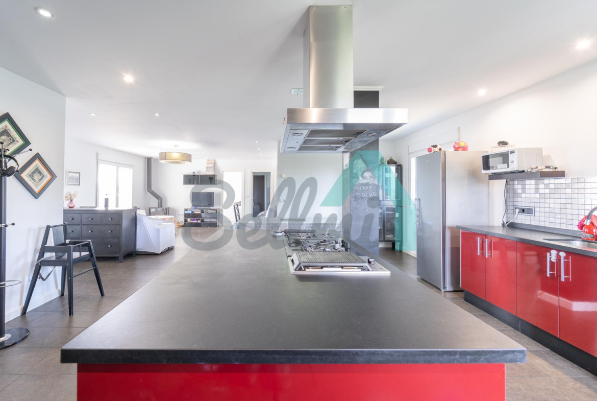 La vivienda, construida en 2010, tiene una superficie construida de 383 m² distribuidos en tres plantas.