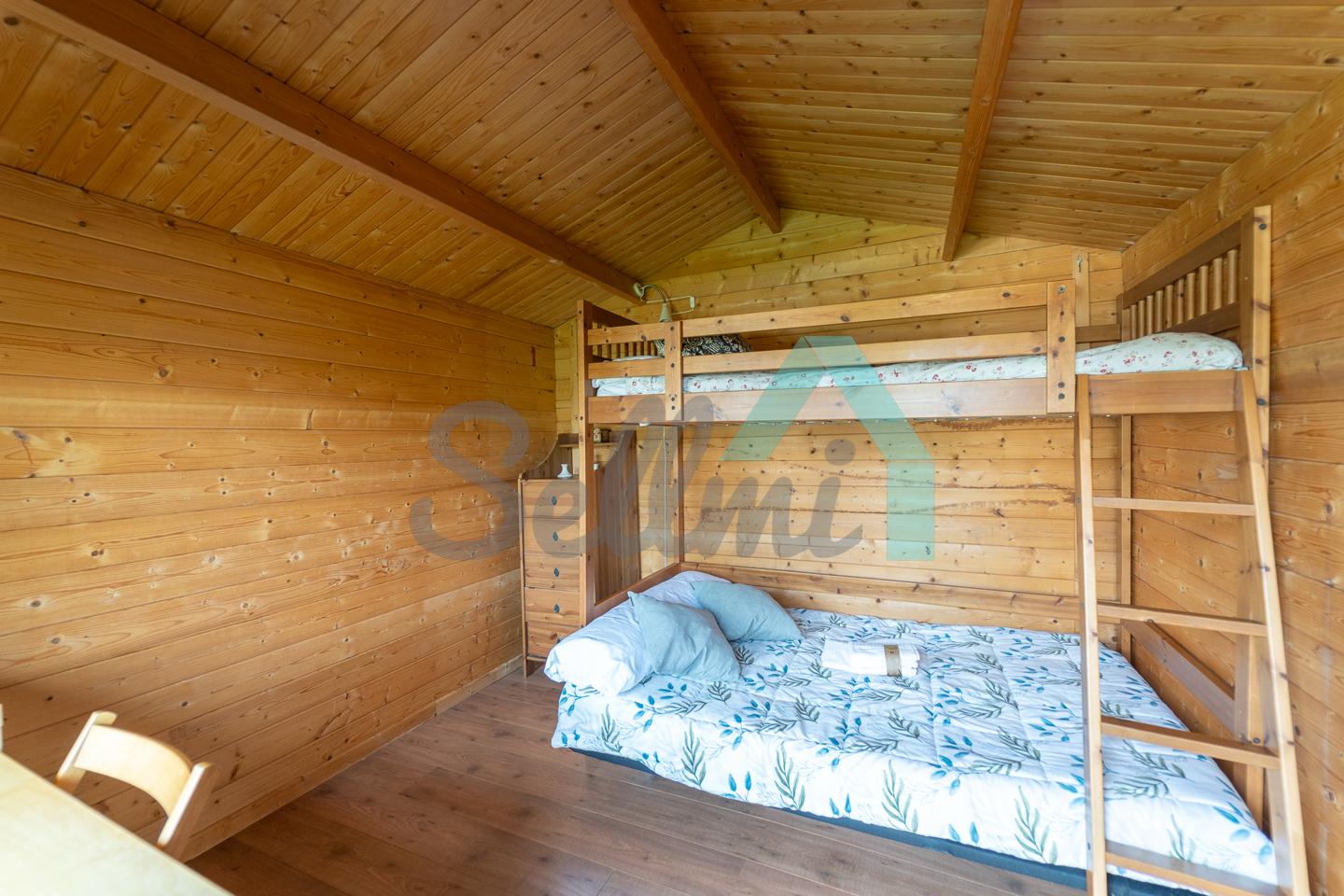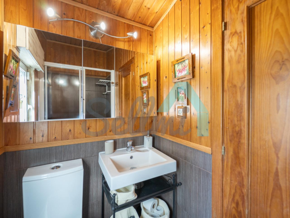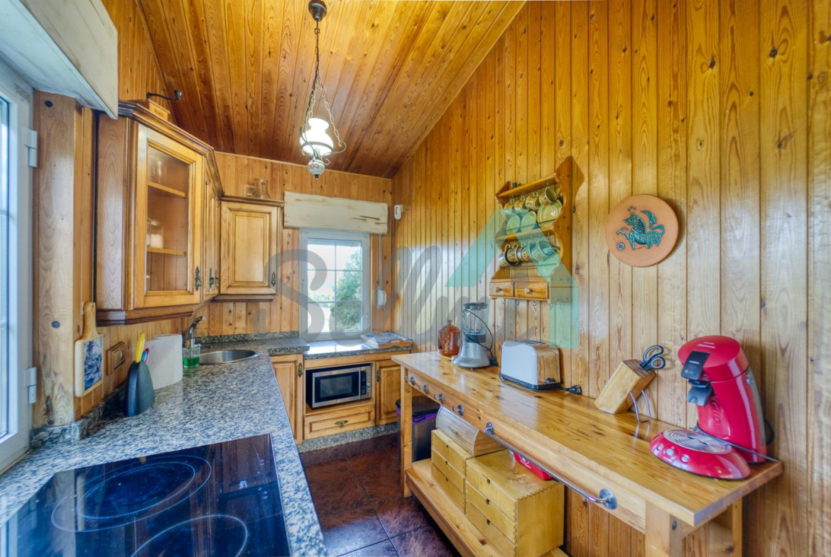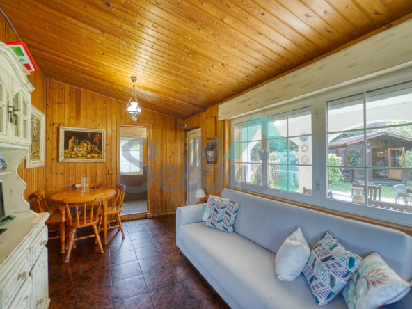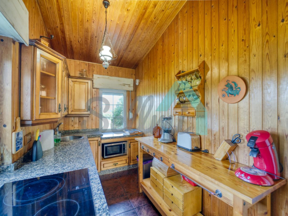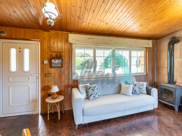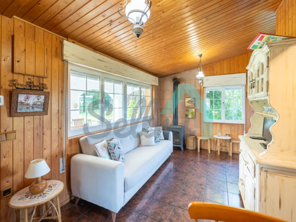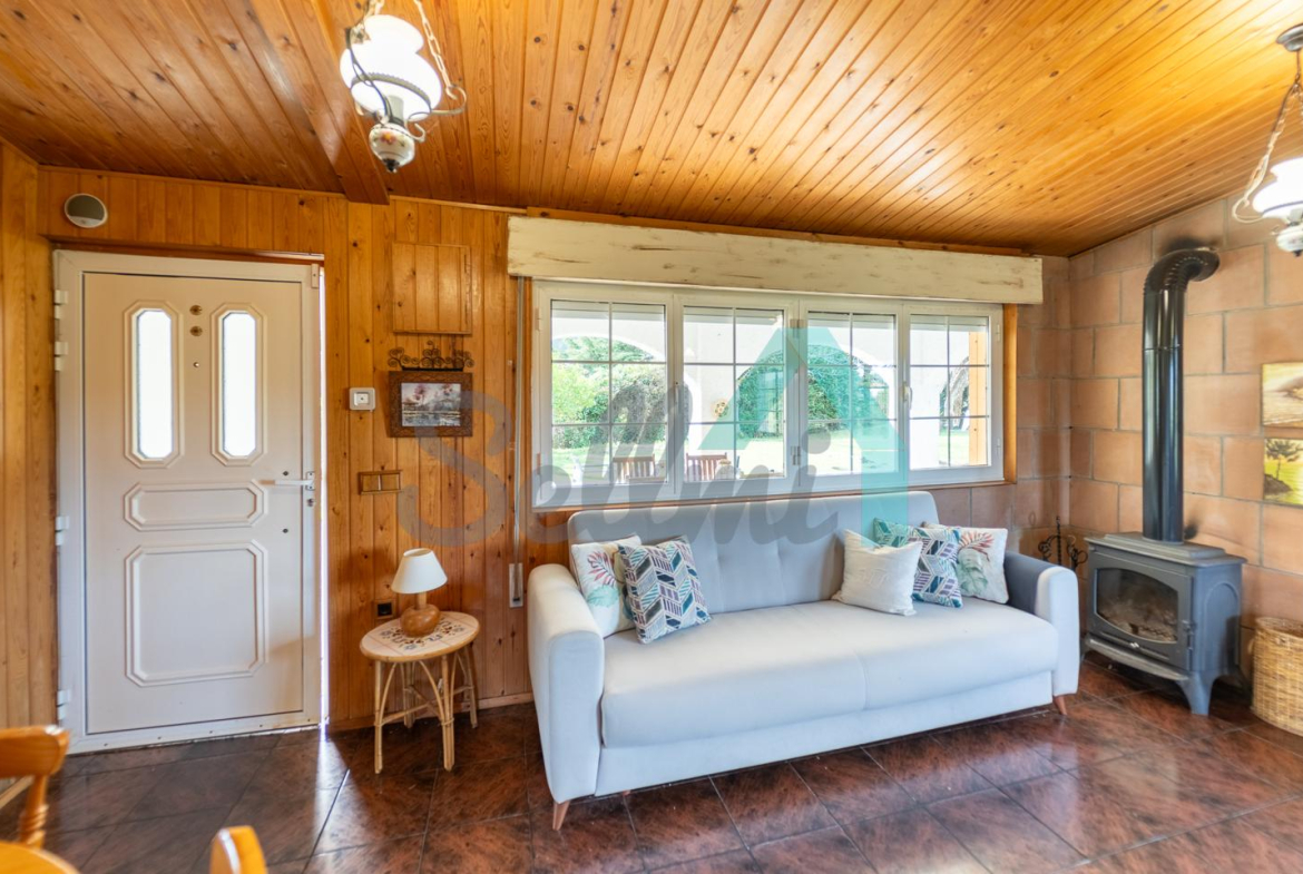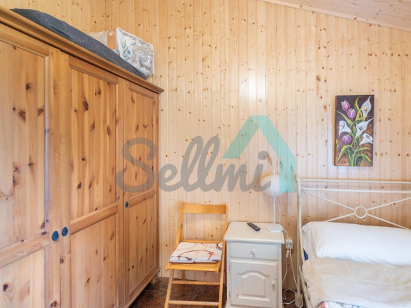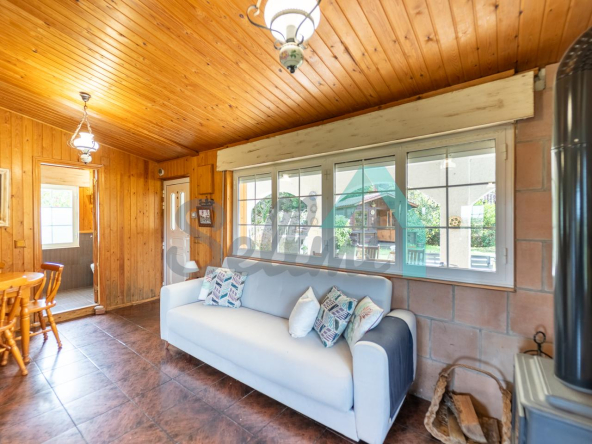 La vivienda, construida en 1994 y que se encuentra en perfecto estado, tiene una superficie construida de 74 m2 distribuidos en salón comedor con chimenea, cocina amueblada, dos habitaciones y un baño completo. En el exterior cuenta con amplia terraza/porche.