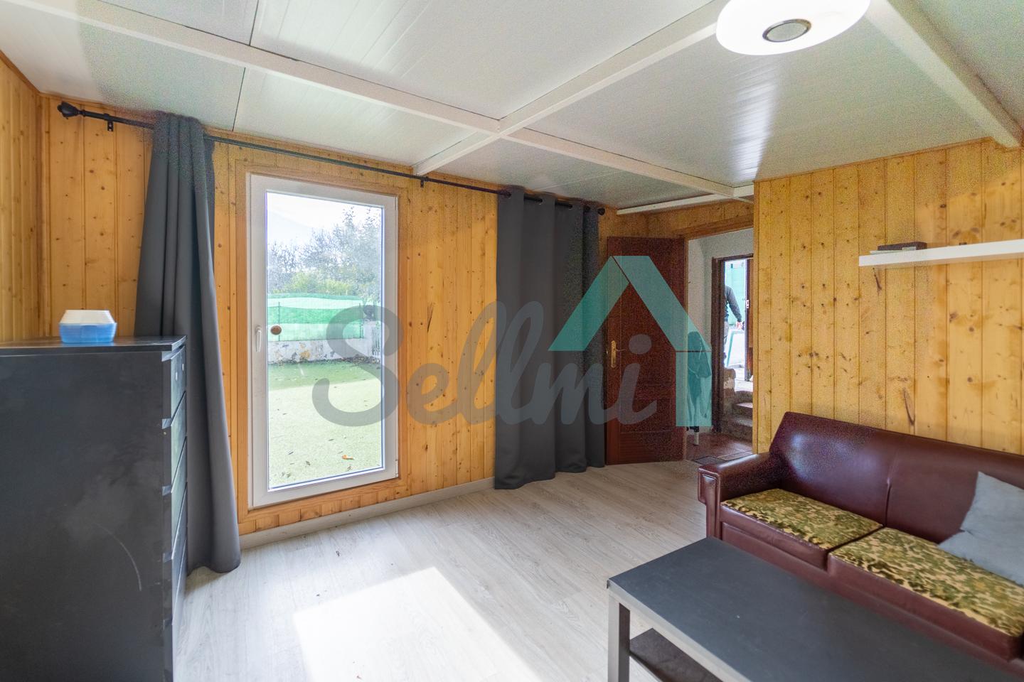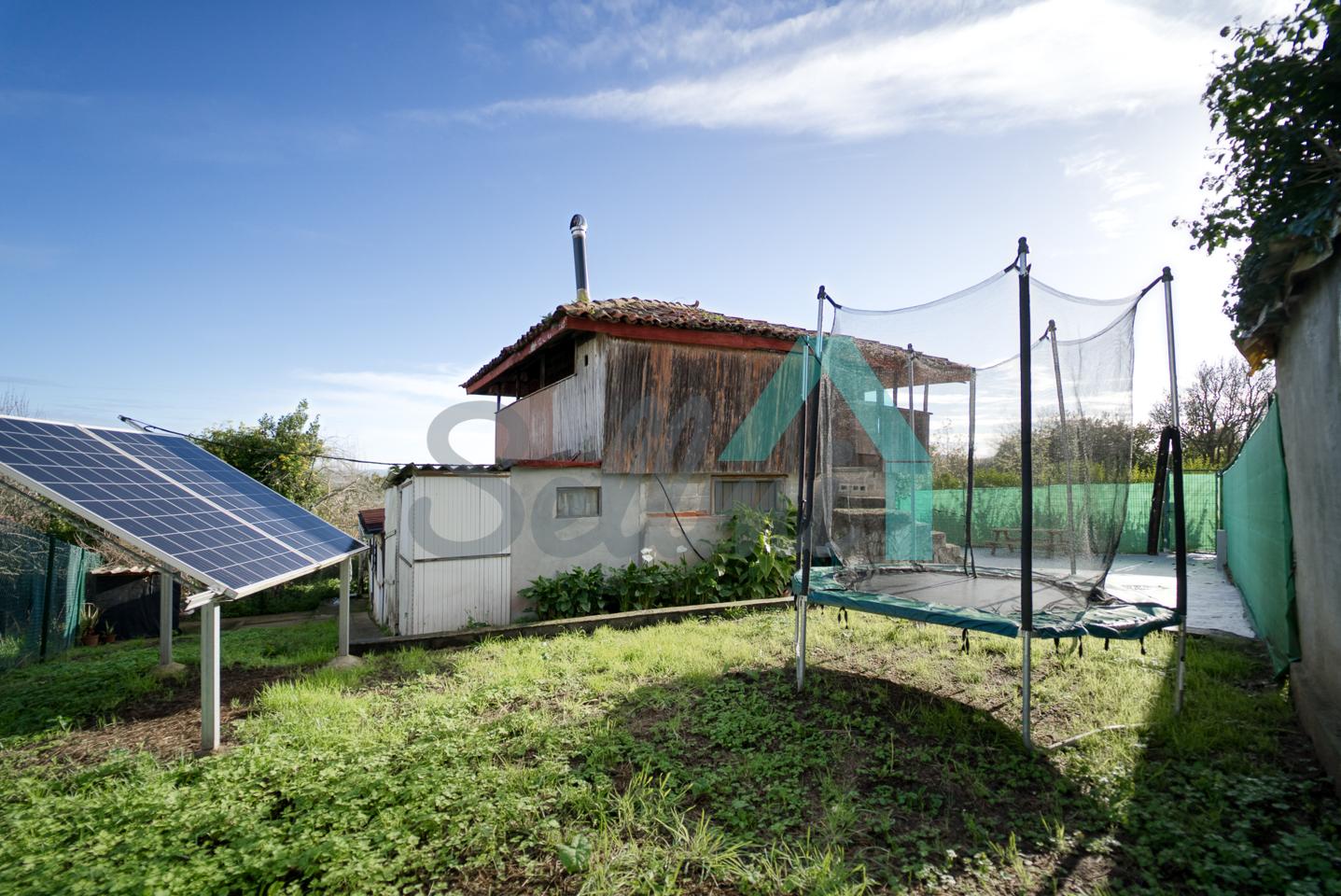 Se trata de una finca cerrada de 300 m2 que dispone de agua, luz (por placas solares), zona de césped artificial con piscina desmontable y otra zona con una mesa de camping exterior.