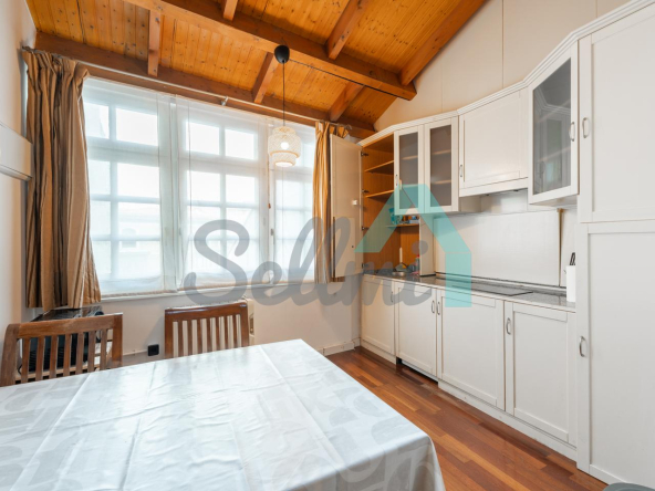 Piso dúplex en alquiler situado en la zona centro y casco antiguo de Avilés. Se encuentra en la tercera planta de un edificio construido en 1927, sin ascensor. Es totalmente exterior, con orientación sur y norte.