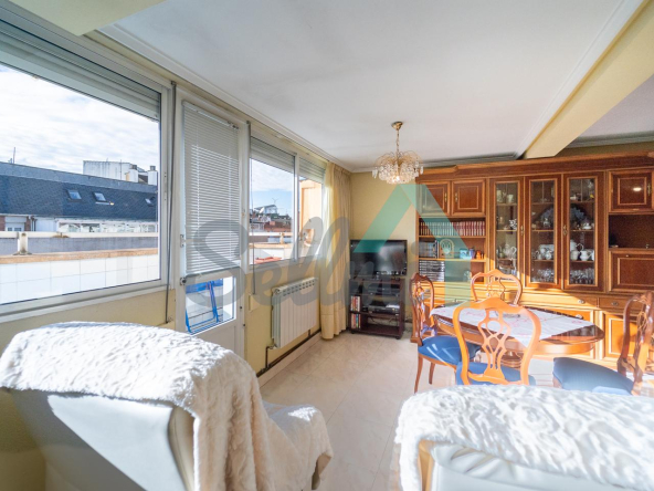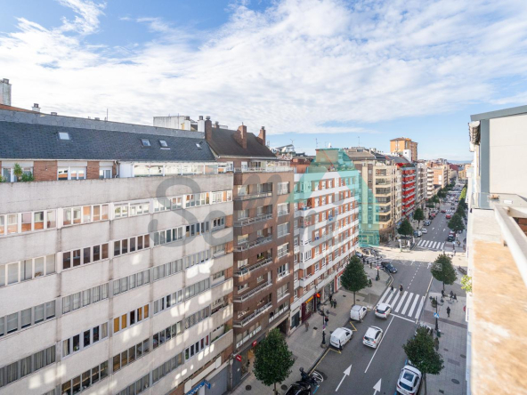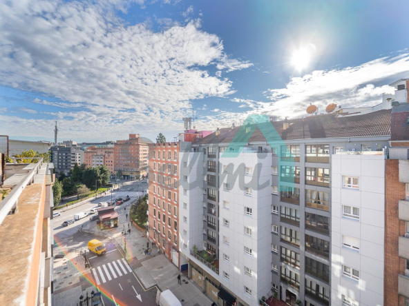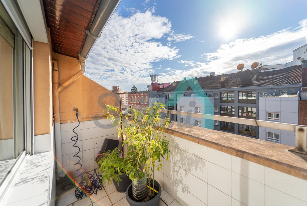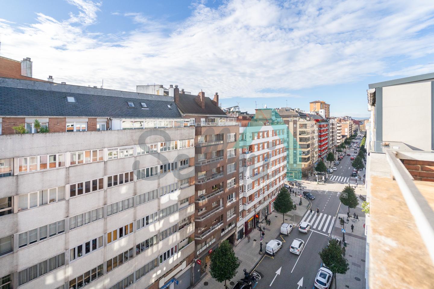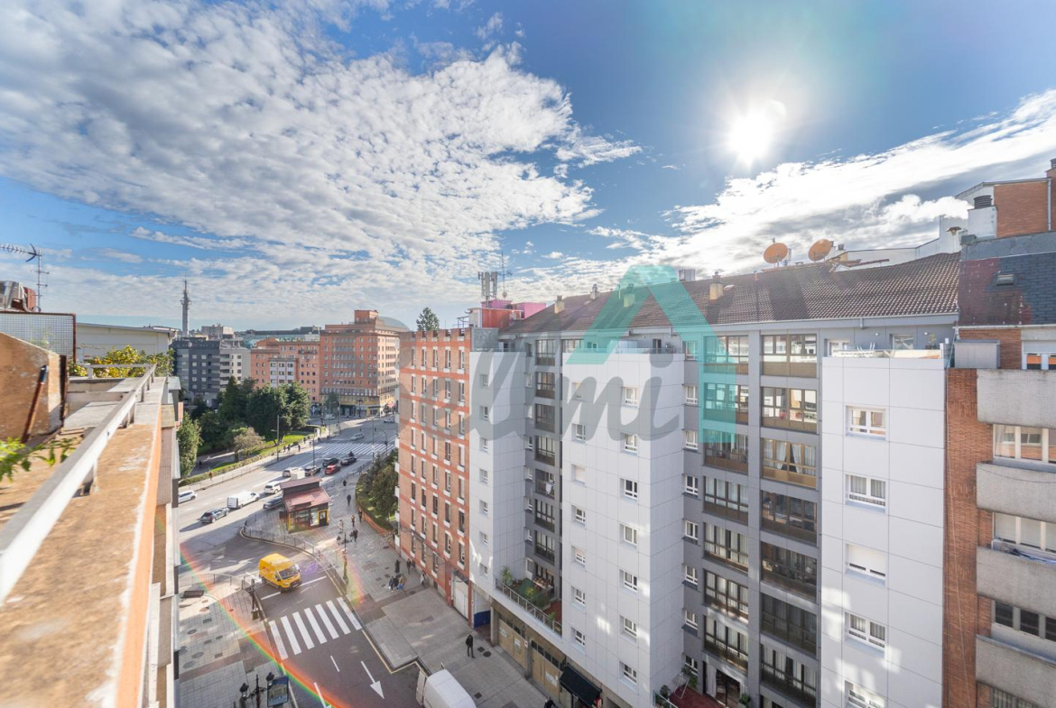 Piso dúplex en venta en Valentín Masip, Oviedo. Se encuentra en la octava planta de un edificio construido en 1961, sin barreras arquitectónicas y que cuenta con ascensor. Es exterior y muy luminoso, con orientación sur.
