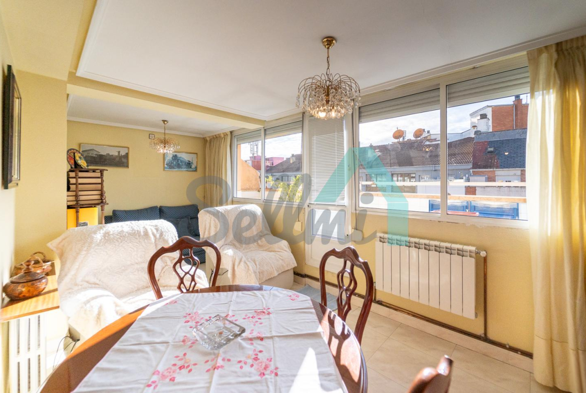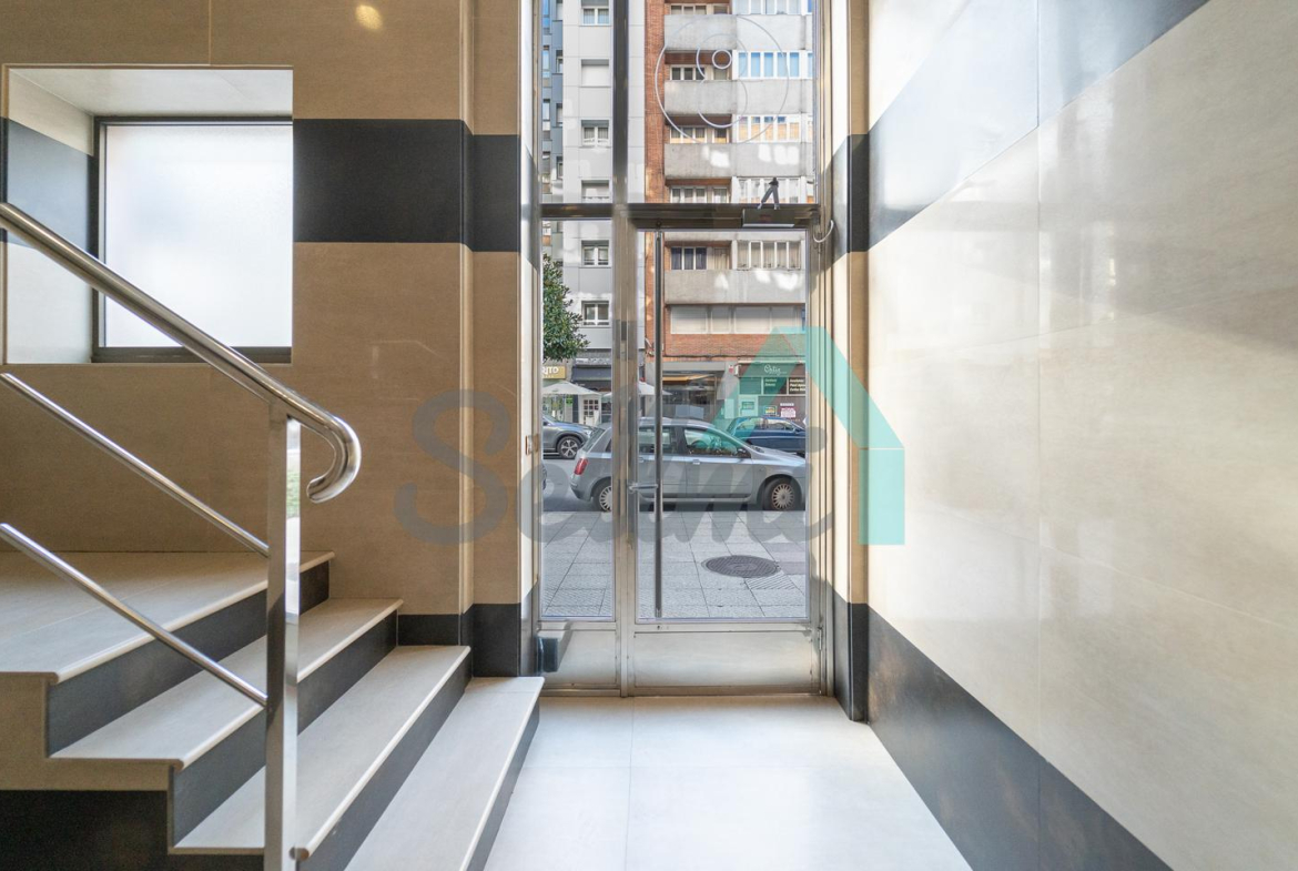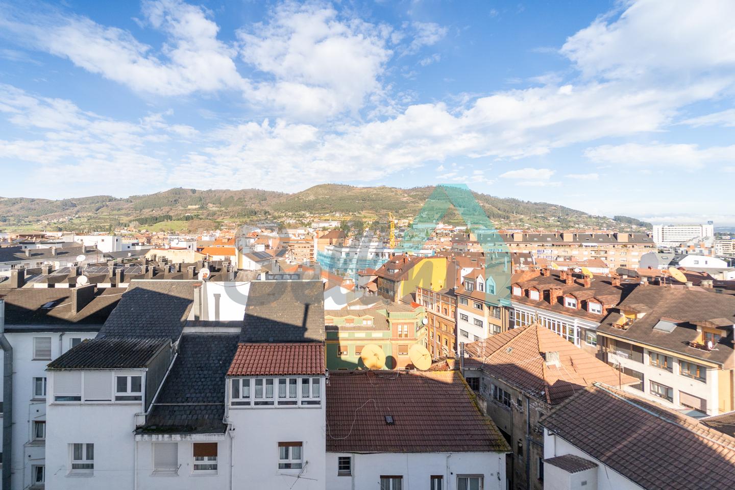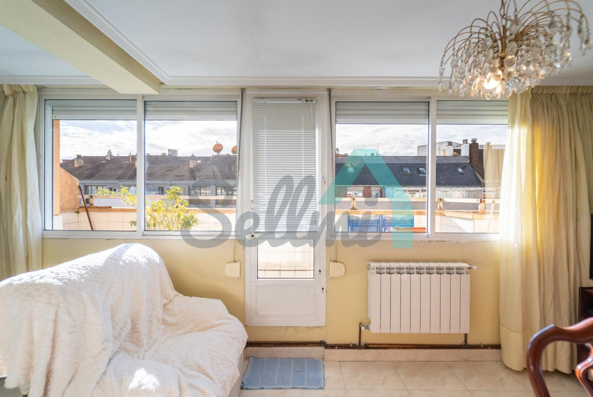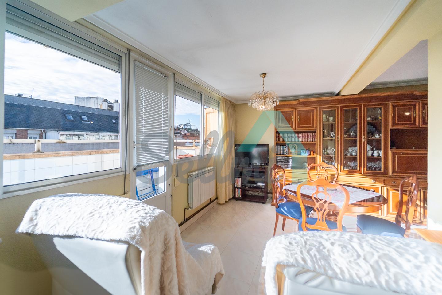 Piso dúplex en venta en Valentín Masip, Oviedo. Se encuentra en la octava planta de un edificio construido en 1961, sin barreras arquitectónicas y que cuenta con ascensor. Es exterior y muy luminoso, con orientación sur.