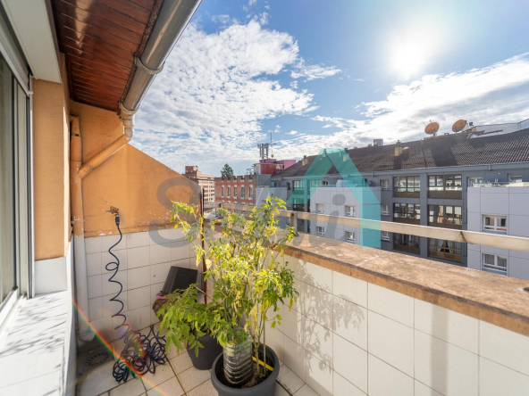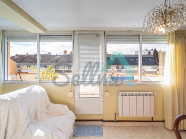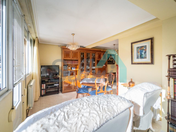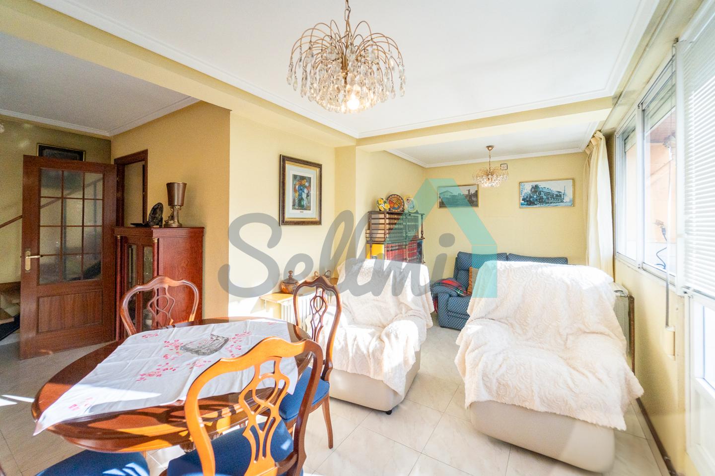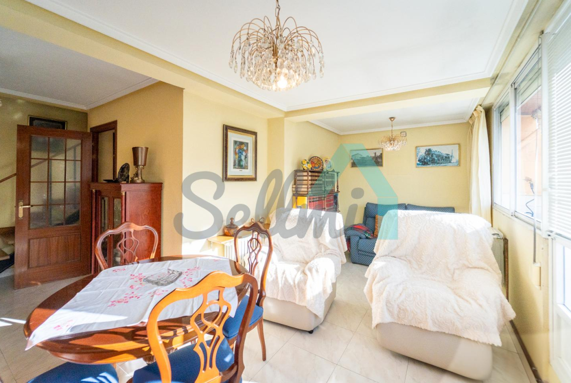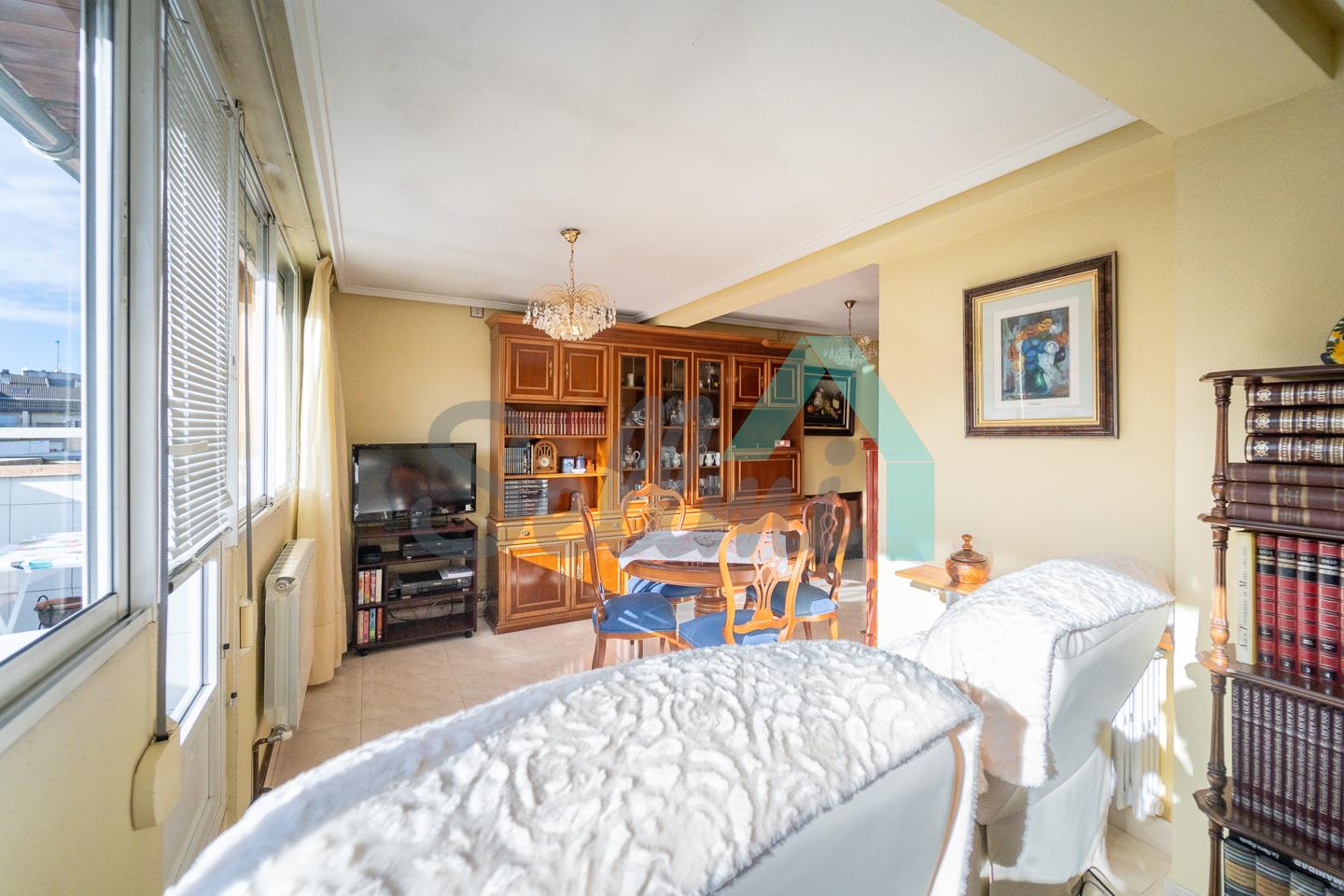 Piso dúplex en venta en Valentín Masip, Oviedo. Se encuentra en la octava planta de un edificio construido en 1961, sin barreras arquitectónicas y que cuenta con ascensor. Es exterior y muy luminoso, con orientación sur.