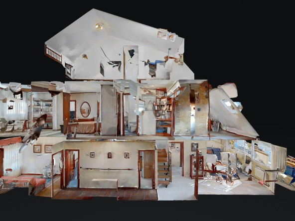 La vivienda tiene una superficie construida de 100 m² distribuidos en dos plantas más bajocubierta.
