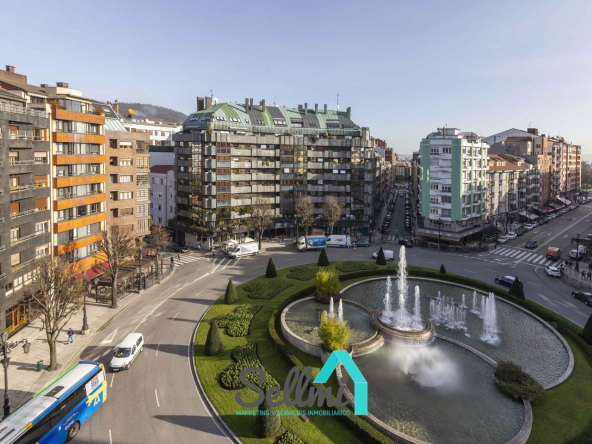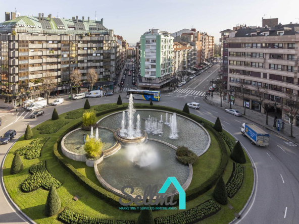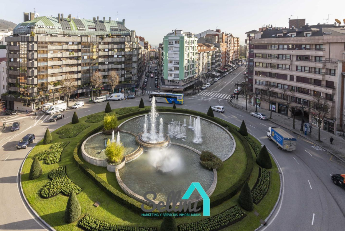 Piso dúplex en venta en la zona más exclusiva de Oviedo, con vistas a la Plaza de América y al Real Club de Tenis. Está ubicado en un edificio construido en 1980, que cuenta con servicios centrales, portero físico, salvaescaleras y ascensor.