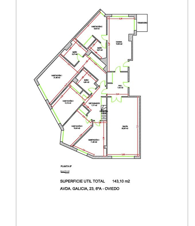 Planta principal (164 m2), con hall de entrada, salón comedor, cocina amueblada y equipada, tendedero, cinco habitaciones y tres baños completos.