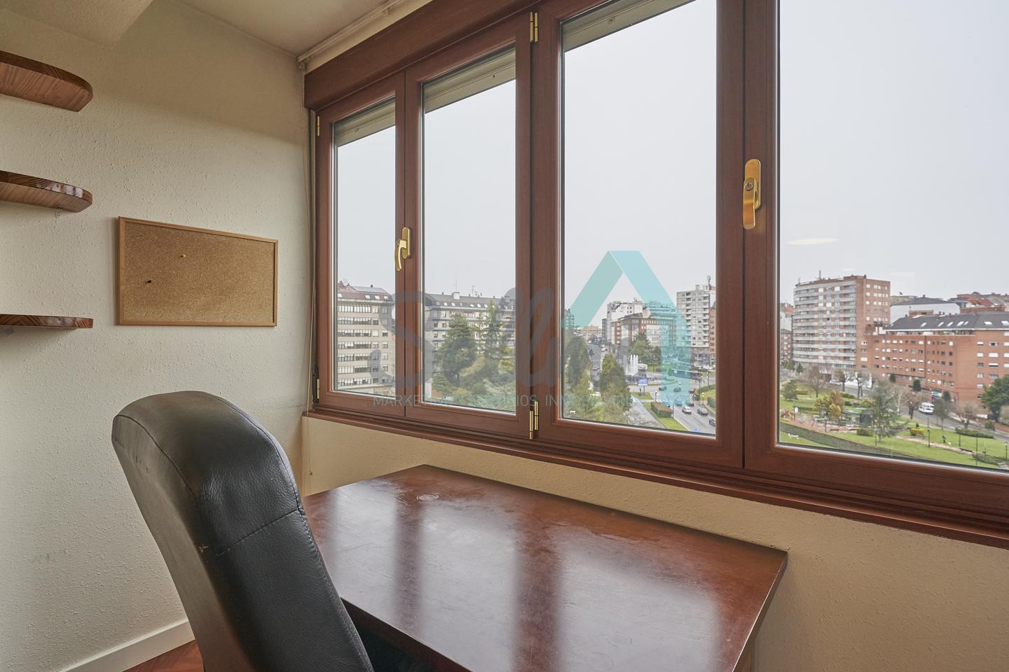 Habitaciones en alquiler en piso compartido situado en la zona de Buenavista, Oviedo. Está ubicado en la sexta planta de un edificio con portero físico, servicios centrales y ascensor. La vivienda goza de luminosidad gracias a su altura. Orientación sureste.