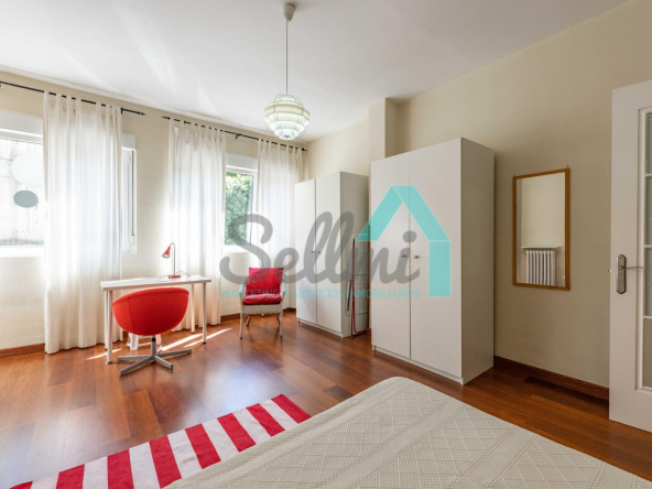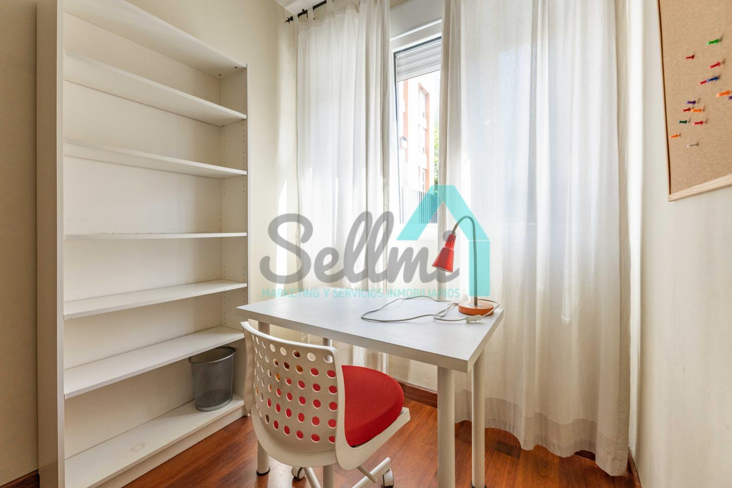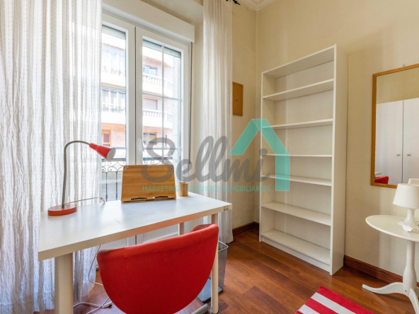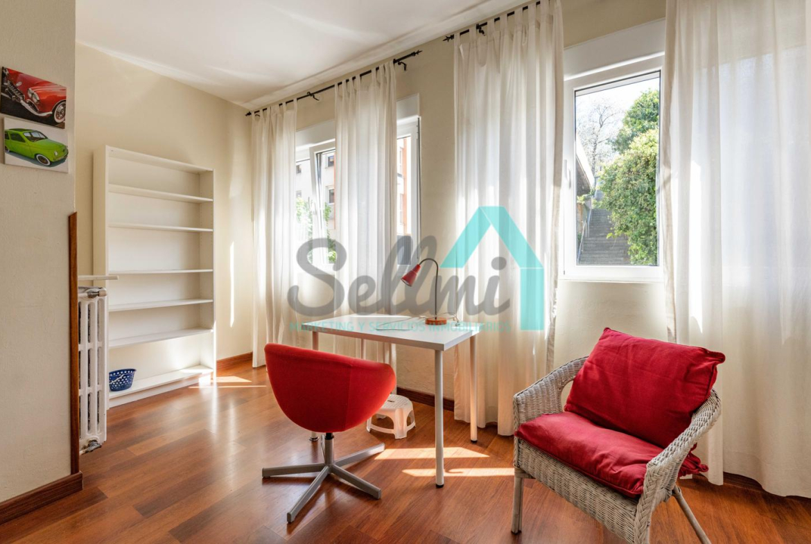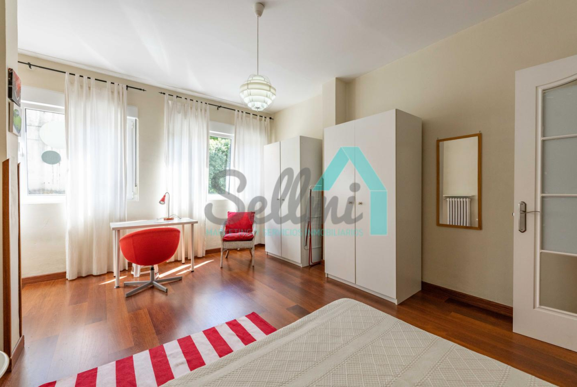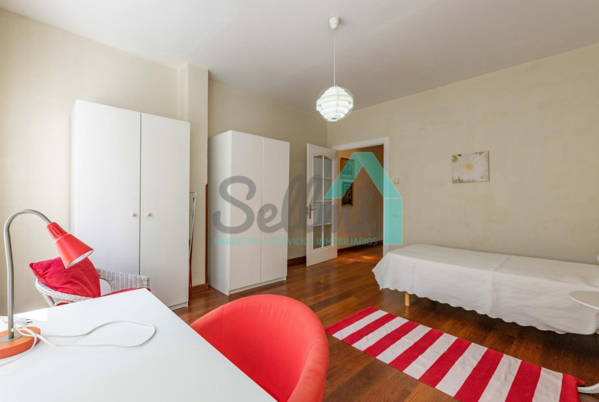 Dispone de calefacción individual de gas ciudad, suelos de tarima y gres, ventanas de doble acristalamiento y de madera, mesas de estudio, etc.