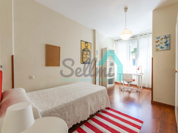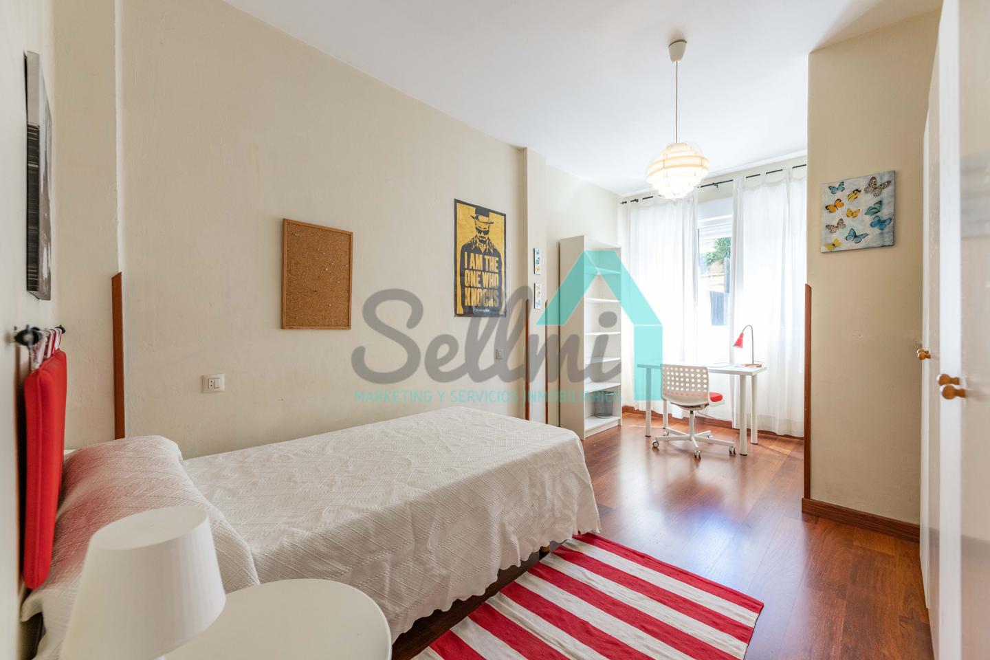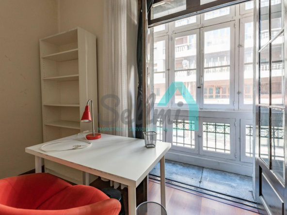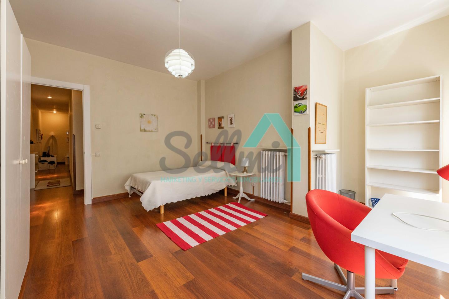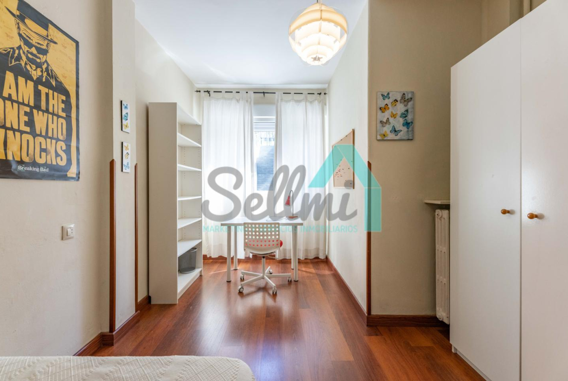 Dispone de calefacción individual de gas ciudad, suelos de tarima y gres, ventanas de doble acristalamiento y de madera, mesas de estudio, etc.
