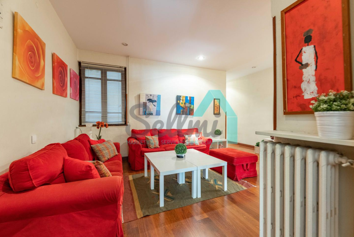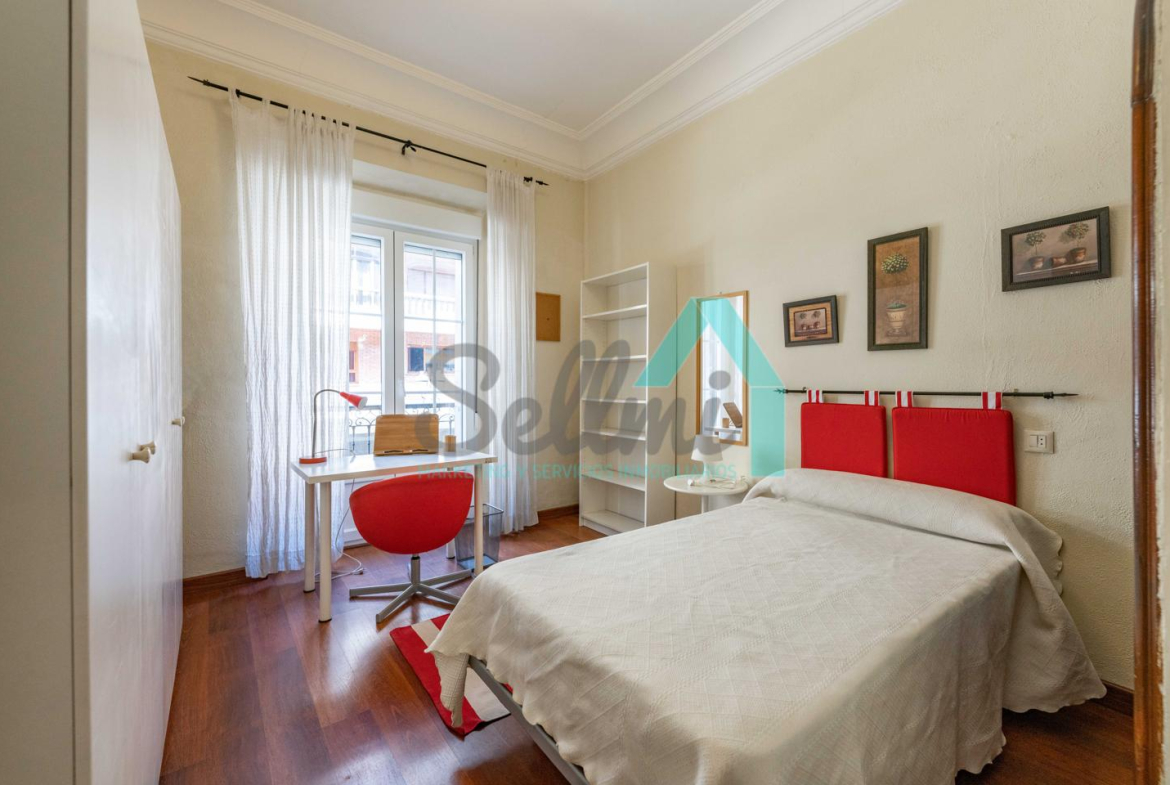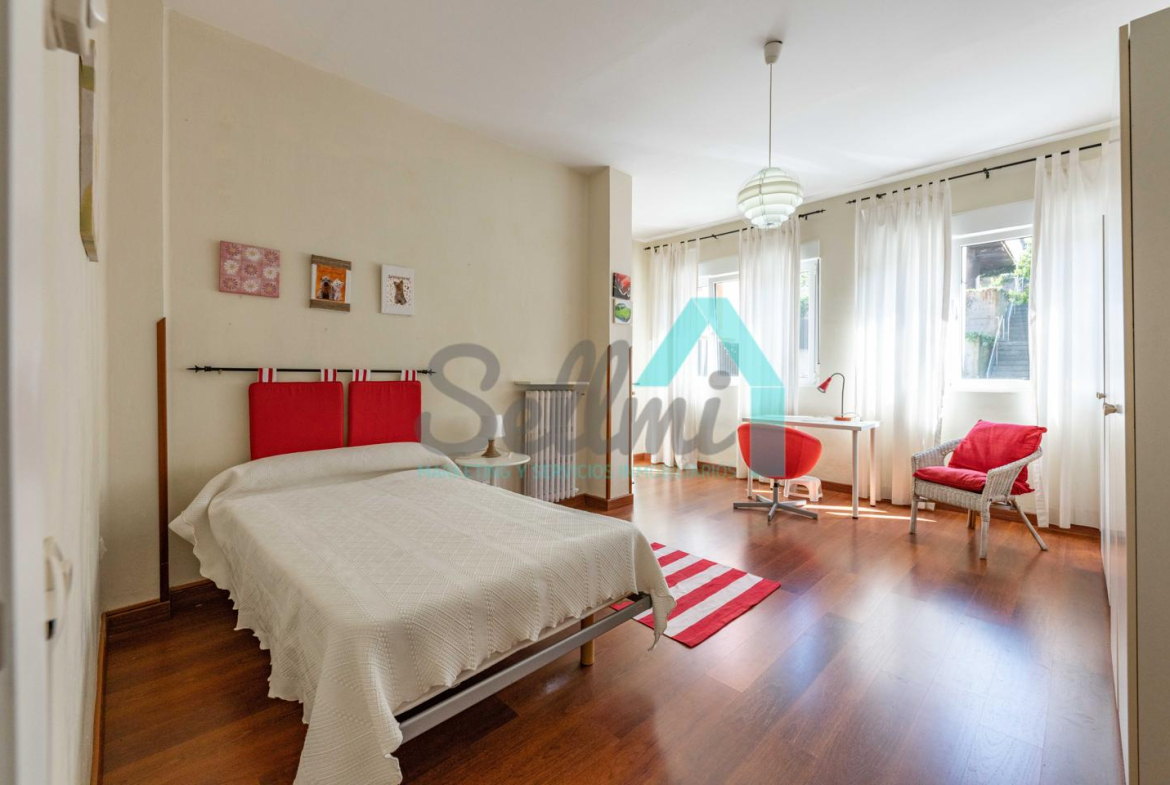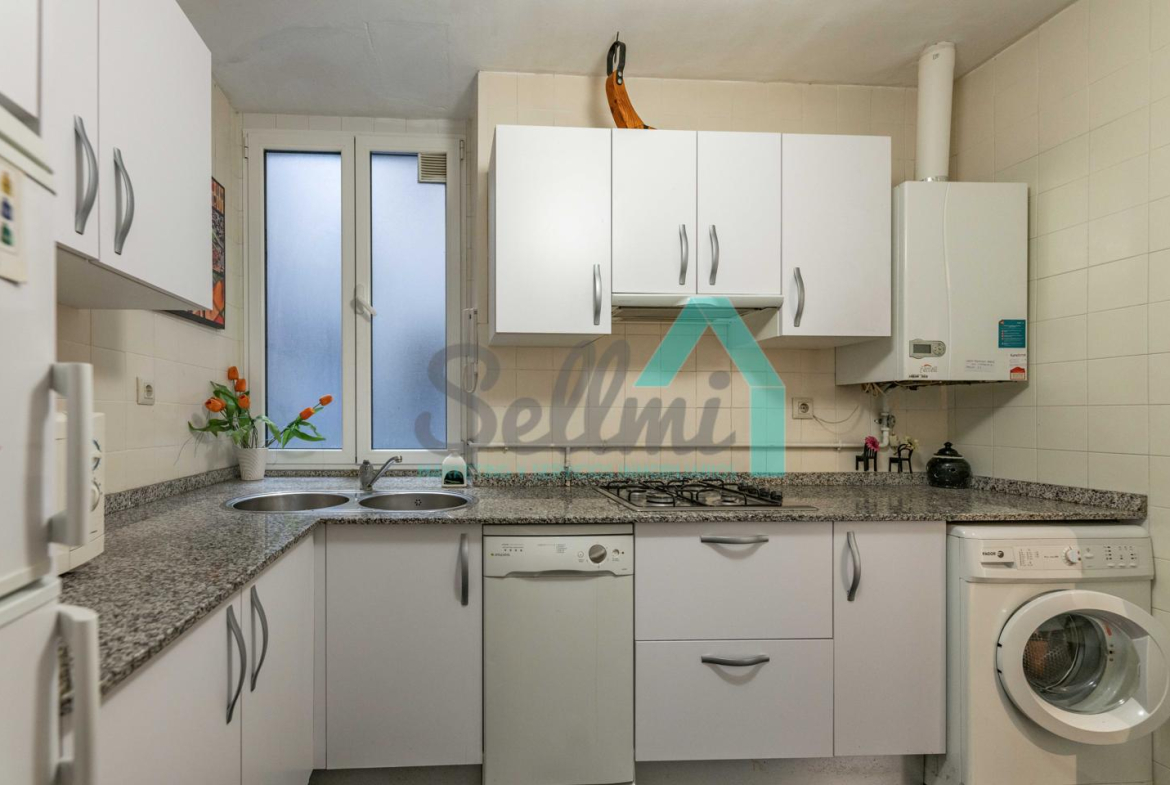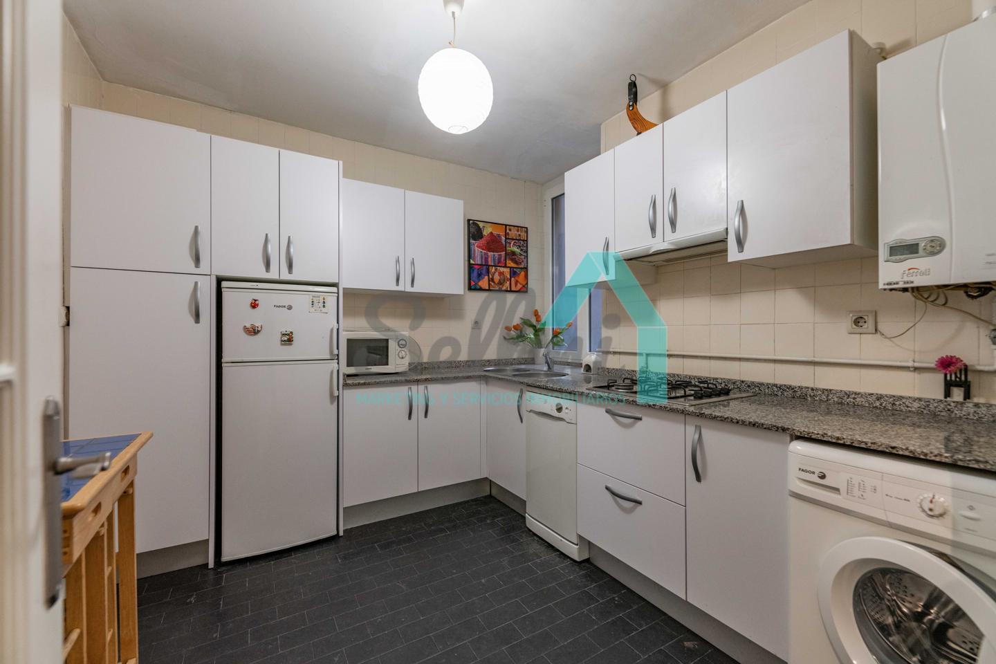 Dispone de calefacción individual de gas ciudad, suelos de tarima y gres, ventanas de doble acristalamiento y de madera, mesas de estudio, etc.