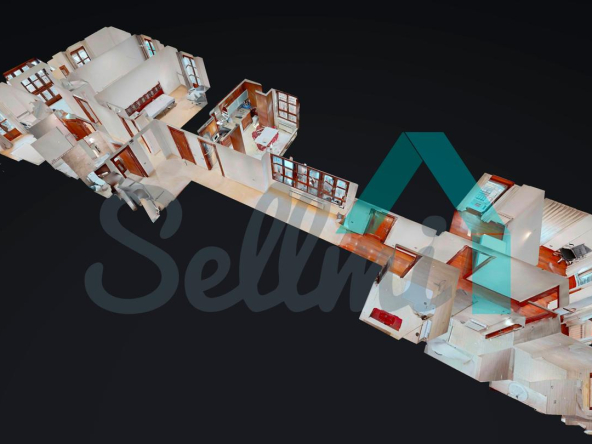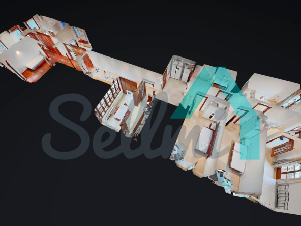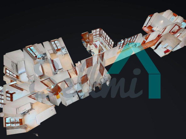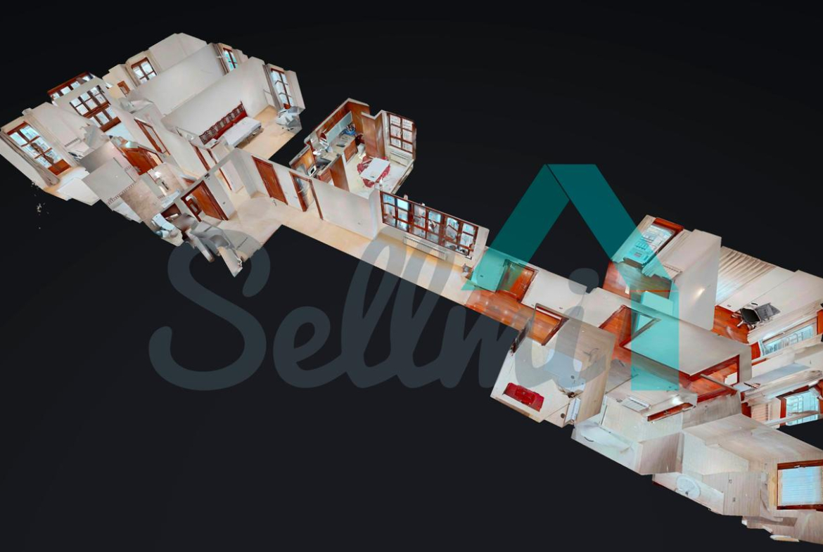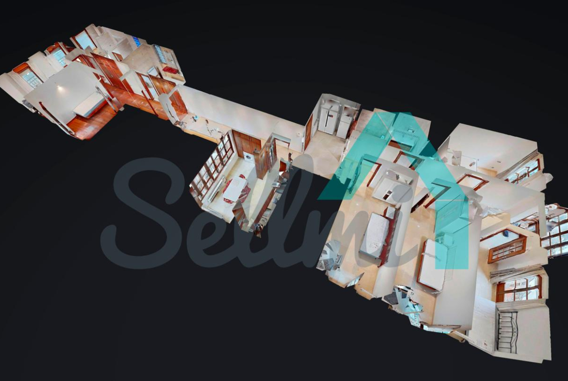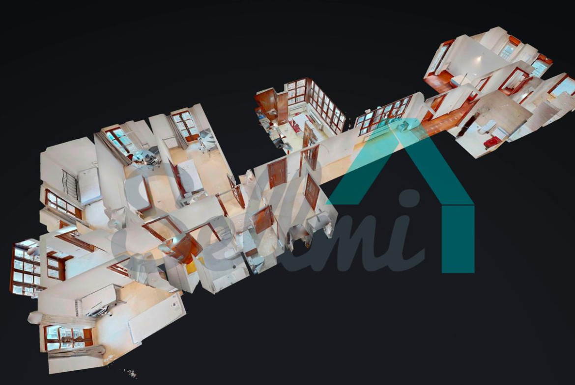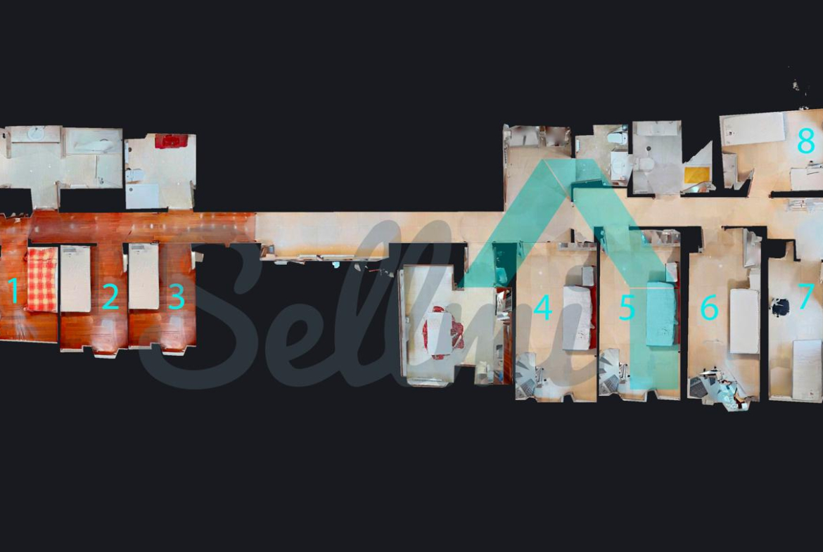 La vivienda, que acaba de ser reformada, tiene una superficie construida de 194 m² distribuidos en hall de entrada, cocina amueblada y equipada, ocho dormitorios, tres baños completos y un aseo.