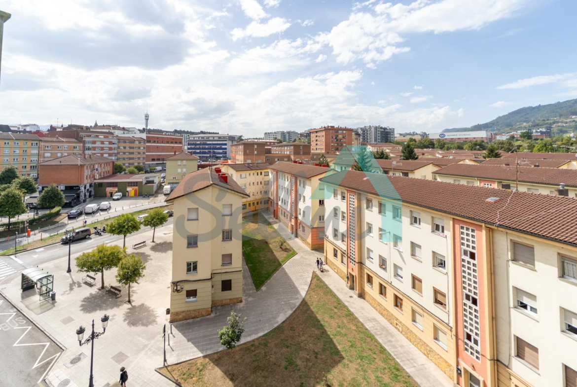 Habitaciones en alquiler en piso situado en la zona de Pumarín-Pando, en Oviedo. Se encuentra en la quinta planta de un edificio construido en 1971, sin barreras arquitectónicas y que cuenta con ascensor. Es exterior y muy luminoso, con orientación noroeste.