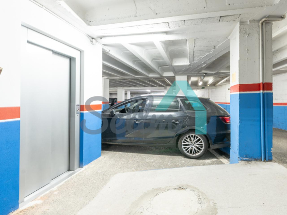 La plaza es muy amplia, con capacidad para coche y moto, situada junto al ascensor y con fácil maniobra de aparcamiento.