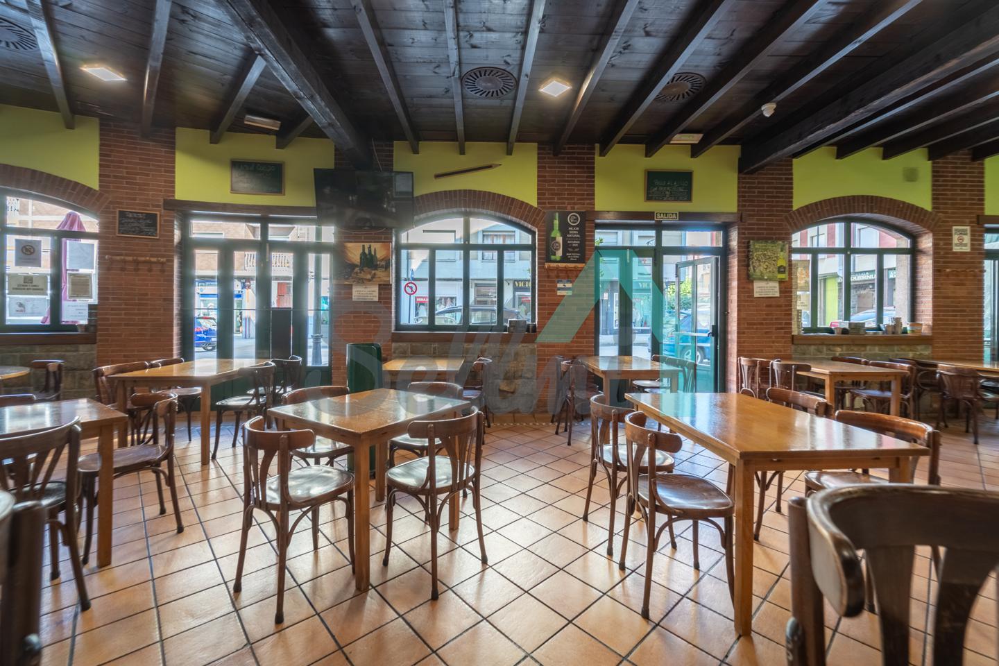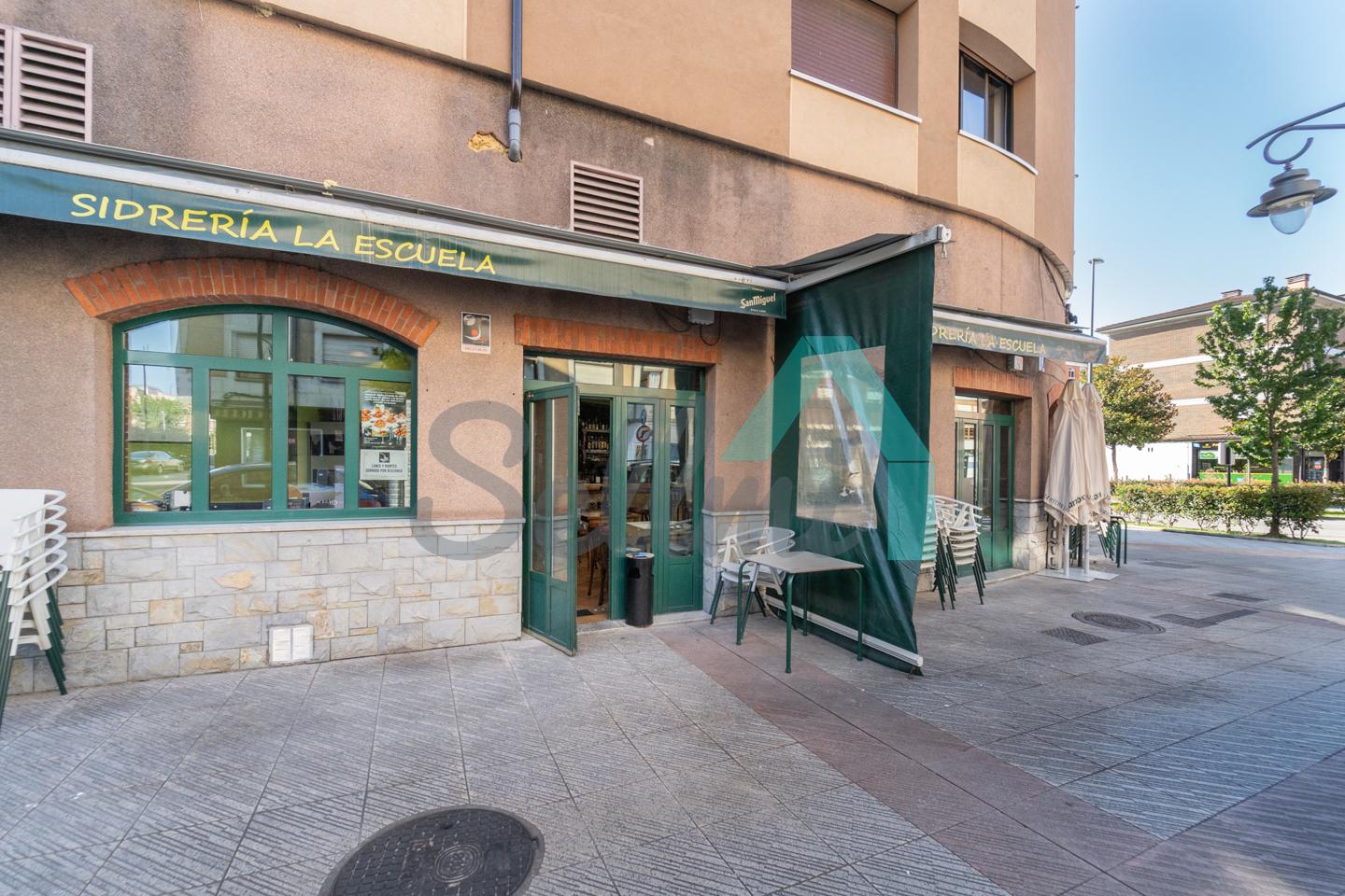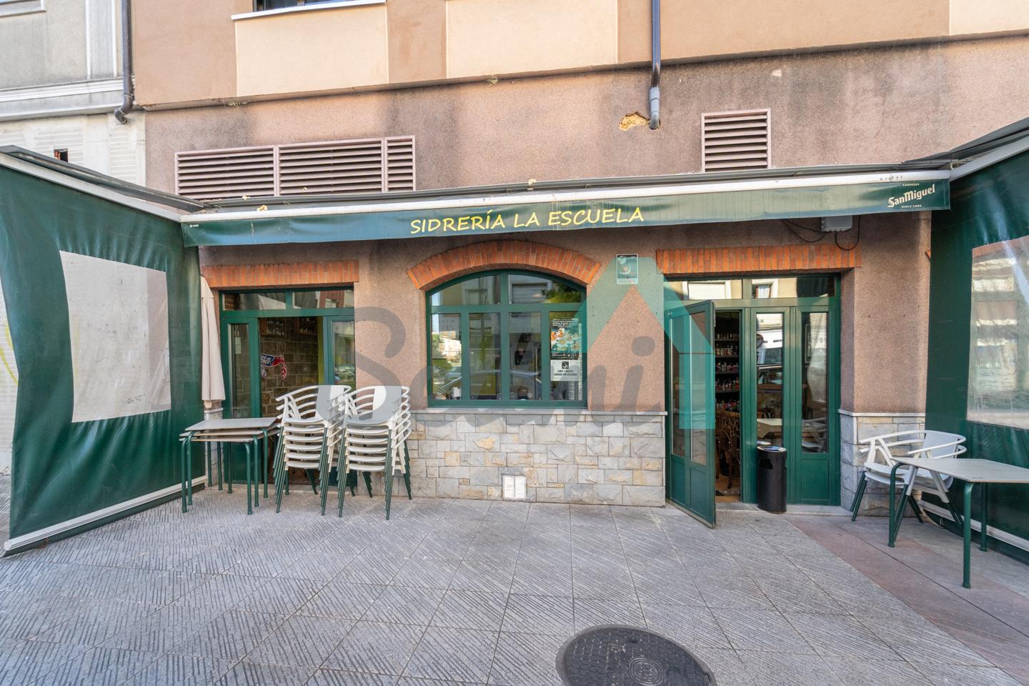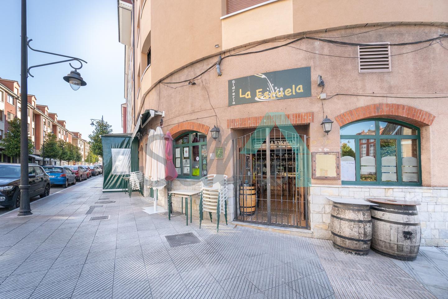 El inmueble, que se encuentra totalmente instalado como negocio de hostelería (sidrería) y en funcionamiento con licencia y todos los permisos en regla, tiene una superficie de 250 m2 distribuidos un gran comedor, zona de barra, amplia cocina industrial (cuatro freidoras, dos planchas, seis fuegos, baño maría, horno, cámaras frigoríficas, lavavajillas de desplazamiento, etc.), dos baños dobles para hombres y mujeres, terraza en la esquina y almacén con puerta independiente. En la parte de arriba hay una oficina con baño completo.