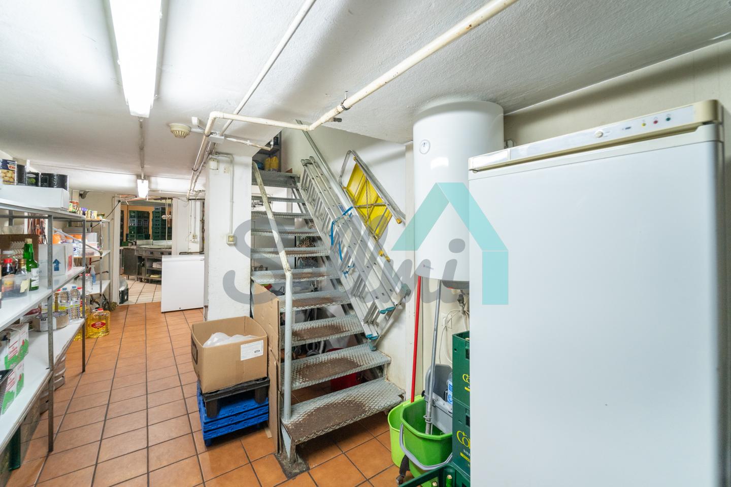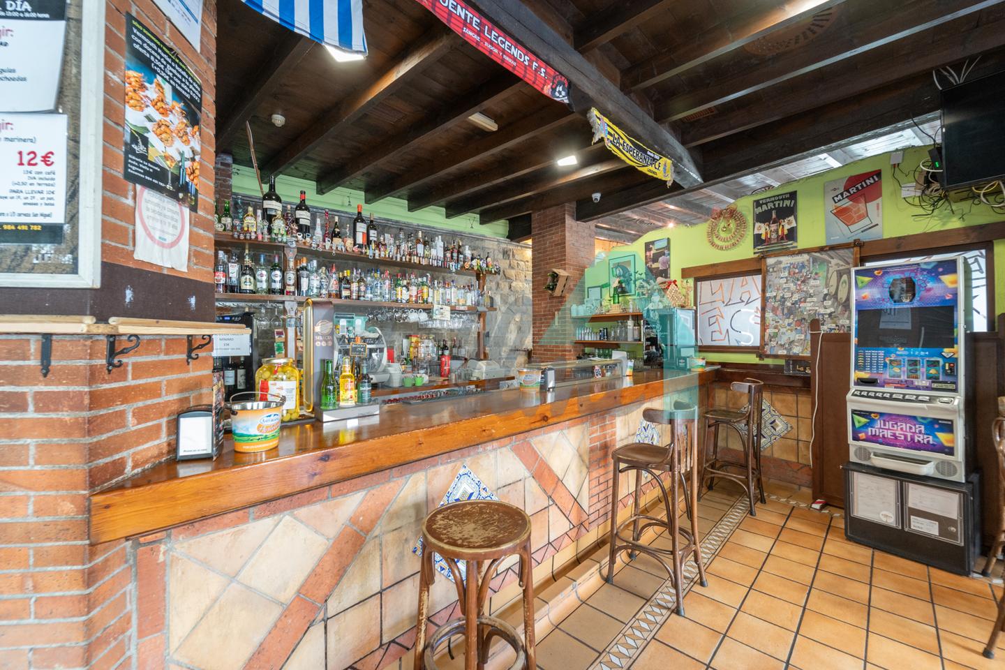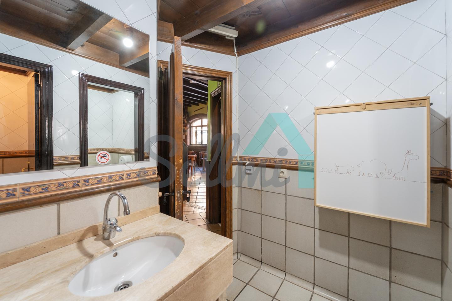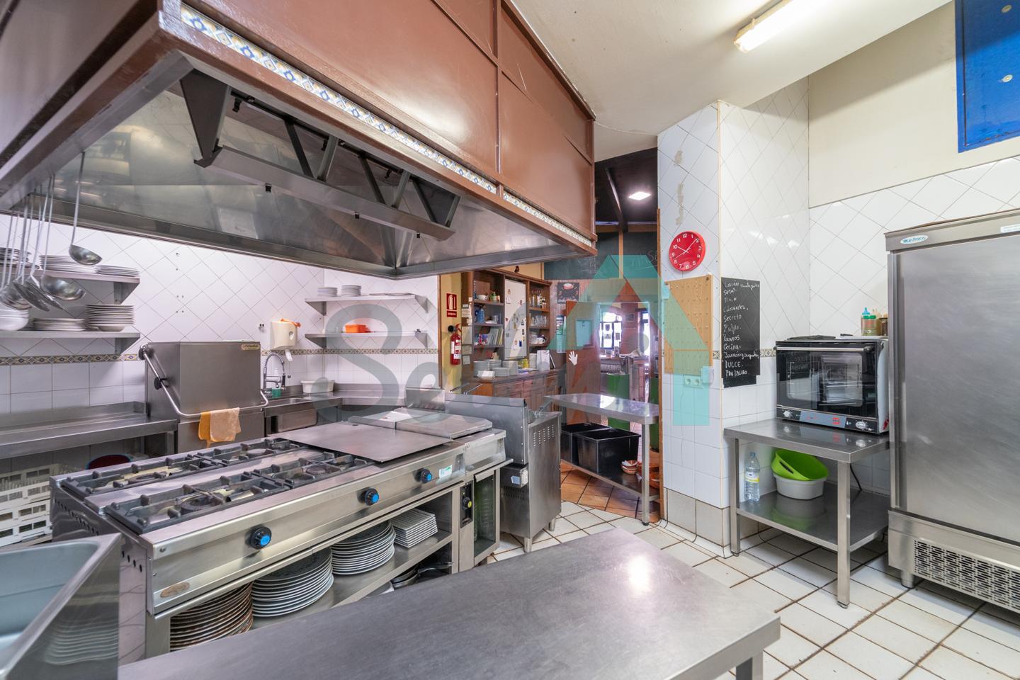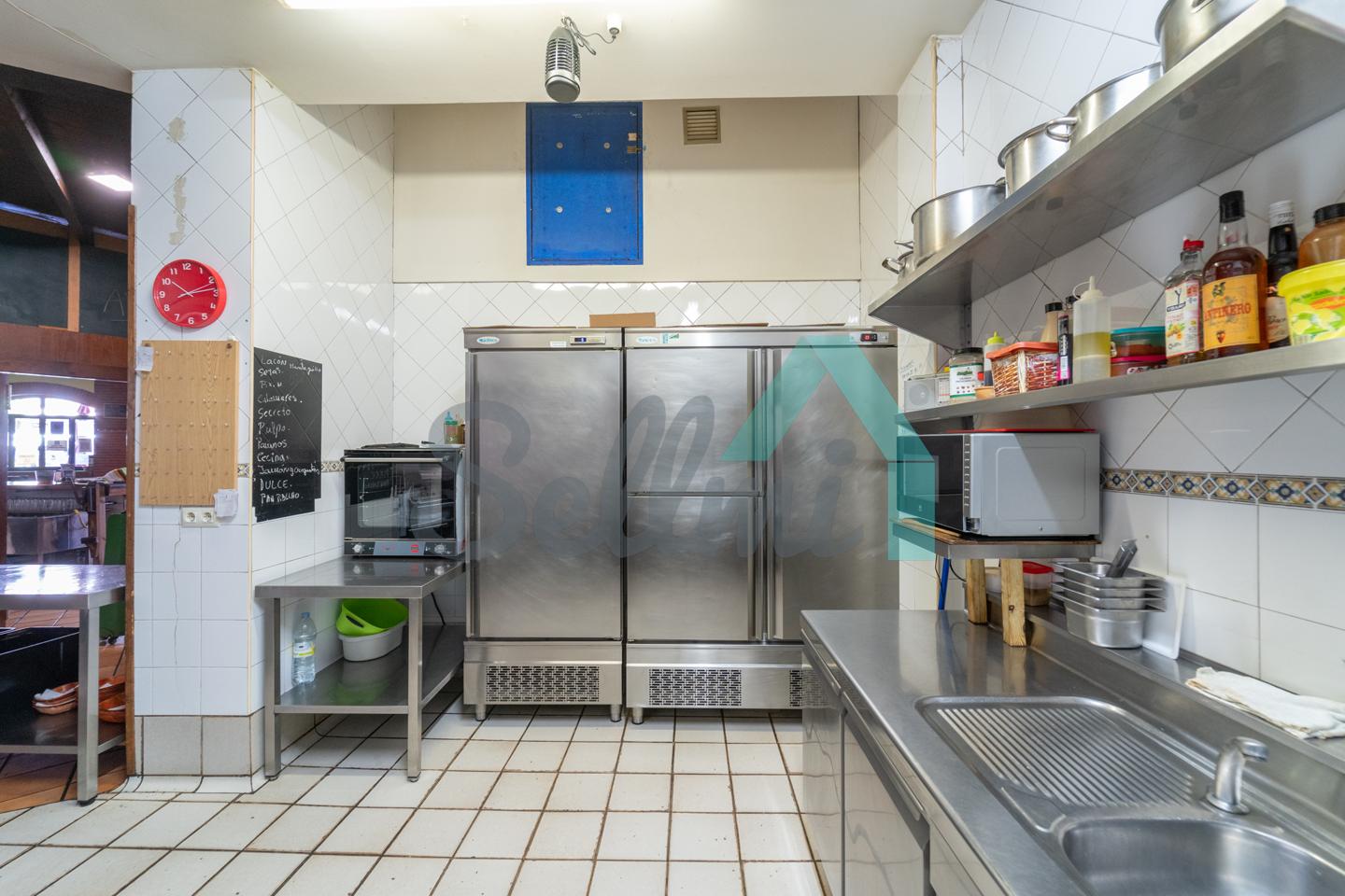 El inmueble, que se encuentra totalmente instalado como negocio de hostelería (sidrería) y en funcionamiento con licencia y todos los permisos en regla, tiene una superficie de 250 m2 distribuidos un gran comedor, zona de barra, amplia cocina industrial (cuatro freidoras, dos planchas, seis fuegos, baño maría, horno, cámaras frigoríficas, lavavajillas de desplazamiento, etc.), dos baños dobles para hombres y mujeres, terraza en la esquina y almacén con puerta independiente. En la parte de arriba hay una oficina con baño completo.