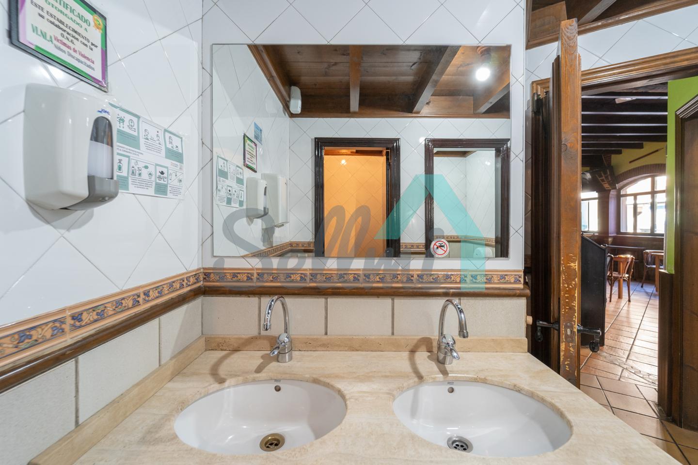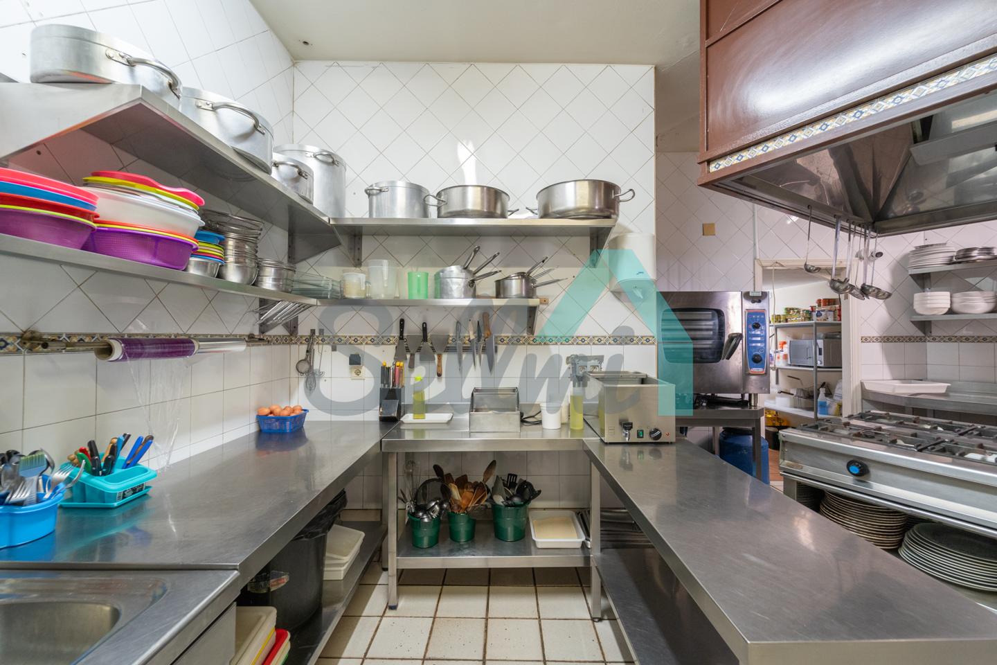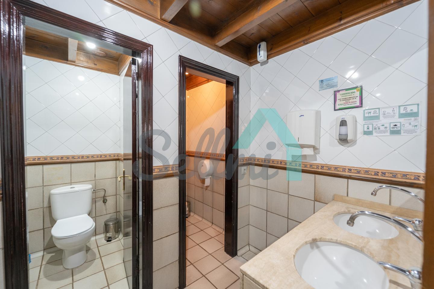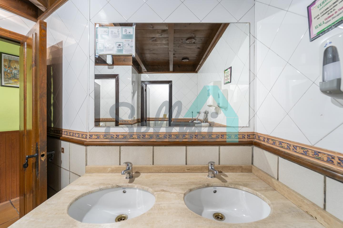 El inmueble, que se encuentra totalmente instalado como negocio de hostelería (sidrería) y en funcionamiento con licencia y todos los permisos en regla, tiene una superficie de 250 m2 distribuidos un gran comedor, zona de barra, amplia cocina industrial (cuatro freidoras, dos planchas, seis fuegos, baño maría, horno, cámaras frigoríficas, lavavajillas de desplazamiento, etc.), dos baños dobles para hombres y mujeres, terraza en la esquina y almacén con puerta independiente. En la parte de arriba hay una oficina con baño completo.