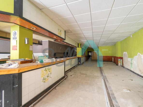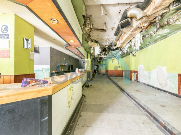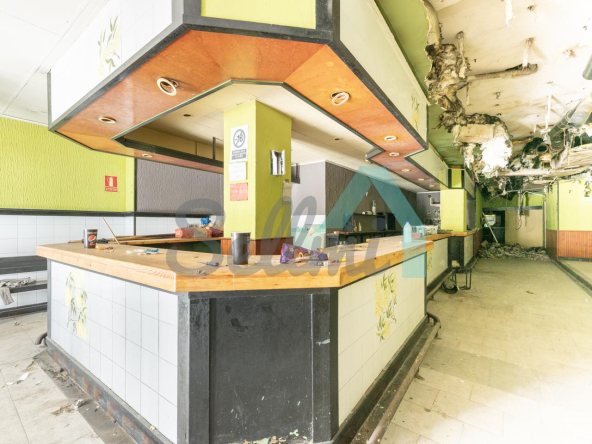 El local tiene una superficie construida de 308 m² distribuidos en dos zonas, con posibilidad de unirse en una gran zona diáfana. Una de las zonas, la más grande, está insonorizada. Cuenta también con almacén, barra, zona de comedor y dos baños. No tiene salida de humos.