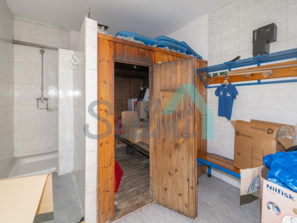 El inmueble, que se encuentra totalmente instalado, tiene una superficie construida de 472 m² distribuidos en zona de recepción, tres amplias estancias, dos vestuarios con baños y cuarto de calderas.