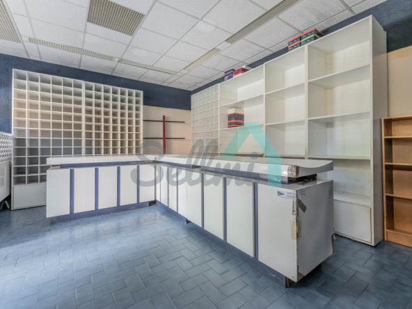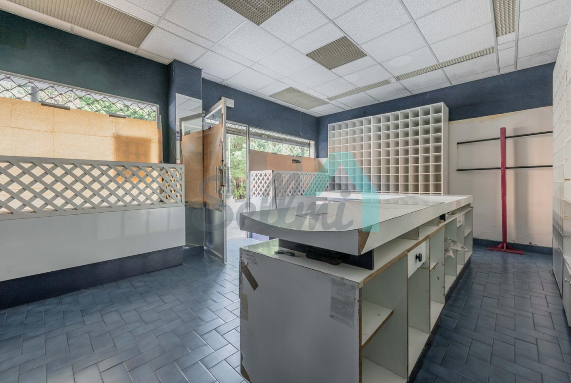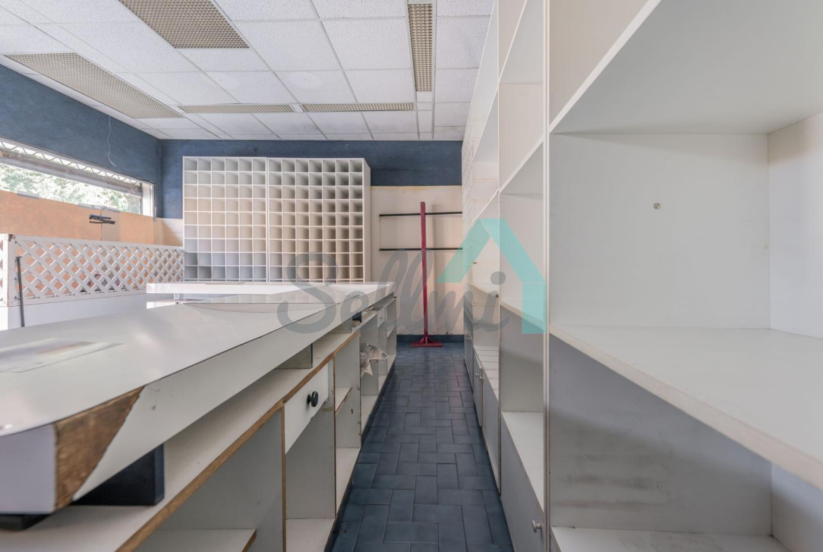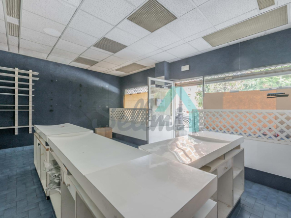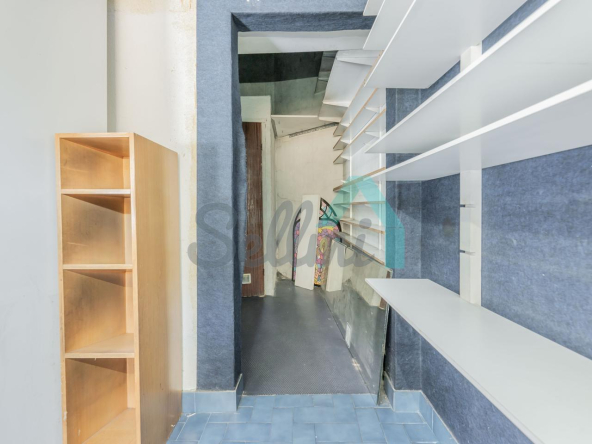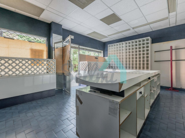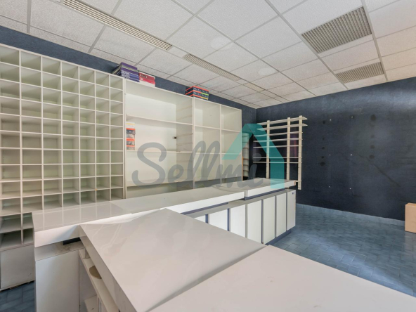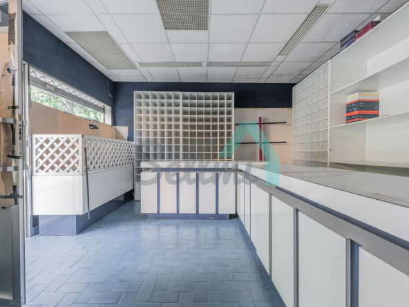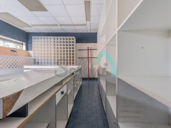 Tiene una superficie construida de 51 m² distribuidos en zona de exposición, almacén y un aseo.