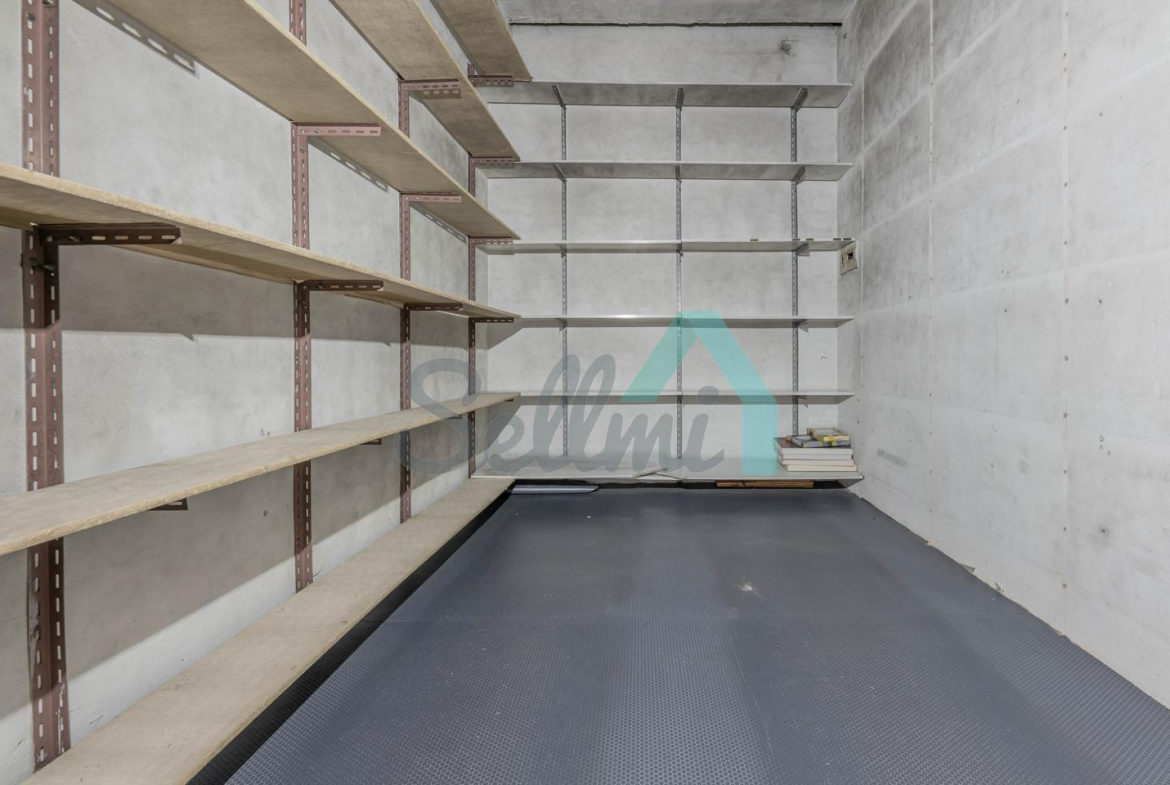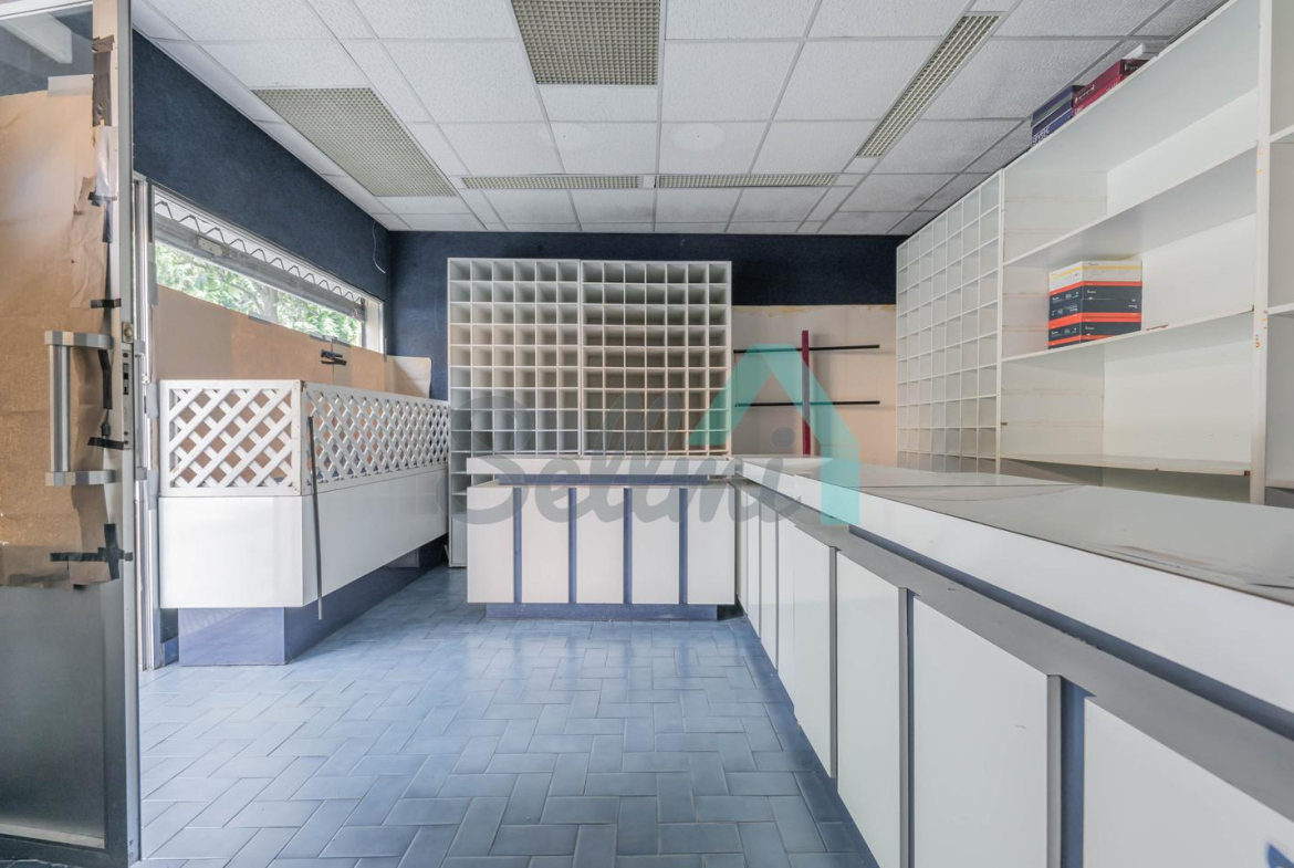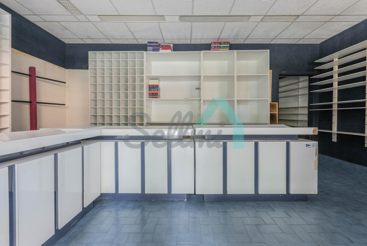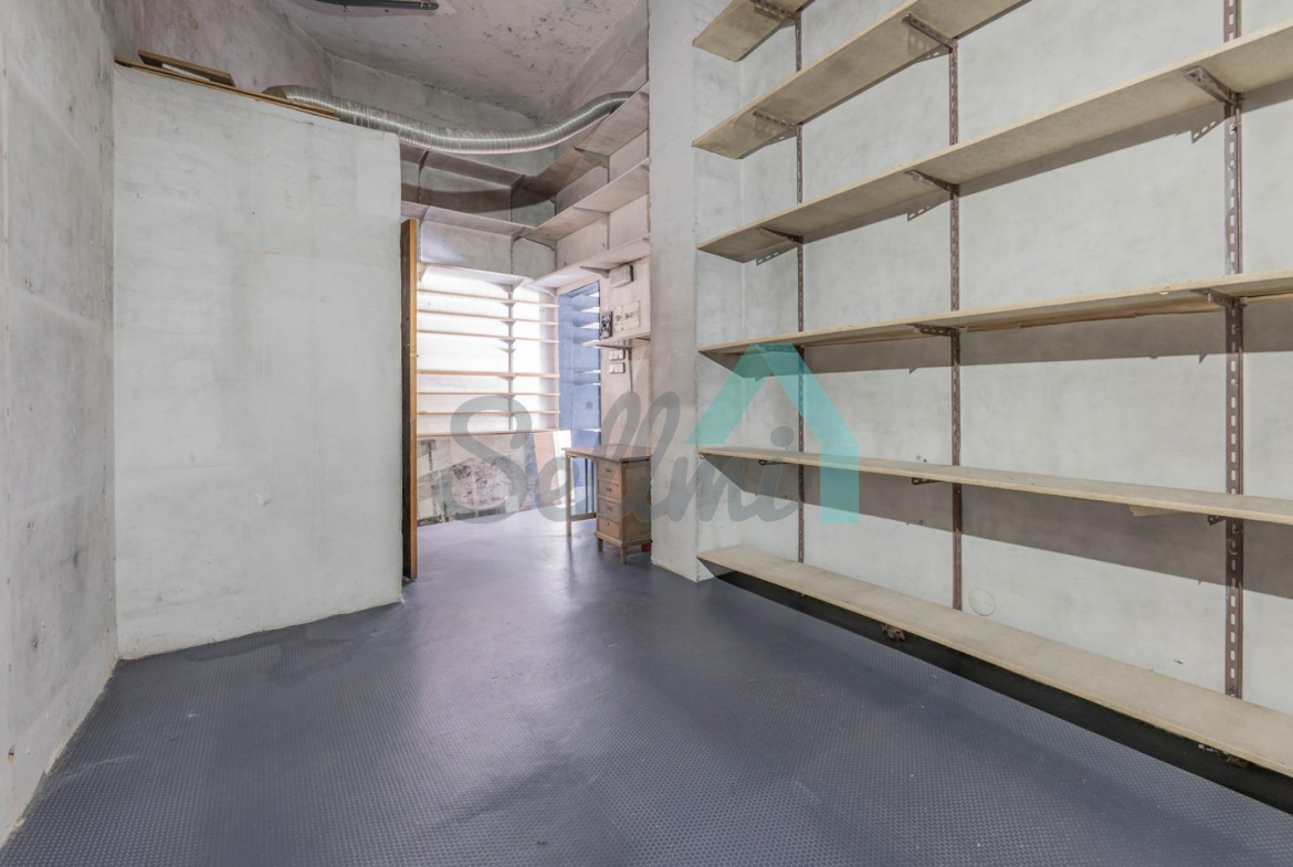 Tiene una superficie construida de 51 m² distribuidos en zona de exposición, almacén y un aseo.