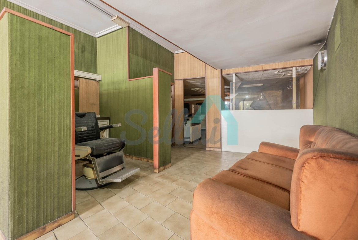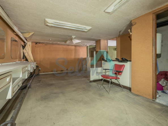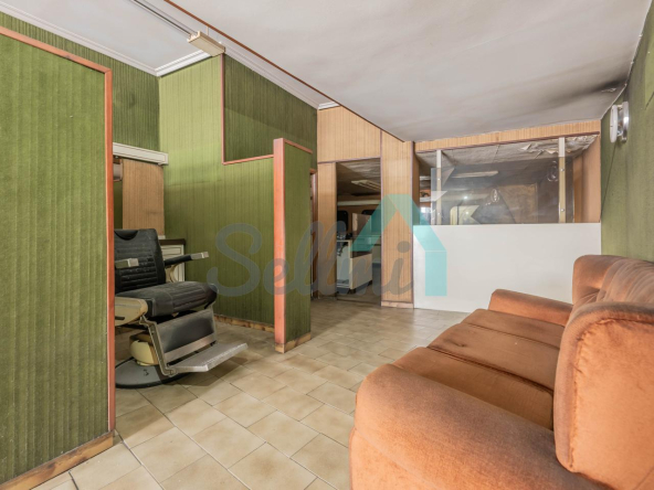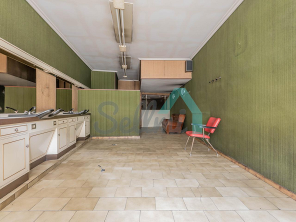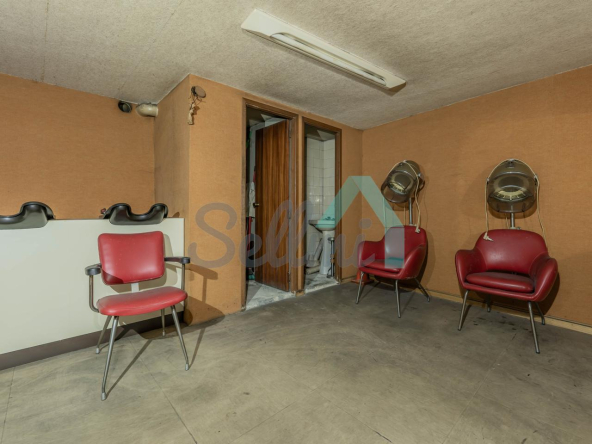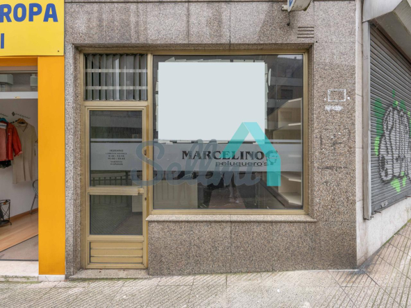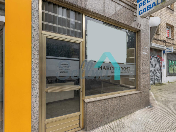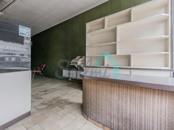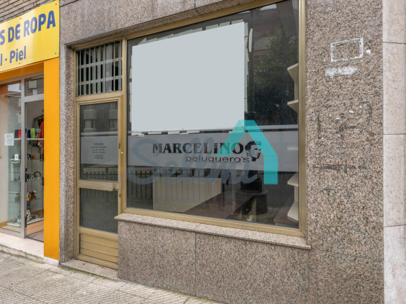 Se encuentra instalado como peluquería, por lo que cuenta con varias tomas de agua en diferentes puntos. Las paredes están forradas de moqueta, empapelado el techo y el suelo es de gres. La fachada de granito y la cristalera de aluminio.