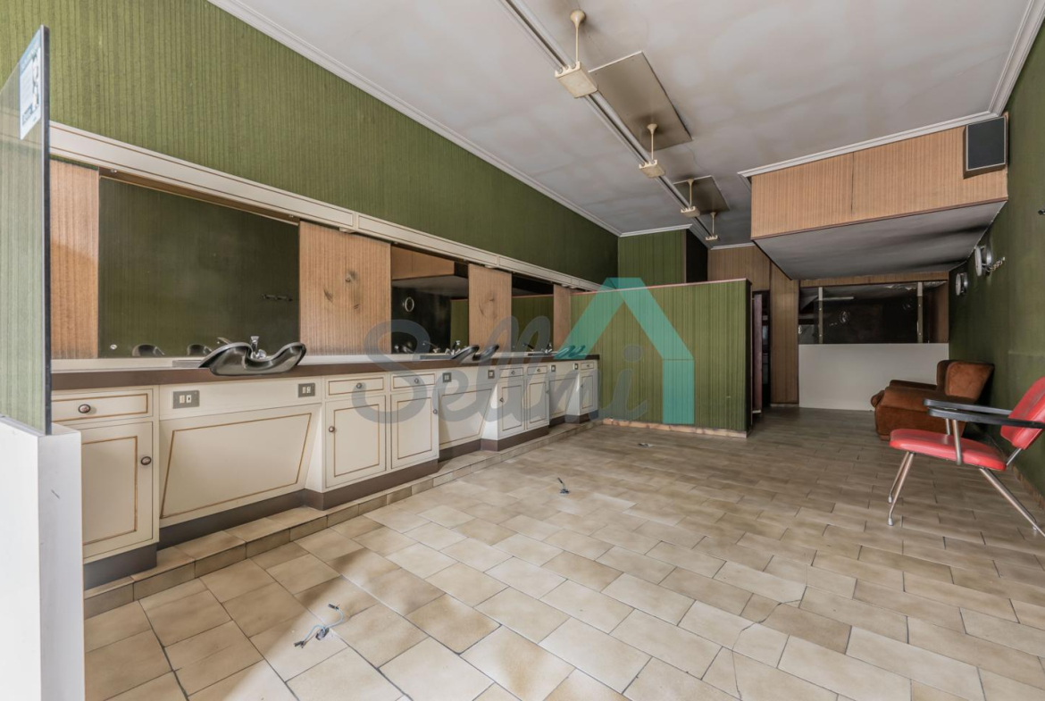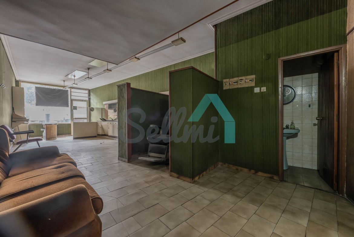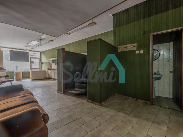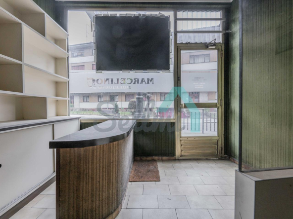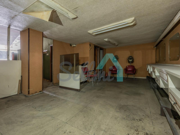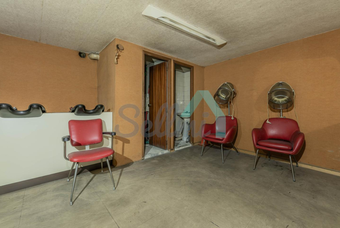 Se encuentra instalado como peluquería, por lo que cuenta con varias tomas de agua en diferentes puntos. Las paredes están forradas de moqueta, empapelado el techo y el suelo es de gres. La fachada de granito y la cristalera de aluminio.