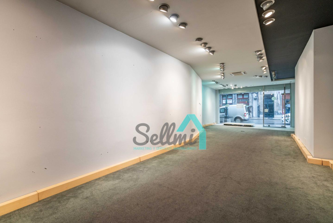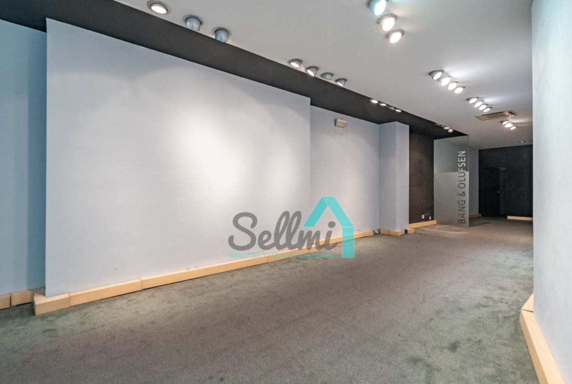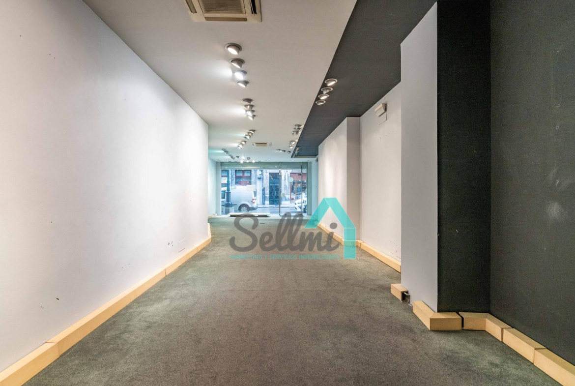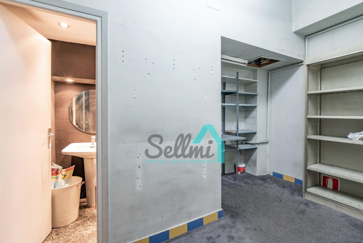 Tiene una superficie construida de 90 m2 distribuidos en un gran espacio diáfano, almacén y aseo. Dispone de 5 metros de fachada acristalada, con persiana de seguridad automática.