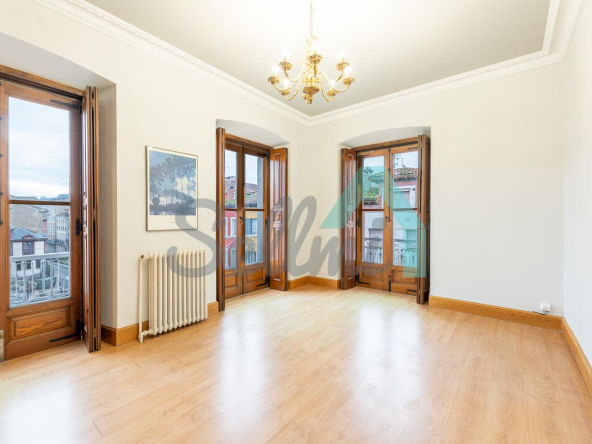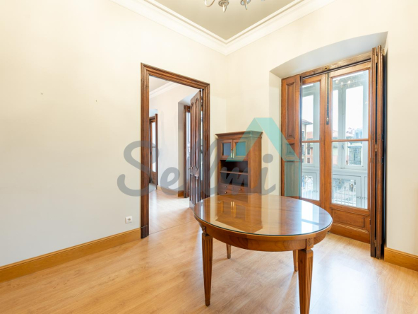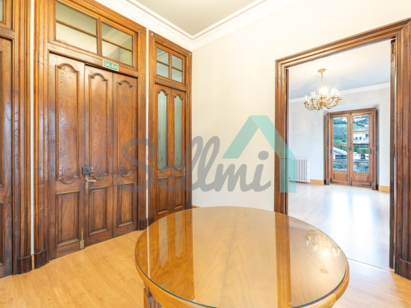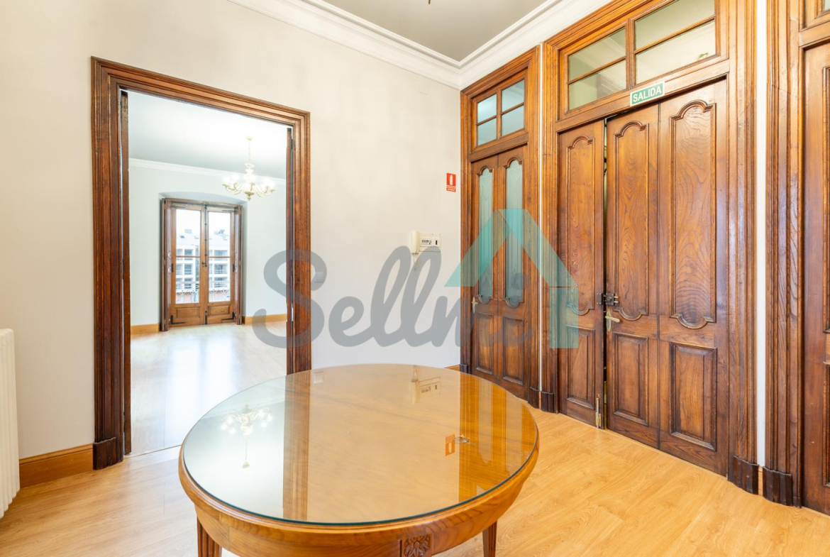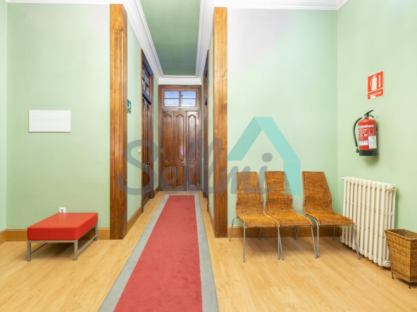 La oficina, que se encuentra en perfecto estado, tiene una superficie construida de — m² distribuidos en zona de recepción y dos despachos. Dispone de suelos de tarima, grandes ventanales con balcones, calefacción central etc.