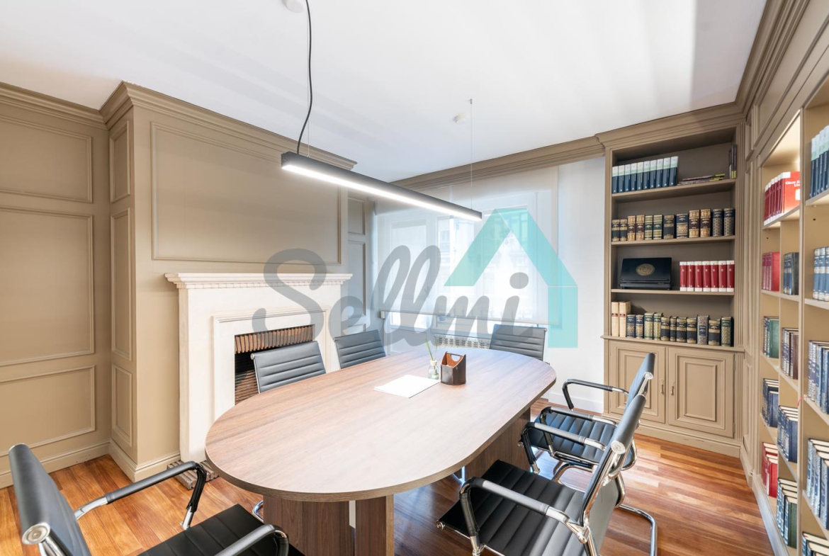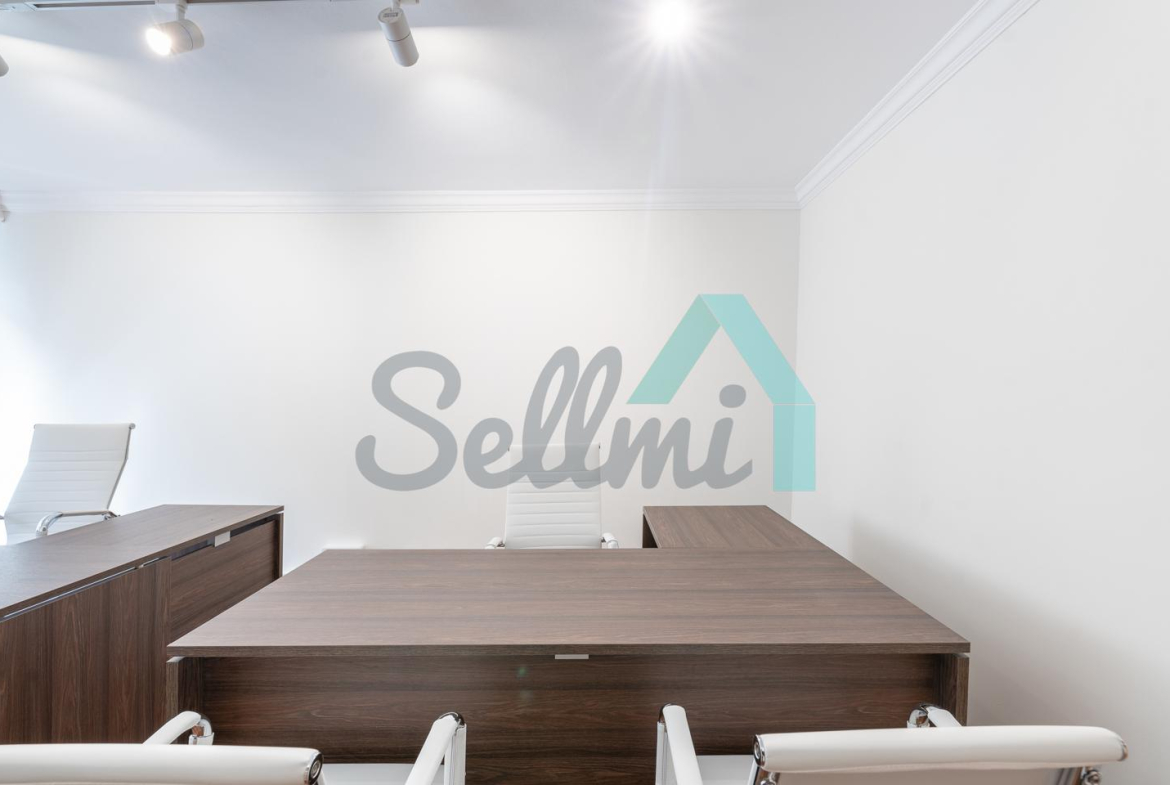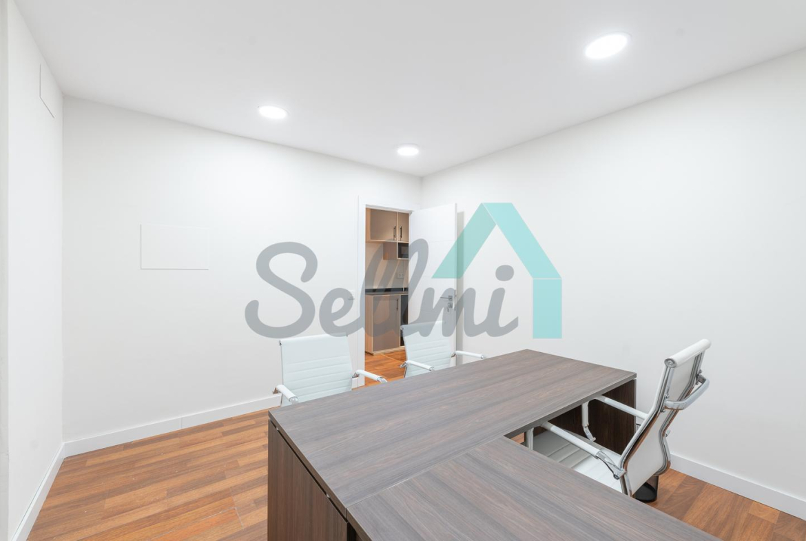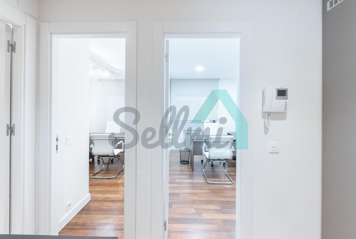 El inmueble, que acaba de ser reformado y se encuentra en perfecto estado, tiene una superficie construida de 200 m² distribuidos en zona de recepción, sala de reuniones, don baños de acceso público, office equipado con microondas y nevera y seis despachos individuales y uno doble.