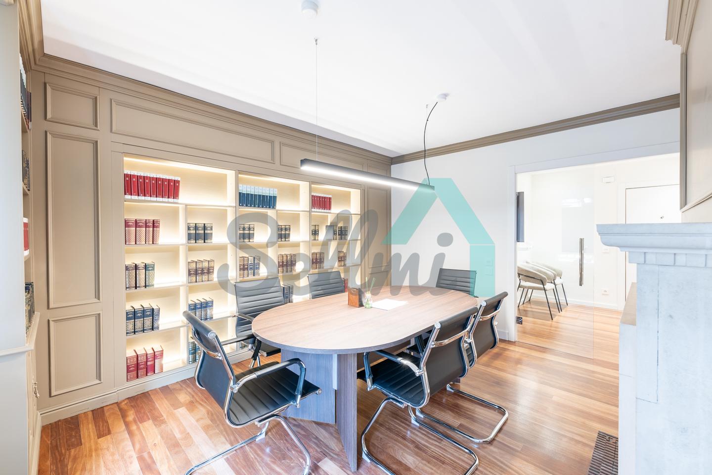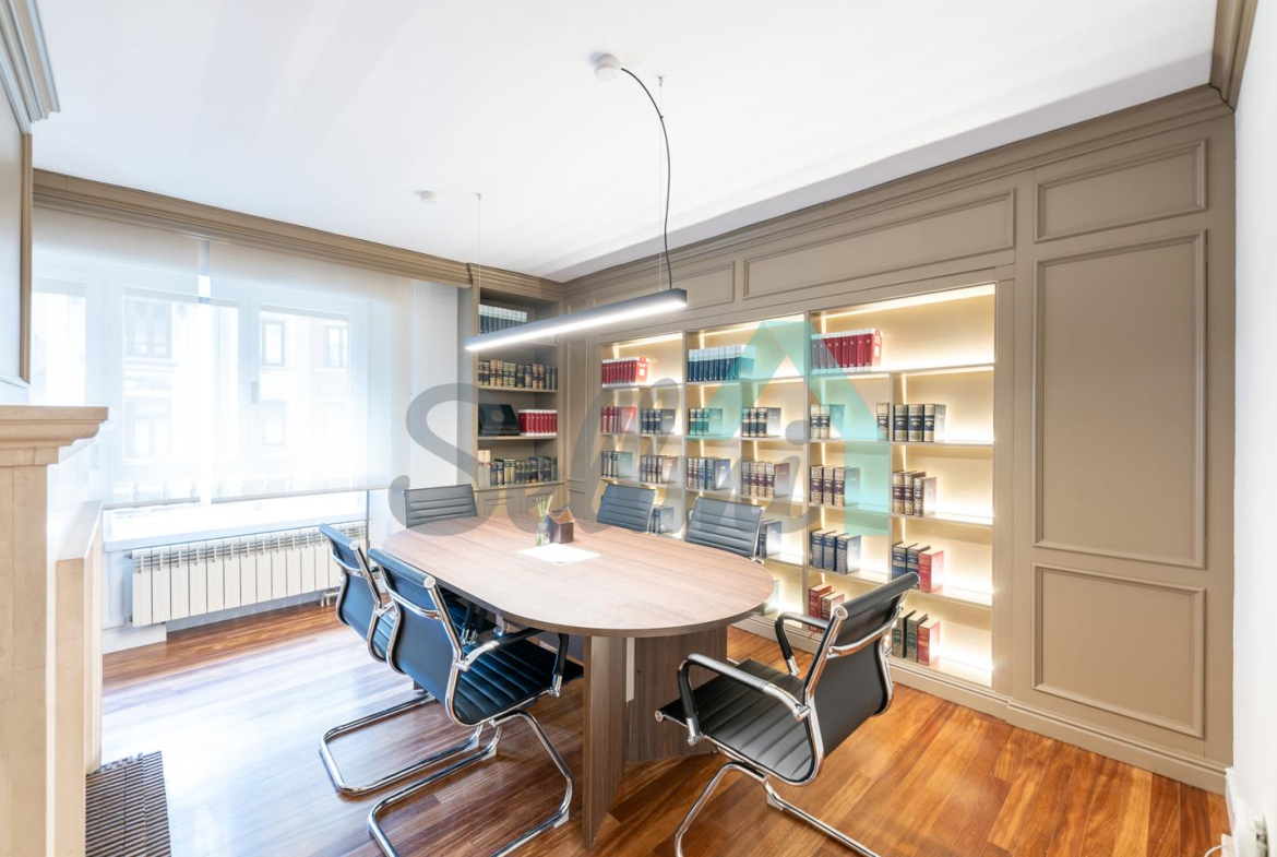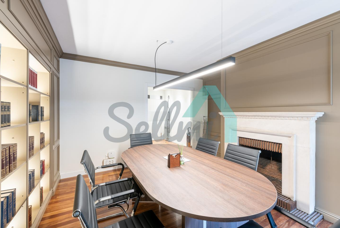 El inmueble, que acaba de ser reformado y se encuentra en perfecto estado, tiene una superficie construida de 200 m² distribuidos en zona de recepción, sala de reuniones, don baños de acceso público, office equipado con microondas y nevera y seis despachos individuales y uno doble.