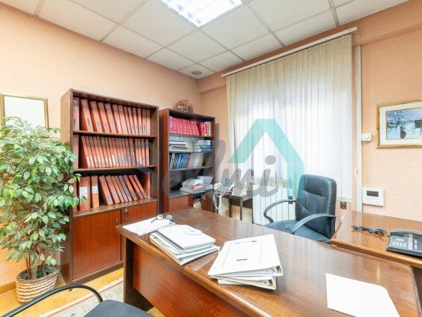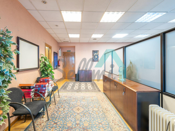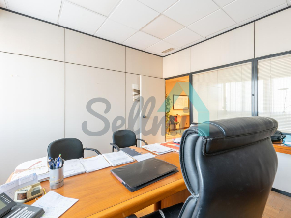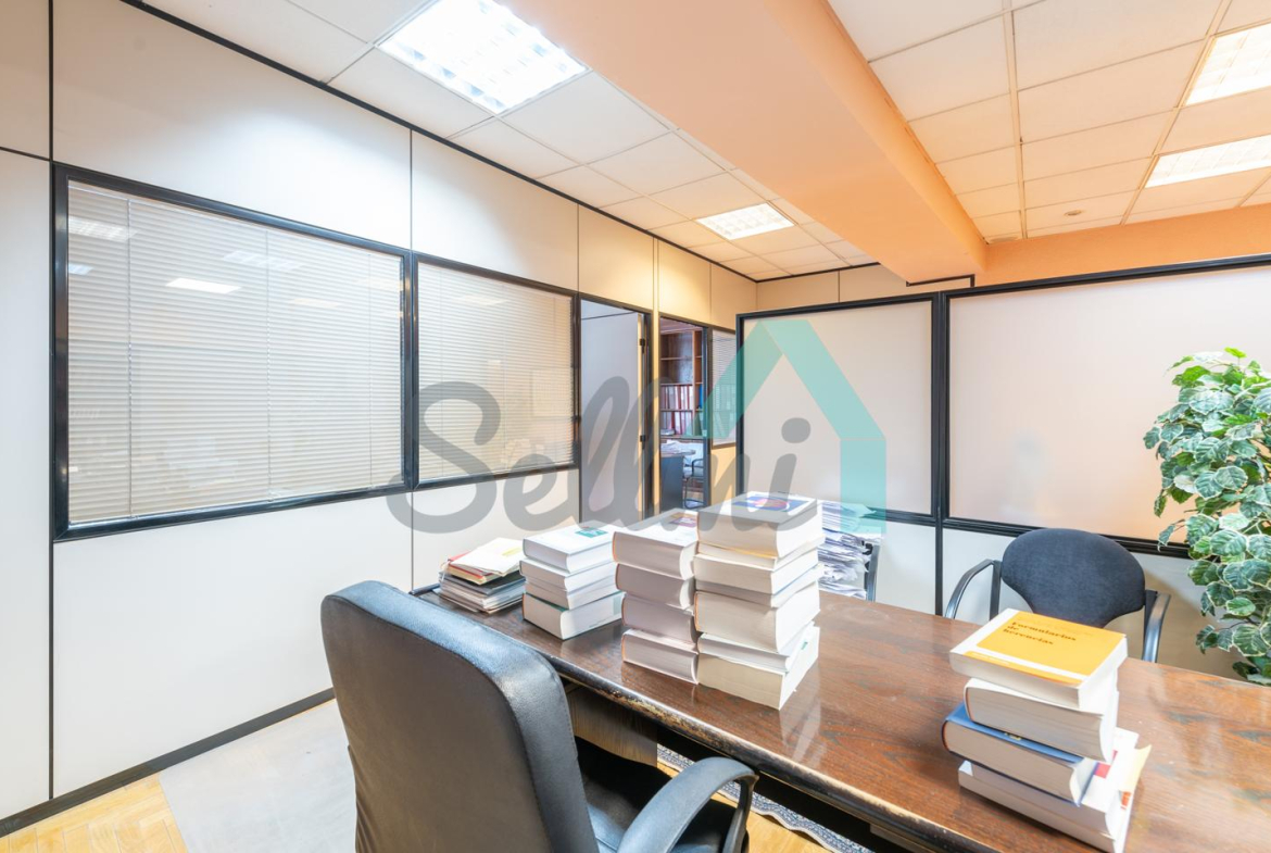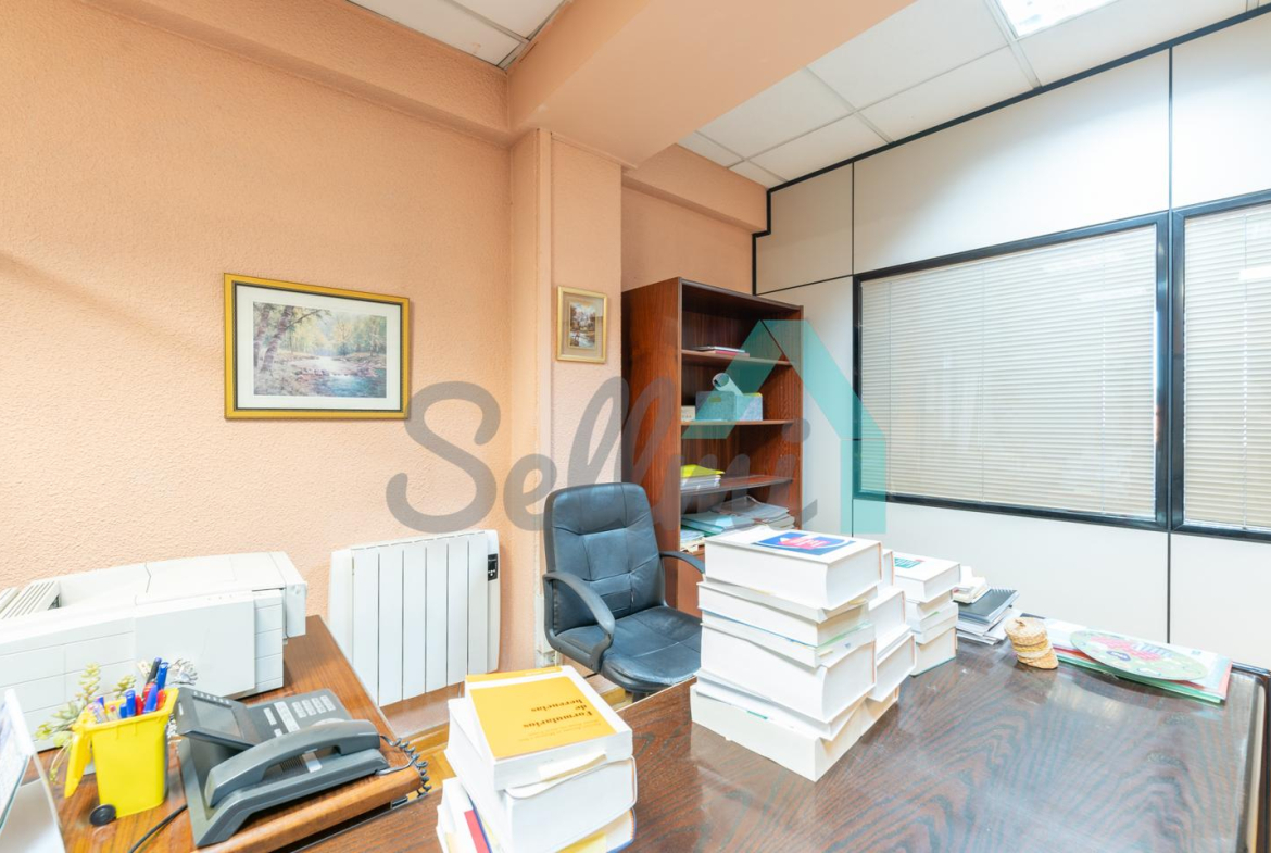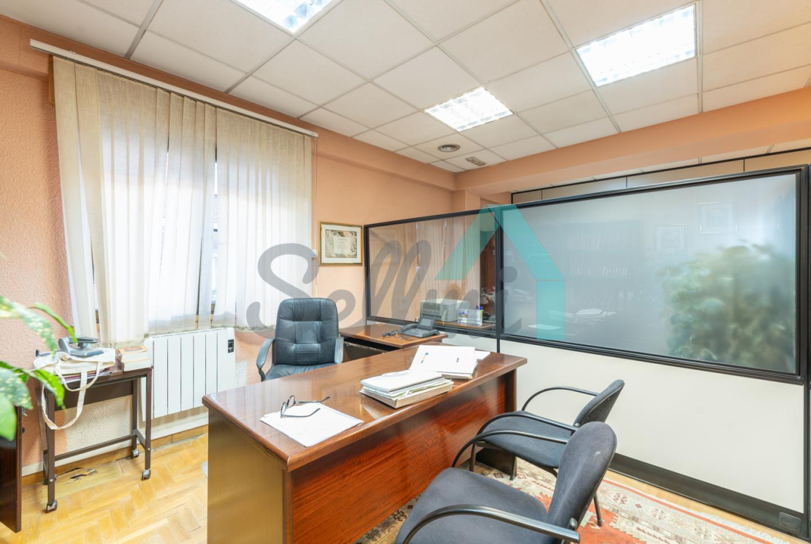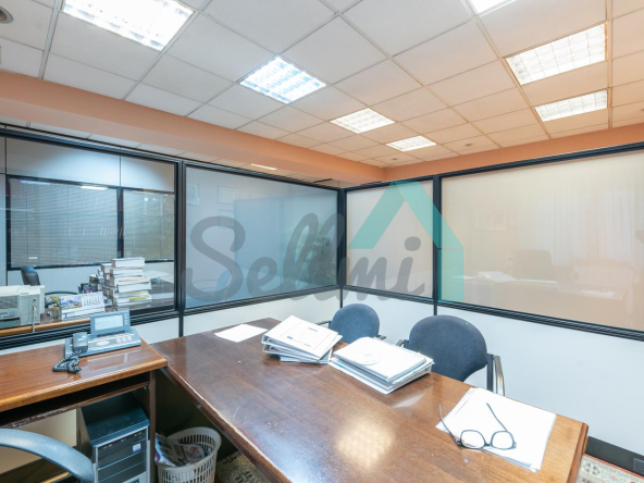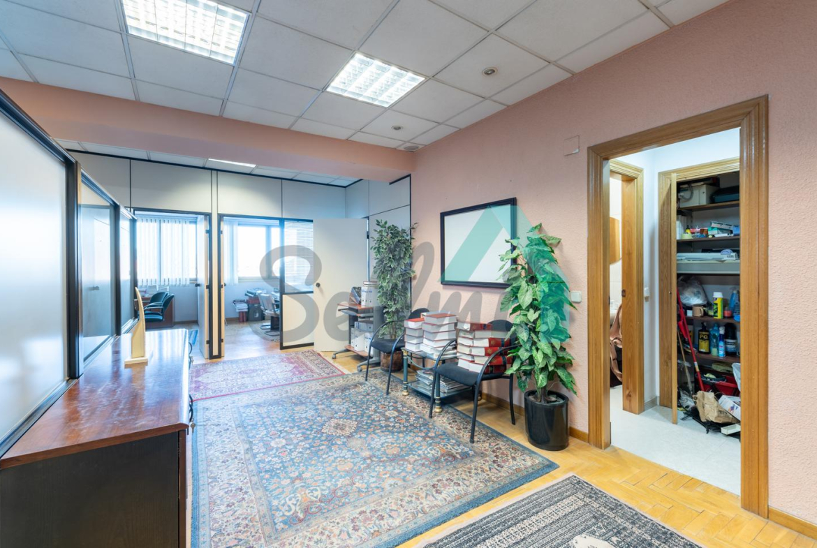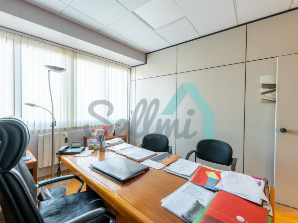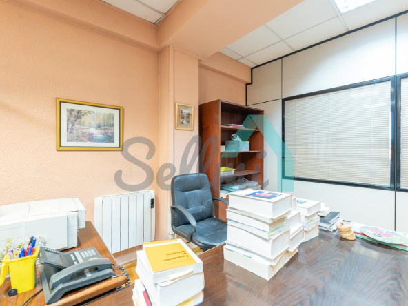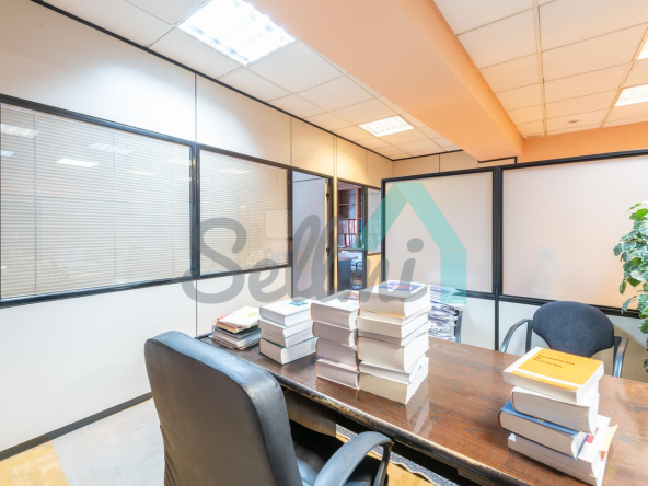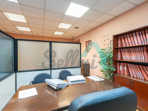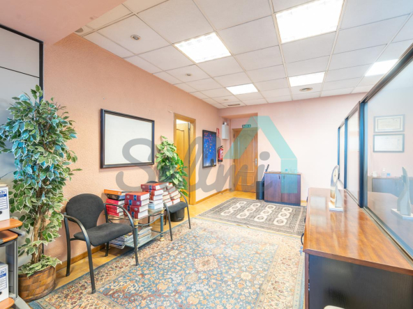 La oficina tiene una superficie construida de 87 m² distribuidos en zona de recepción con dos espacios de trabajo abiertos, dos despachos, almacén y un baño.