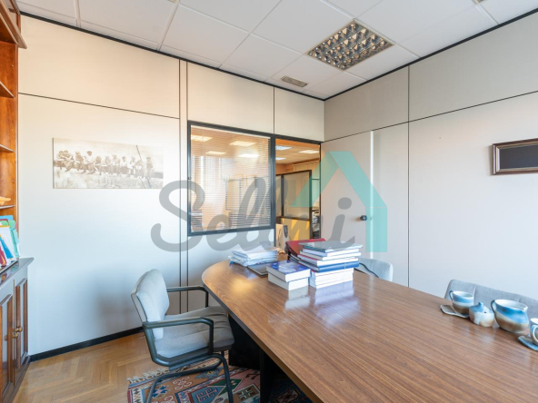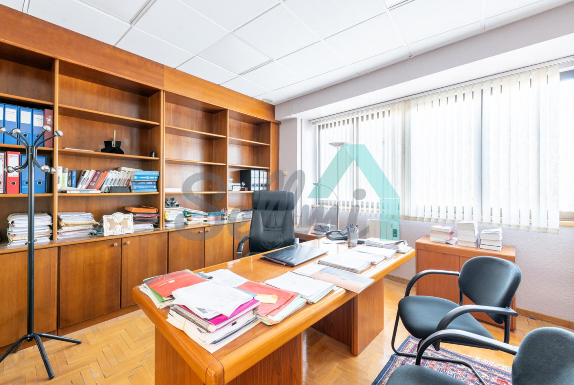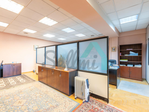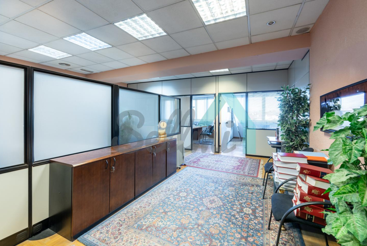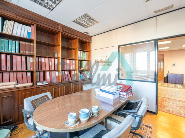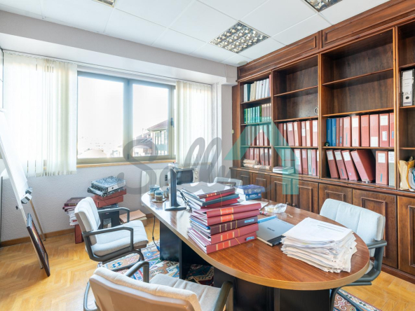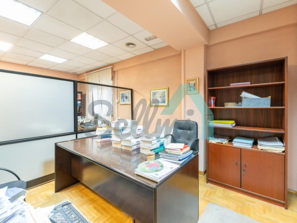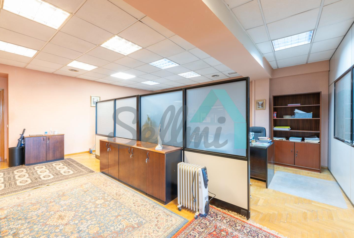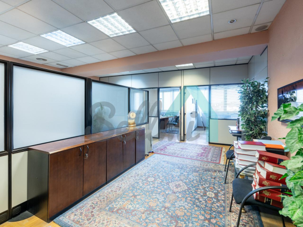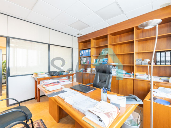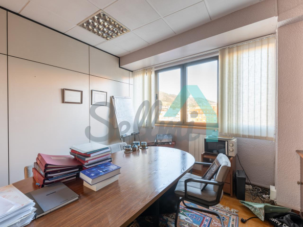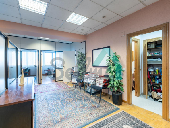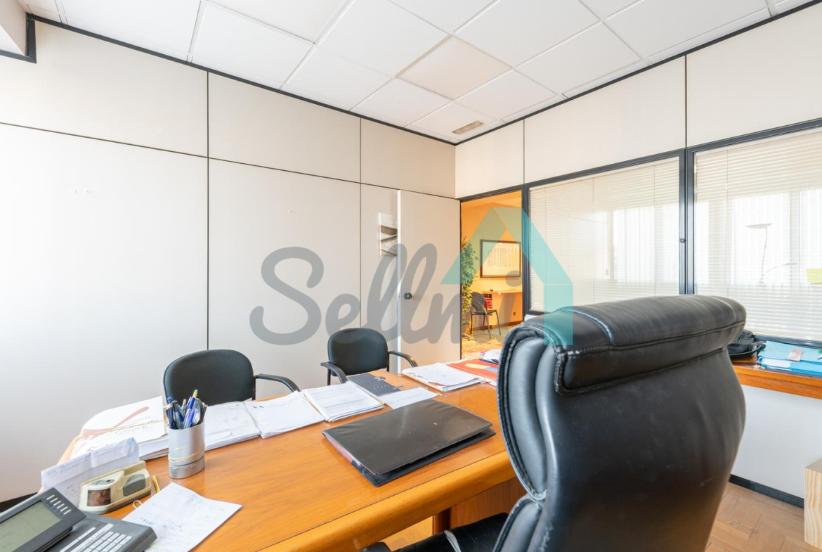 La oficina tiene una superficie construida de 87 m² distribuidos en zona de recepción con dos espacios de trabajo abiertos, dos despachos, almacén y un baño.
