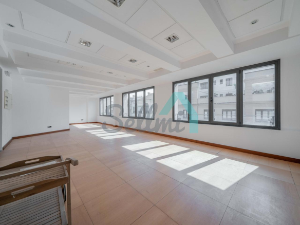 El inmueble tiene una superficie útil de 121, 49 m² y actualmente se encuentra dividida en zona de recepción y tres oficinas de 52,54 m2, 21,91 m2 y 30,34 m2 respectivamente. La oficina más grande cuenta con un aseo privado y las otras dos comparten el segundo aseo. Actualmente las tres se encuentran alquiladas por un total de 1725€ mensuales en bruto.