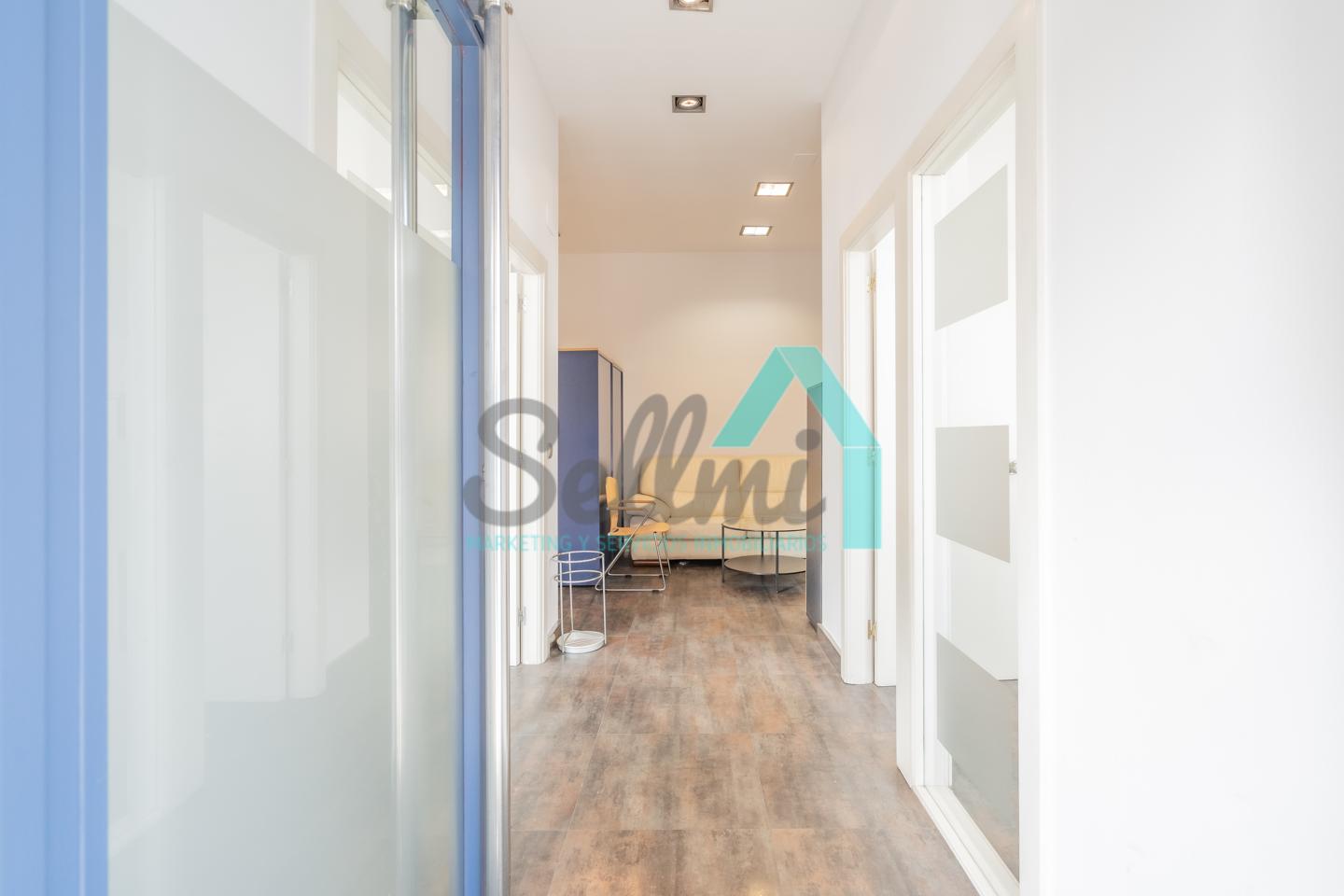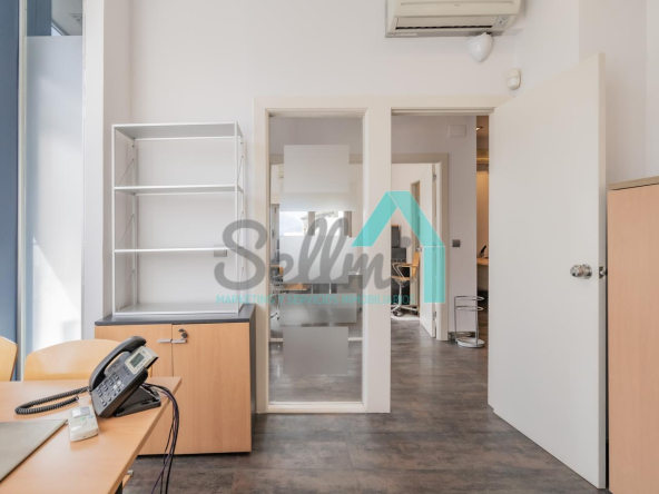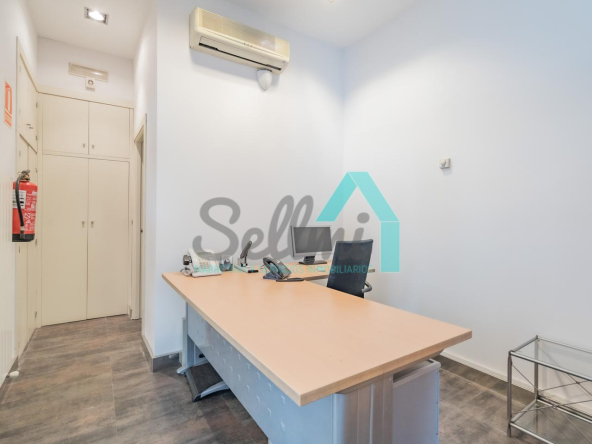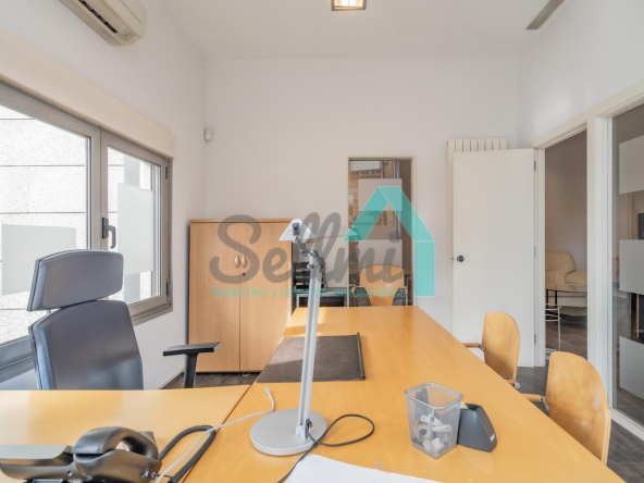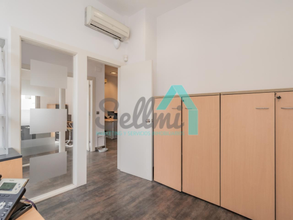 Tiene una superficie construida de 55 m² distribuidos en dos despachos, sala con dos puestos de trabajo y un baño.