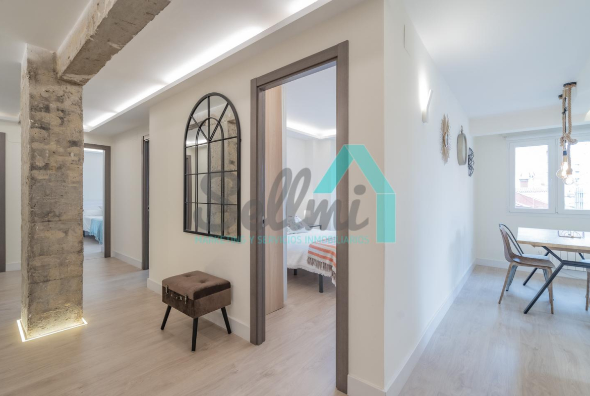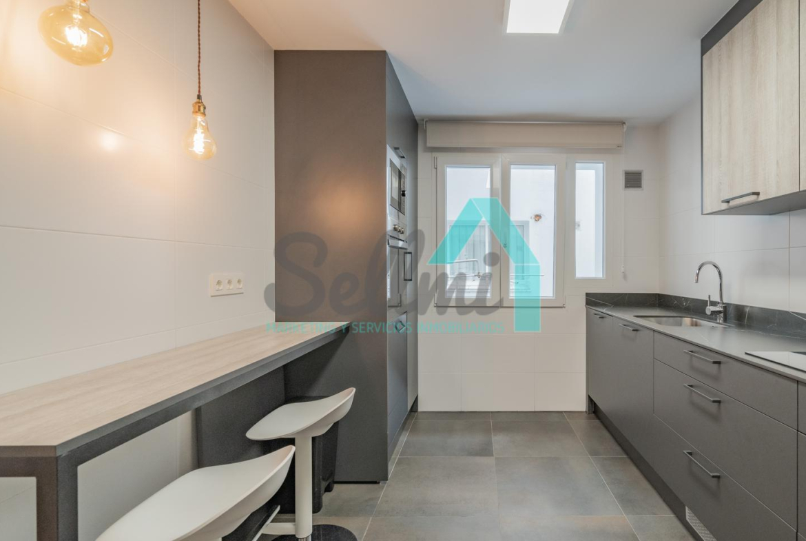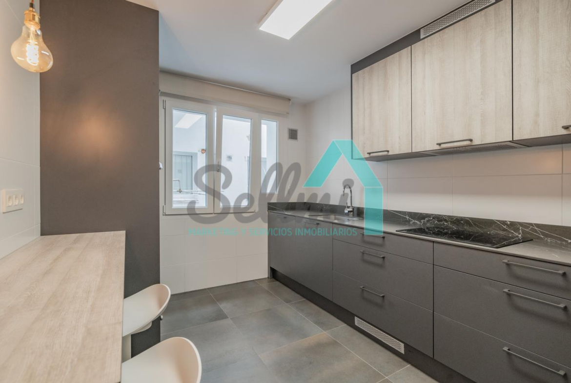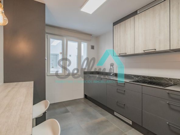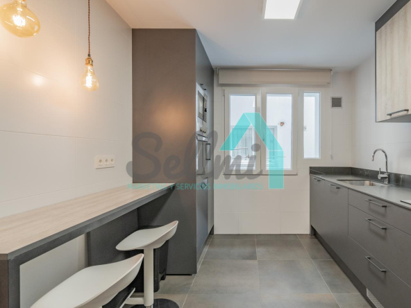 La vivienda, que ha sido totalmente reformada, tiene una superficie construida de 109 m2 distribuidos en hall de entrada, salón comedor, cocina amueblada y equipada, tres habitaciones y dos baños completos. Plaza de garaje opcional por 120 € al mes.