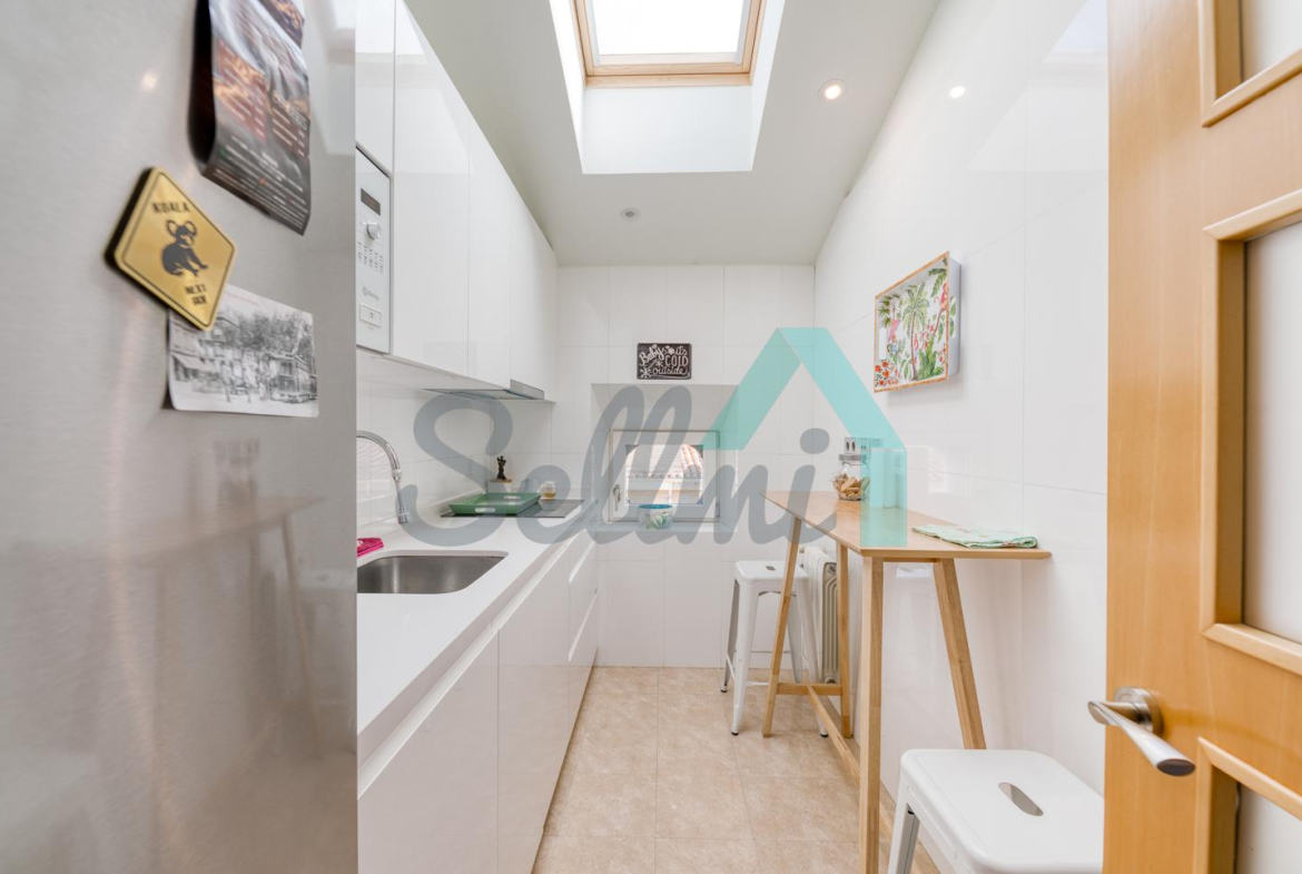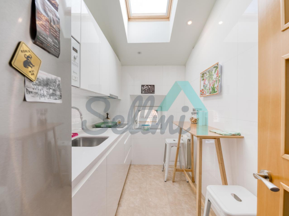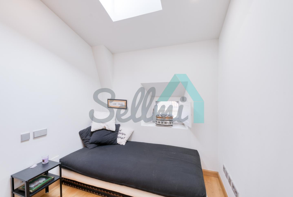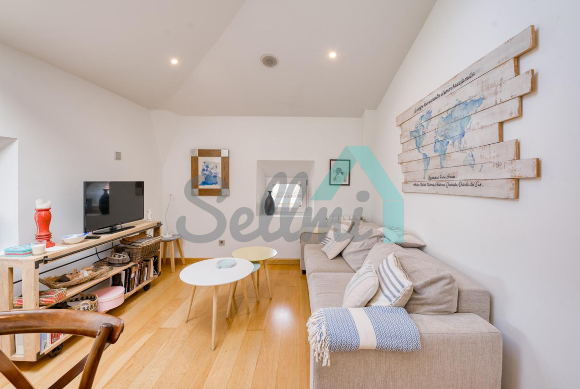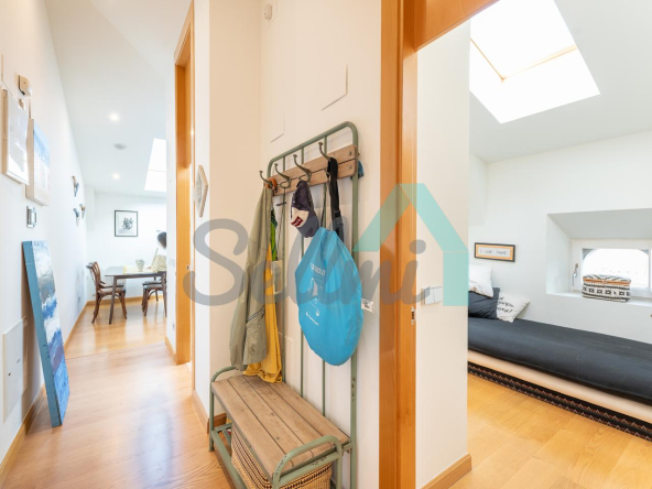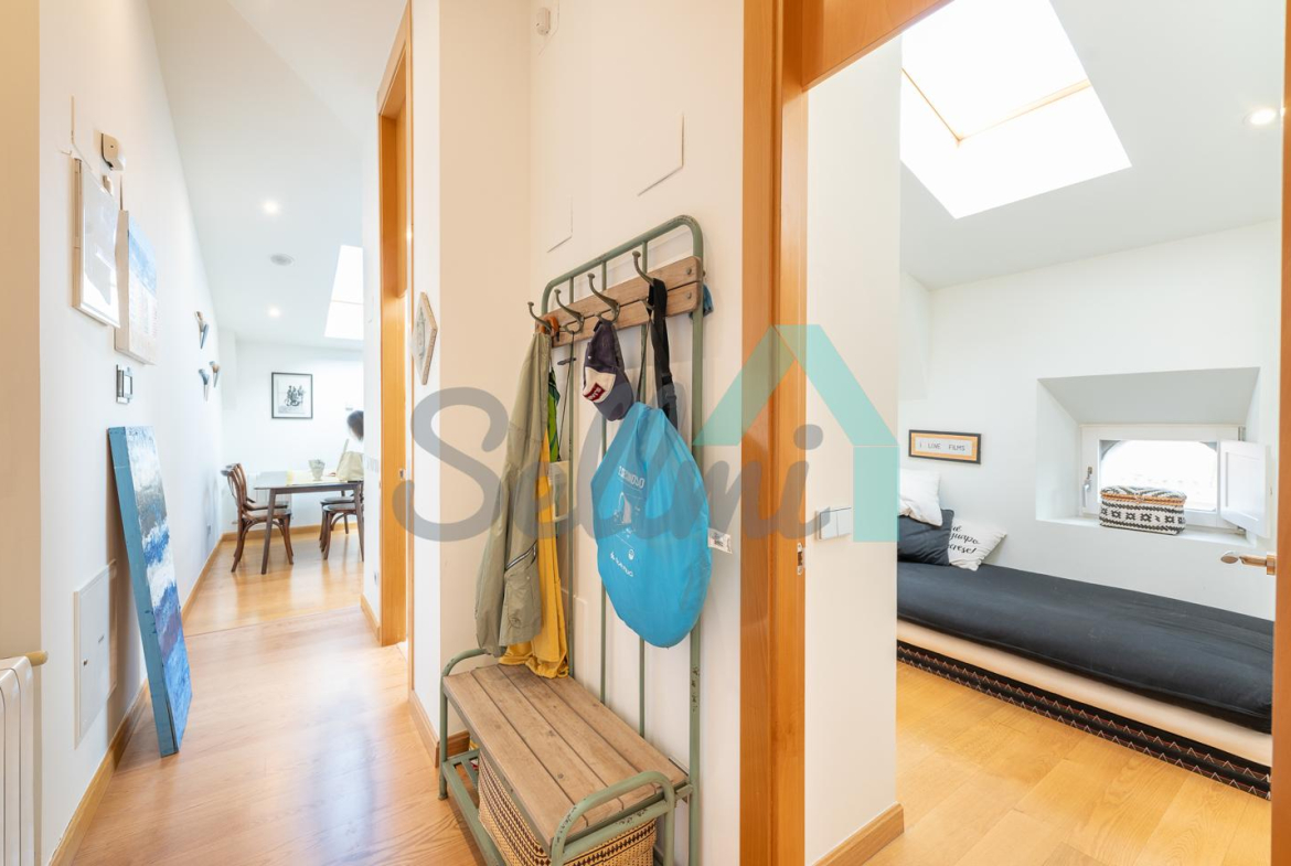 Cuenta con techos altos, suelos de tarima y gres, calefacción central con contador individual de gas natural, armarios empotrados, ventanas de doble acristalamiento, velux motorizados, puerta de seguridad, videoportero, etc.