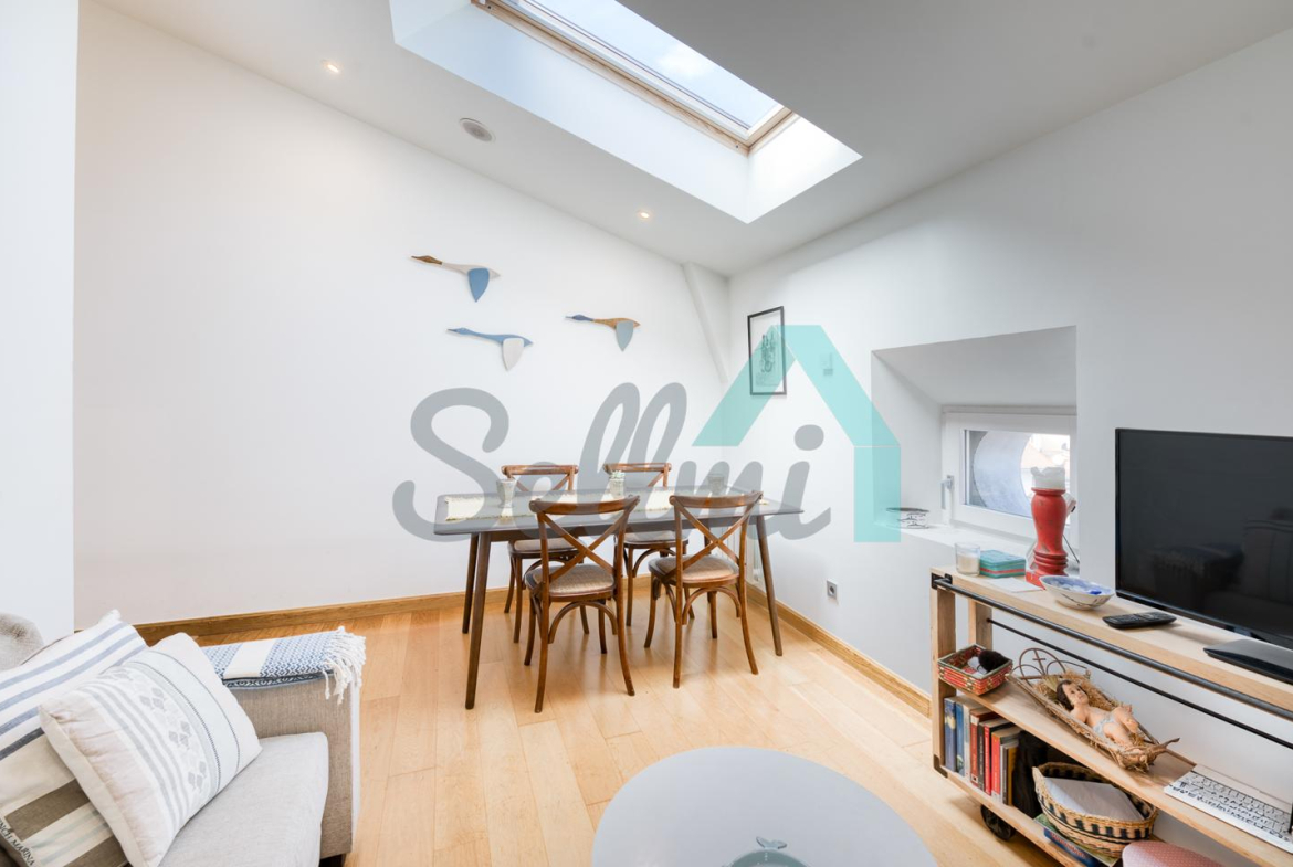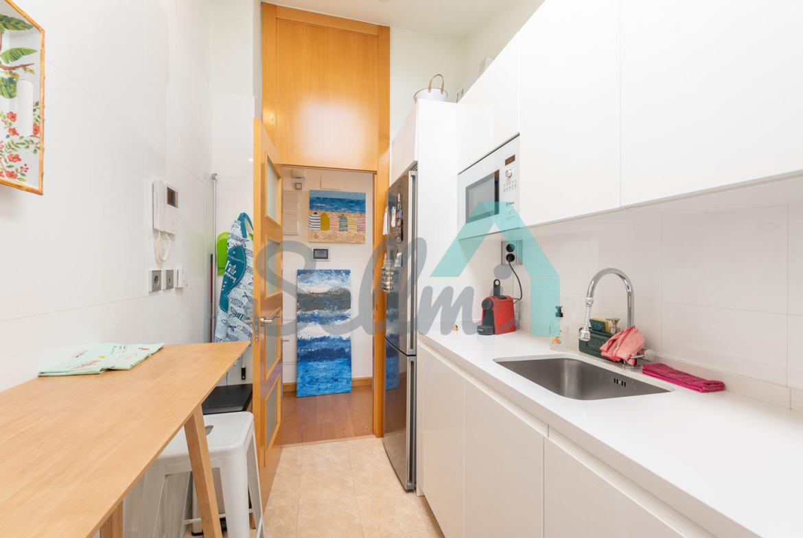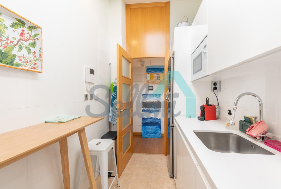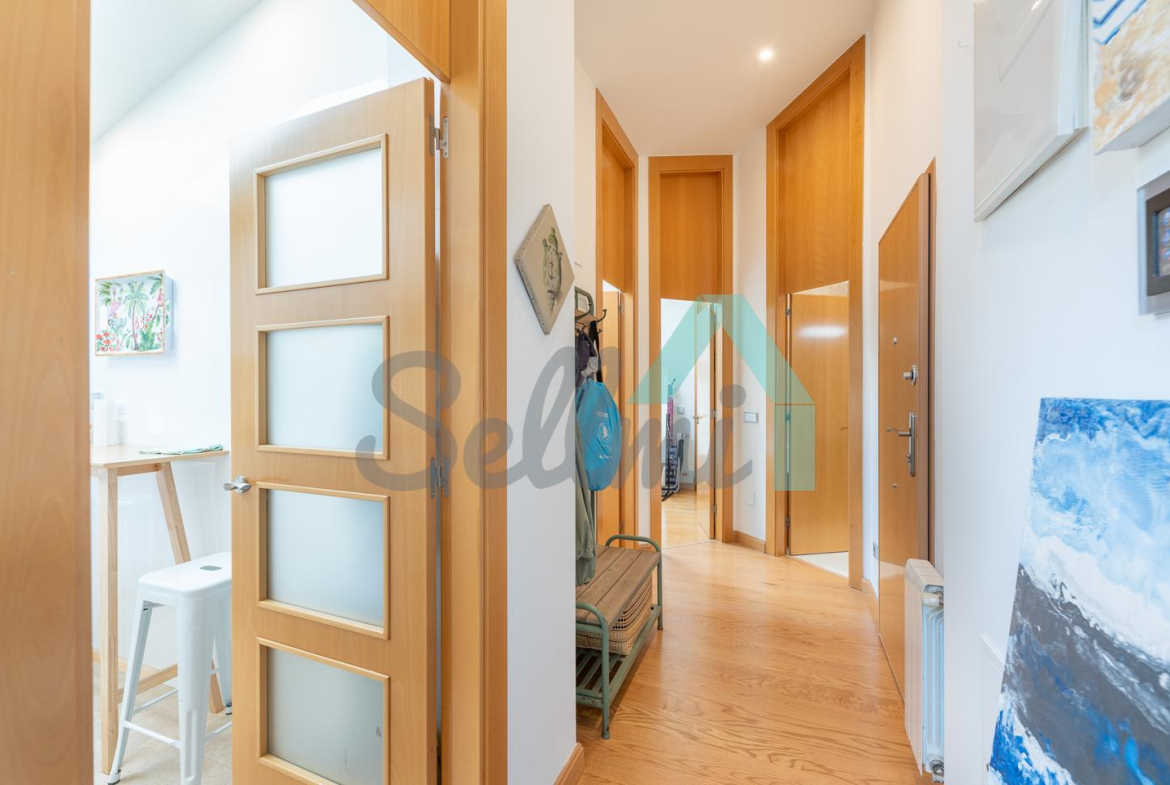 Cuenta con techos altos, suelos de tarima y gres, calefacción central con contador individual de gas natural, armarios empotrados, ventanas de doble acristalamiento, velux motorizados, puerta de seguridad, videoportero, etc.