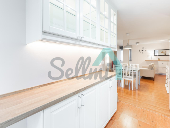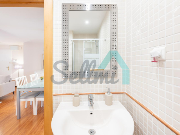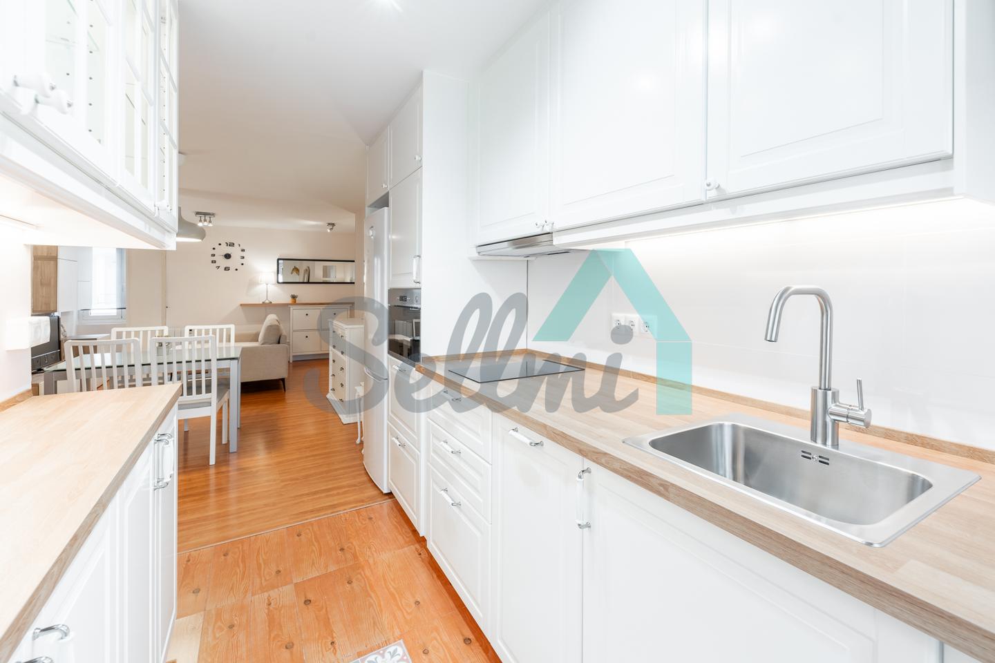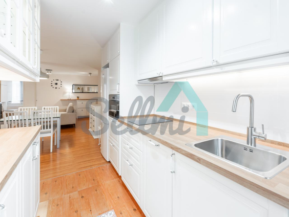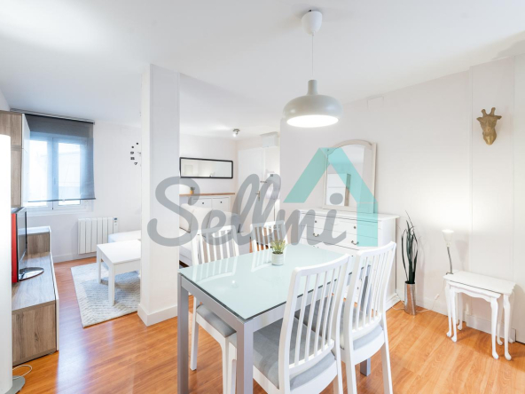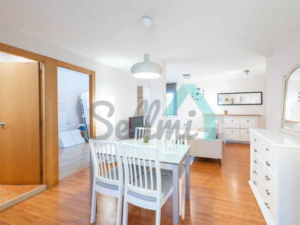 La vivienda, que se encuentra en perfecto estado, tiene una superficie construida de 63 m2 distribuidos en salón comedor, cocina amueblada y equipada (recién reformada, a estrenar), dos habitaciones y un baño completo. Es exterior y muy luminosa, con orientación sur y norte.