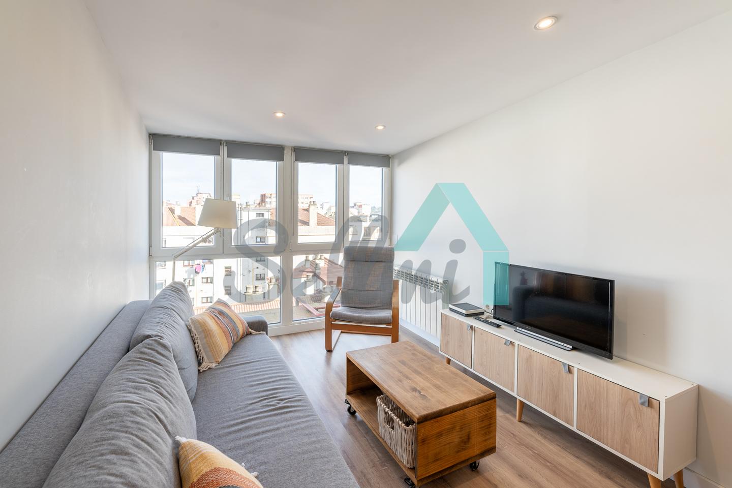 Piso en alquiler situado en La Arena, Gijón, a unos 500 metros de la Playa de San Lorenzo. Se ubica en la novena planta de un edificio construido en 1966 y que cuenta con ascensor (en entreplanta). Es exterior y muy luminoso, con orientación norte.