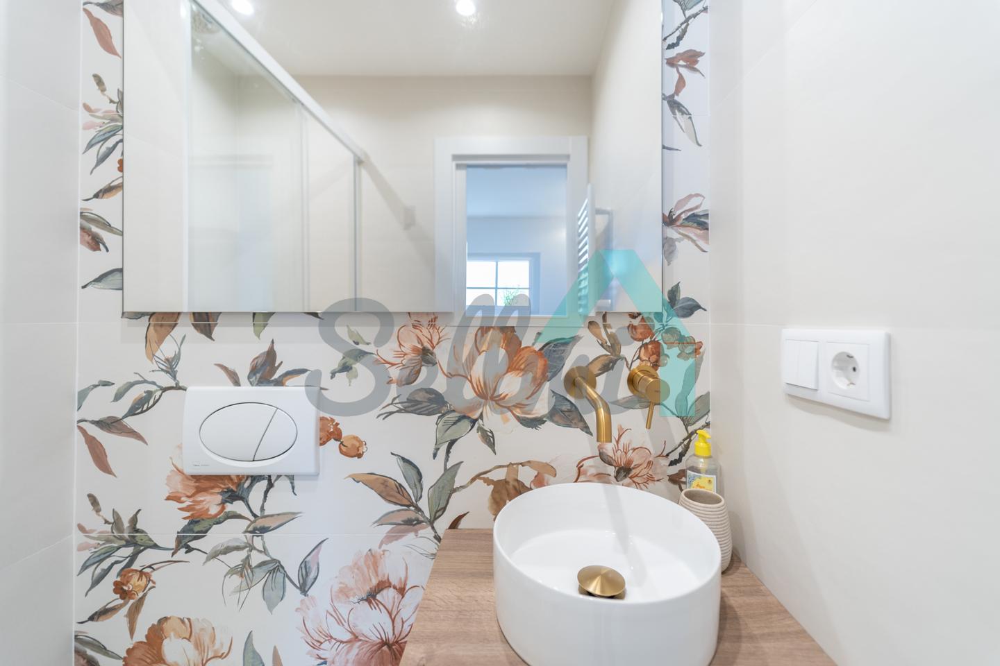 La vivienda, que ha sido recientemente reformada y se encuentra en perfecto estado, tiene una superficie construida de 88 m² distribuidos en salón comedor, terraza de unos 10 m2, cocina amueblada y equipada (lavadora-secadora, frigorífico combi, lavavajillas, placa de inducción y campana extractora), dos habitaciones (uno de ellos con baño en suite) y dos baños completos.