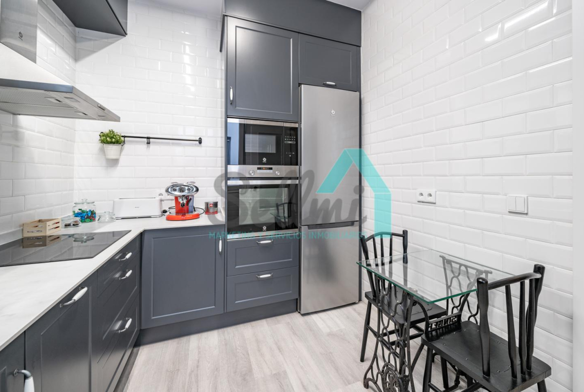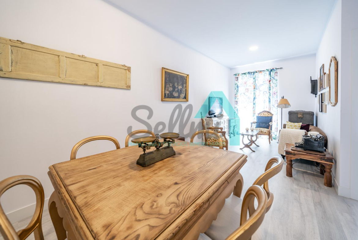 La vivienda, que ha sido totalmente reformada, tiene una superficie construida de 90 m2 distribuidos en hall de entrada, salón comedor, cocina amueblada y equipada, dos habitaciones y dos baños completos.