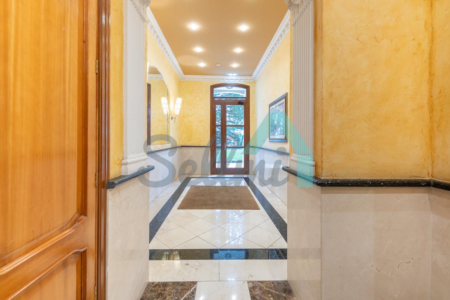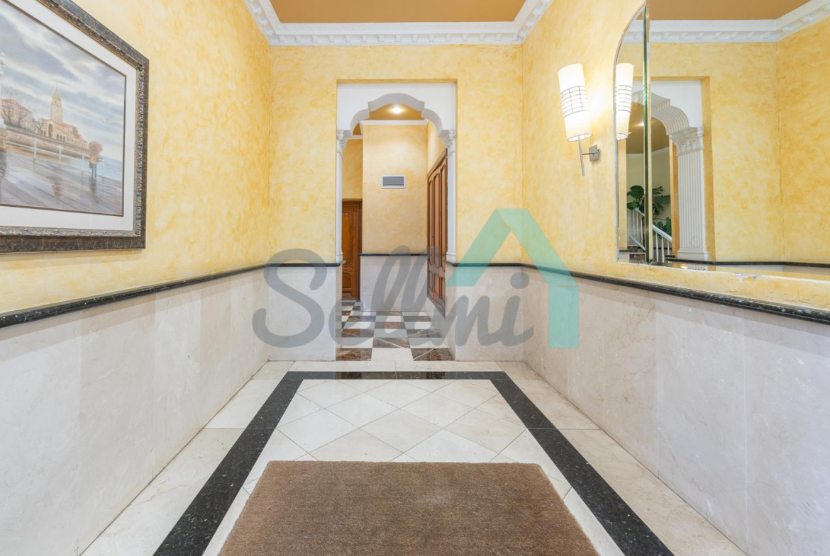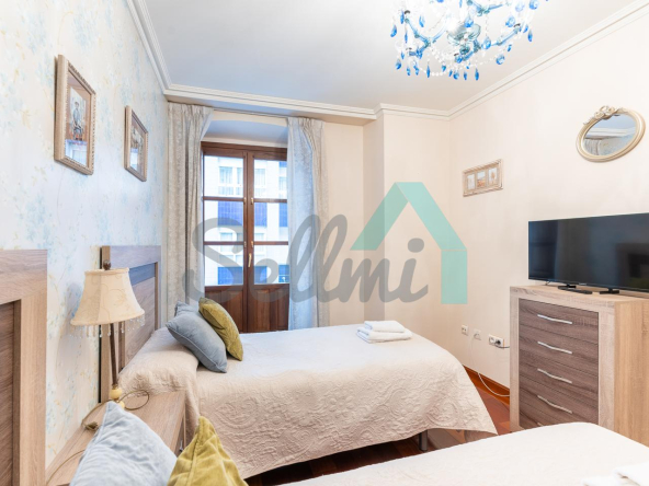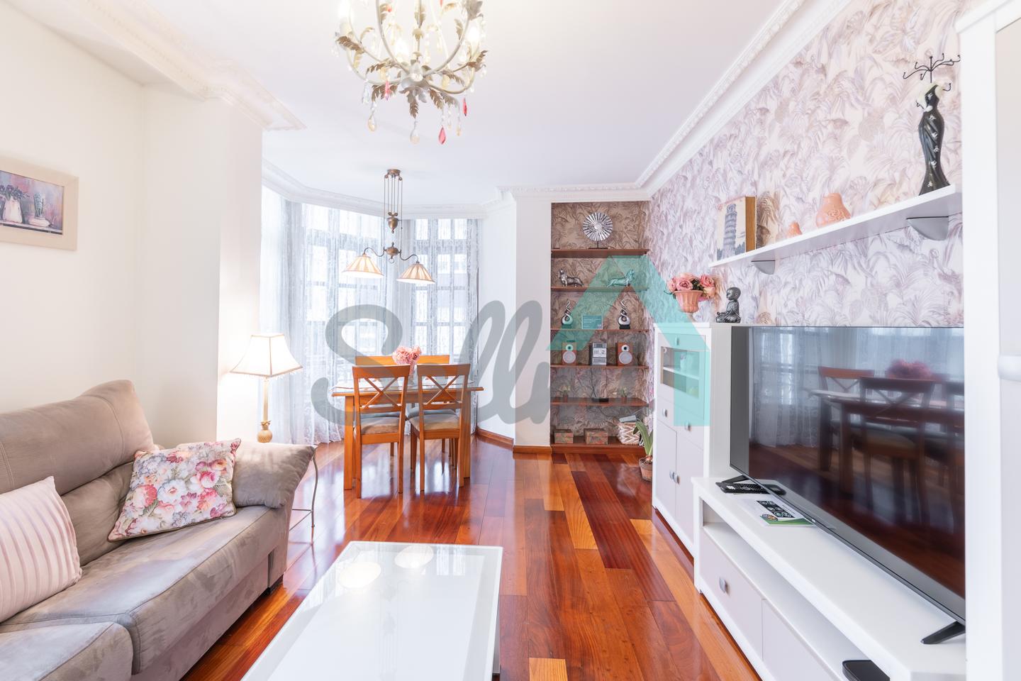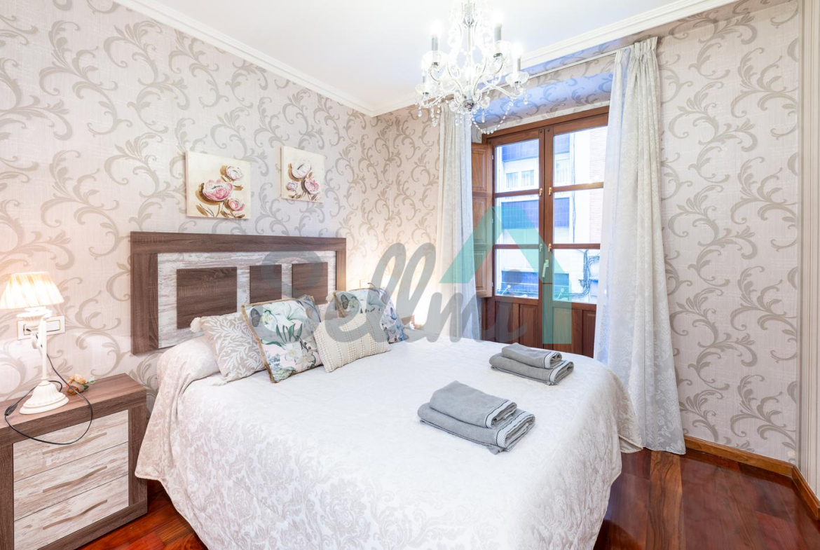 Se vende amueblado y dispone de techos altos con molduras de escayola, suelos de madera de jatoba y gres, ventanas de madera con doble acristalamiento, balcones, calefacción individual eléctrica de suelo radiante, ventilación mecánica, armarios empotrados, puerta de seguridad, etc. Es totalmente exterior, en esquina y con orientación este y norte.