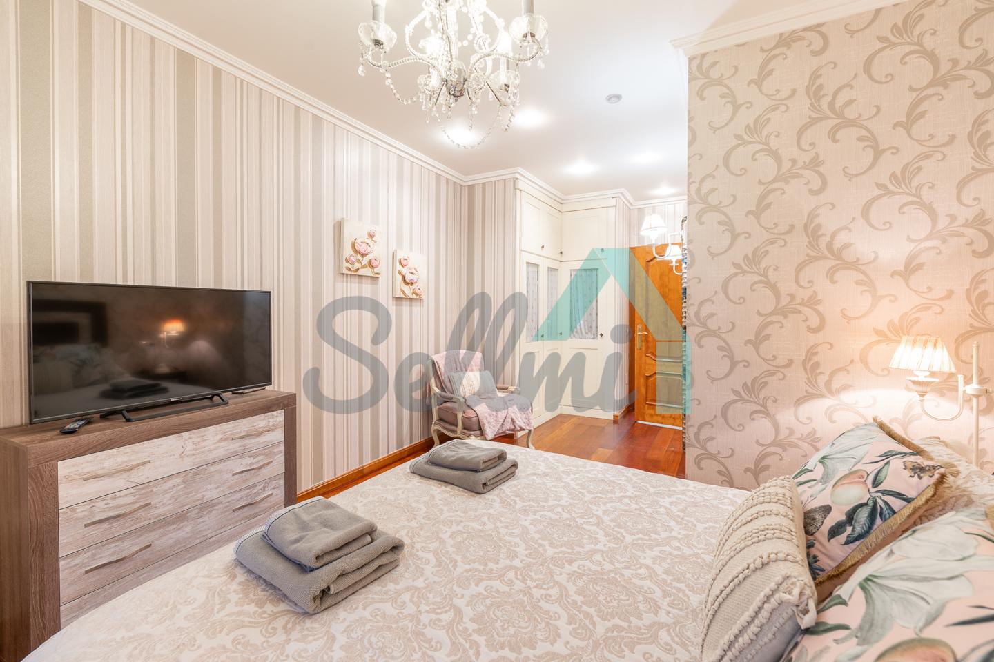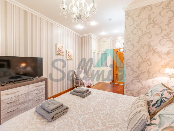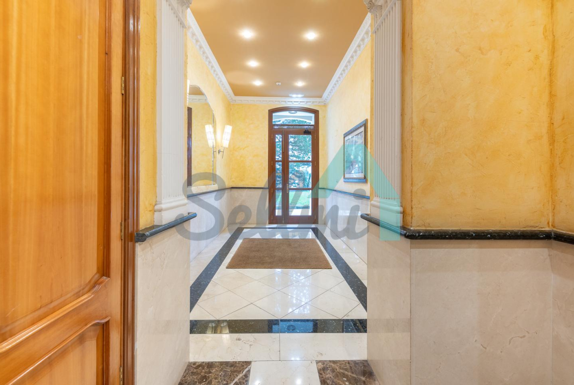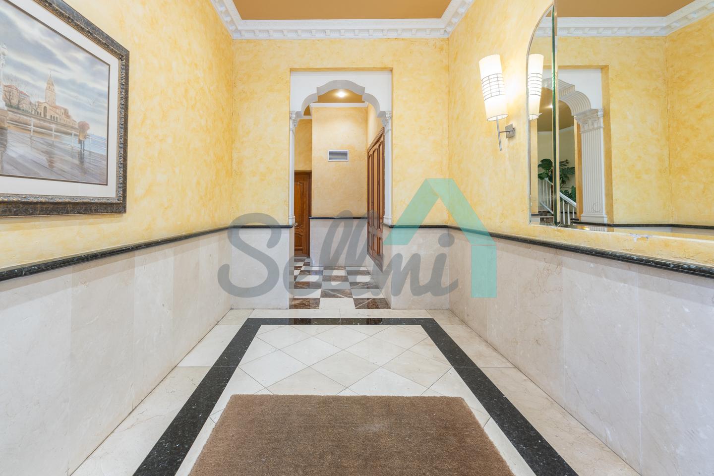 Se vende amueblado y dispone de techos altos con molduras de escayola, suelos de madera de jatoba y gres, ventanas de madera con doble acristalamiento, balcones, calefacción individual eléctrica de suelo radiante, ventilación mecánica, armarios empotrados, puerta de seguridad, etc. Es totalmente exterior, en esquina y con orientación este y norte.