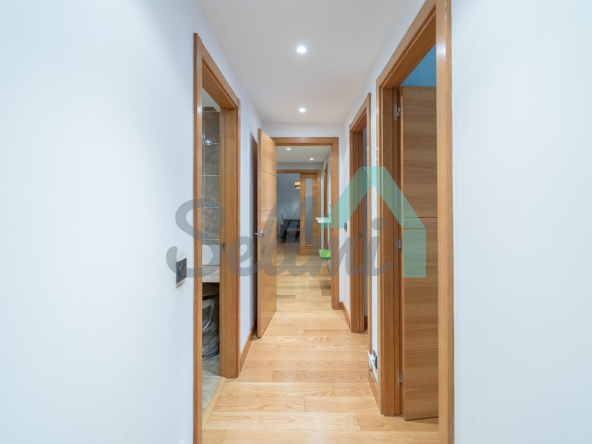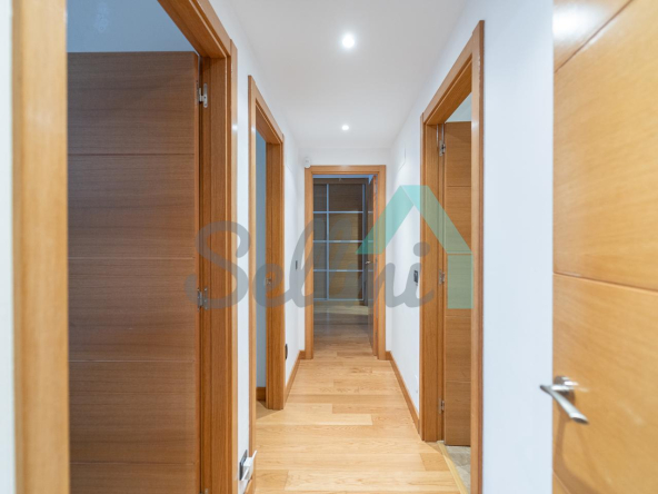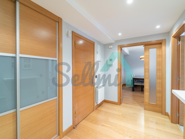 Dispone de suelos de tarima y gres, ventanas de doble acristalamiento, calefacción central con contador individual de gas ciudad, persianas eléctricas, alarma, sensor de agua y de fuego, preinstalación de aspiración central, domótica, armarios empotrados, puerta de seguridad, videoportero, etc.
