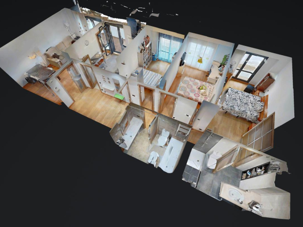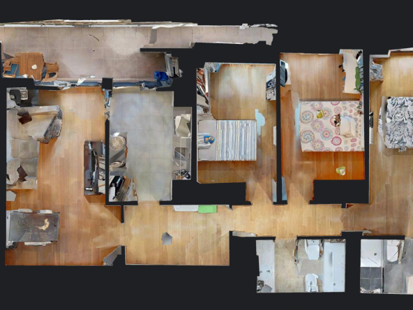 La vivienda, que se encuentra en perfecto estado, tiene una superficie construida de 114 m2 distribuidos en hall de entrada, salón comedor, cocina amueblada, tres habitaciones y dos baños completos. Cuenta con una terraza con acceso desde todas las estancias.