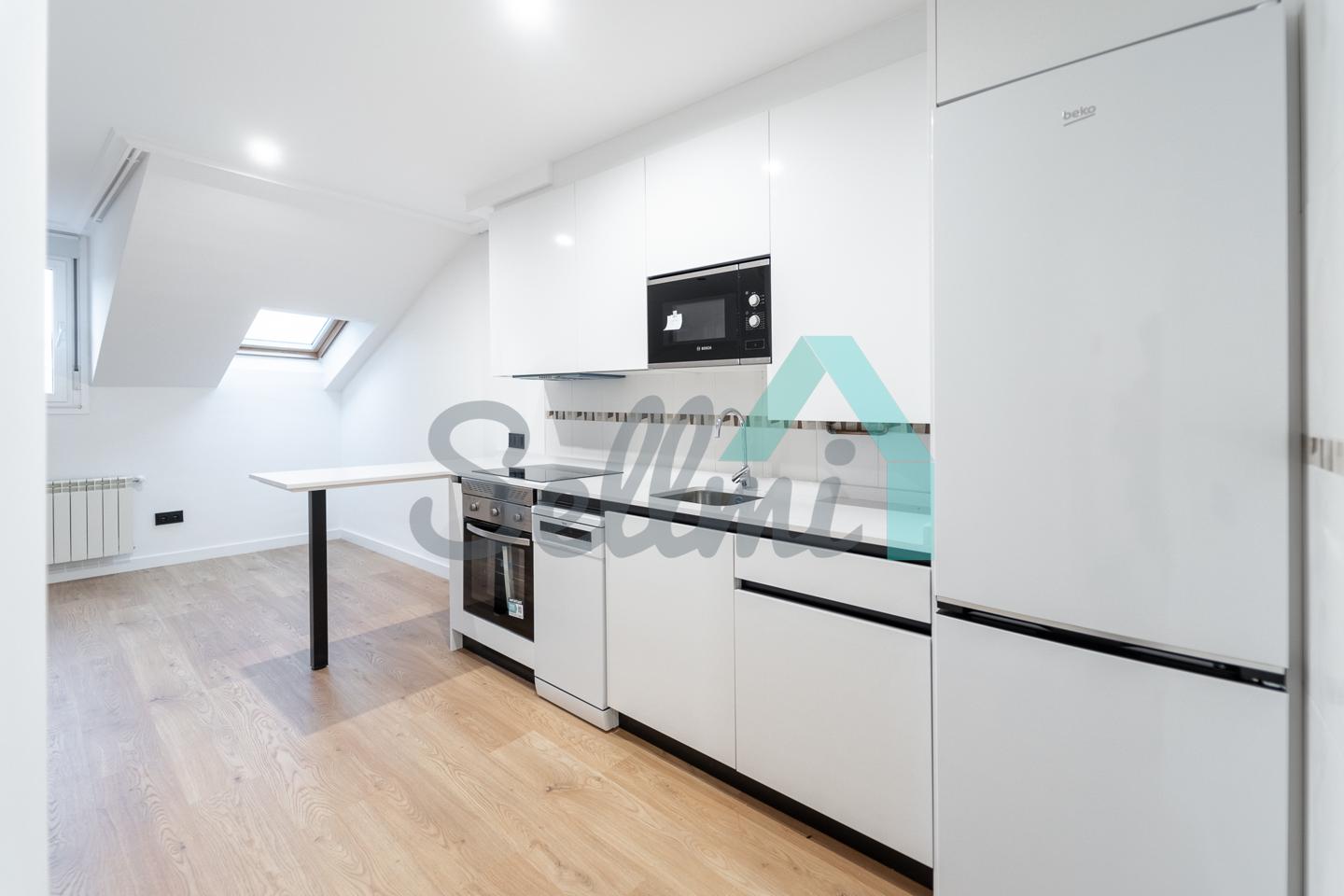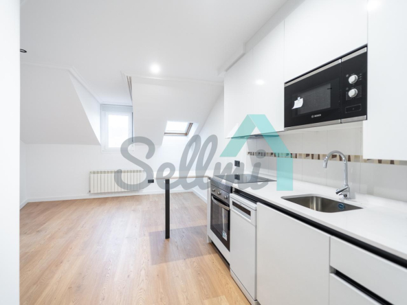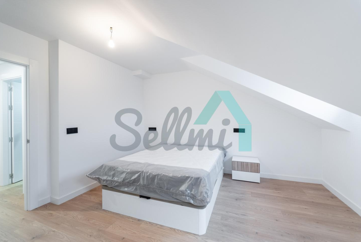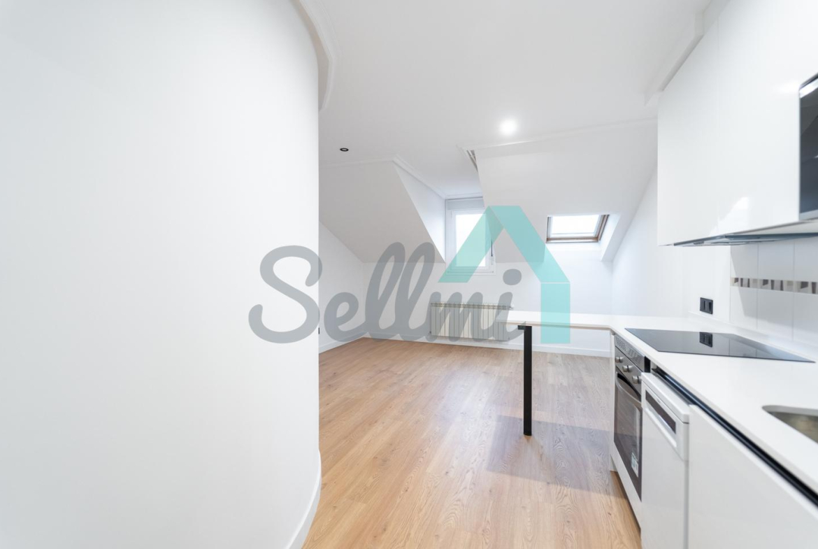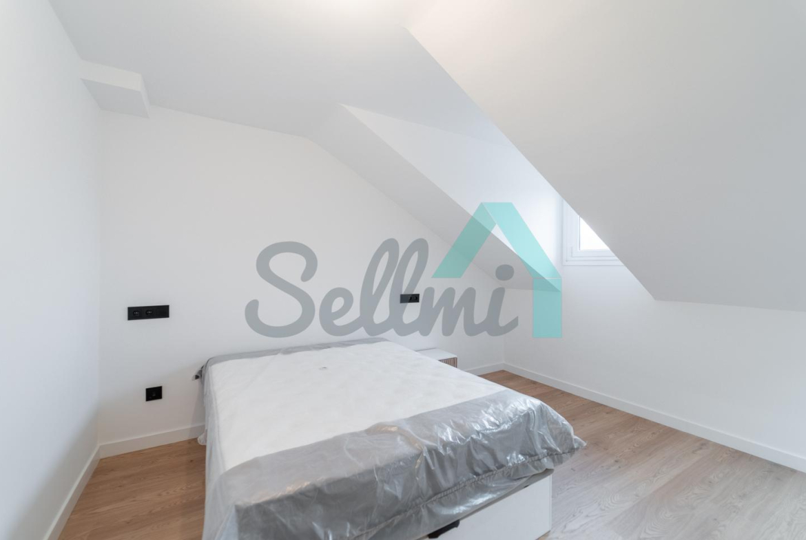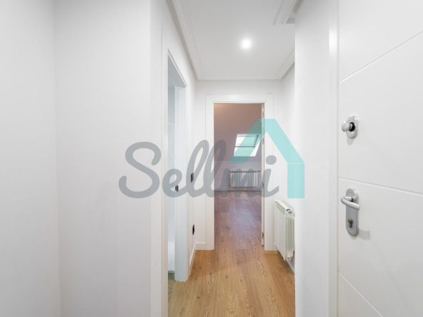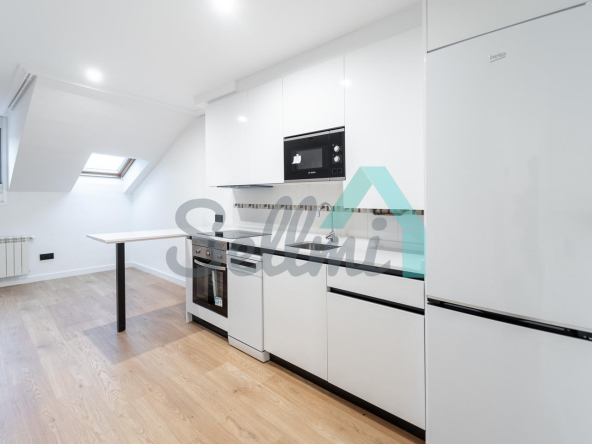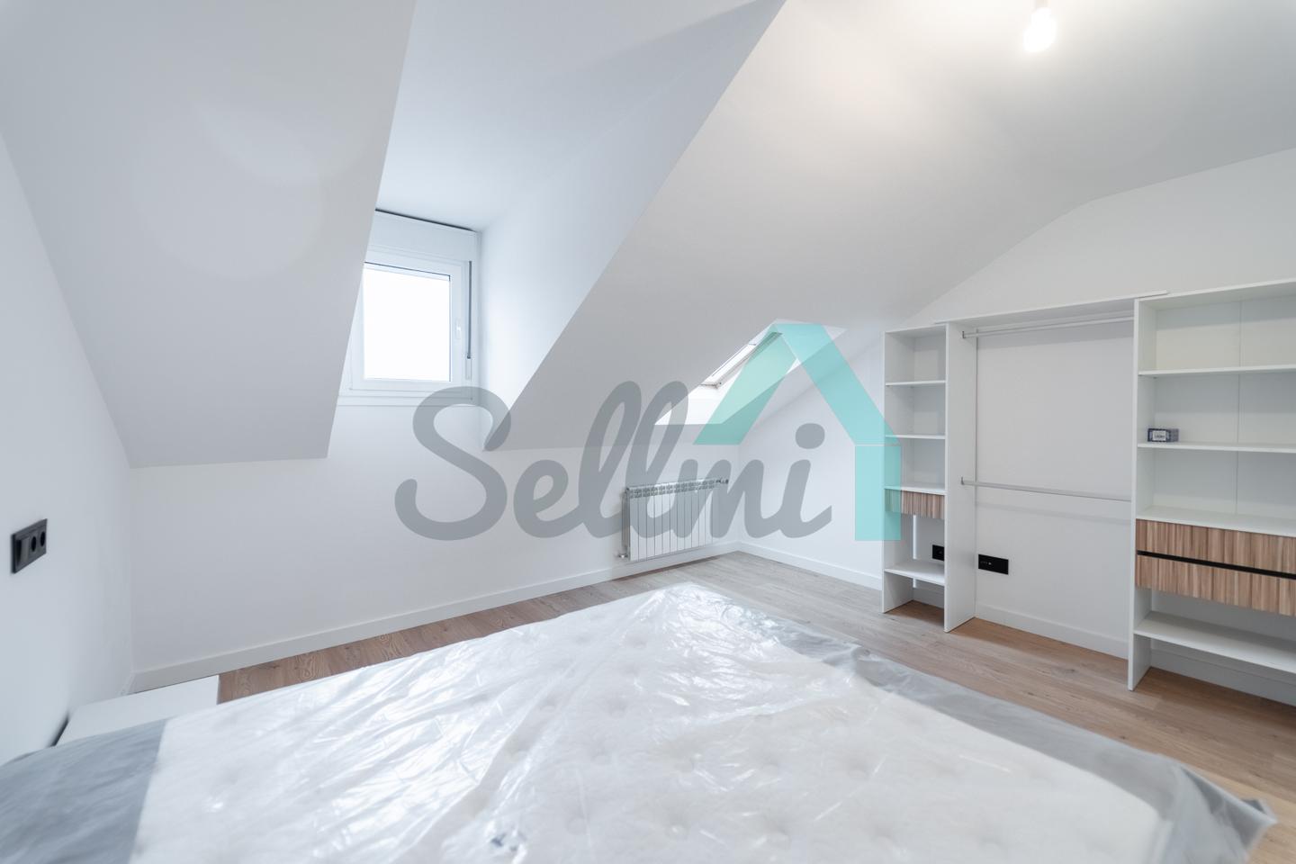 Se alquila parcialmente amueblada y dispone de servicios de agua caliente y calefacción por gas natural, suelos de tarima y gres, ventanas de PVC y velux con doble acristalamiento, puerta de seguridad, videoportero, etc.
