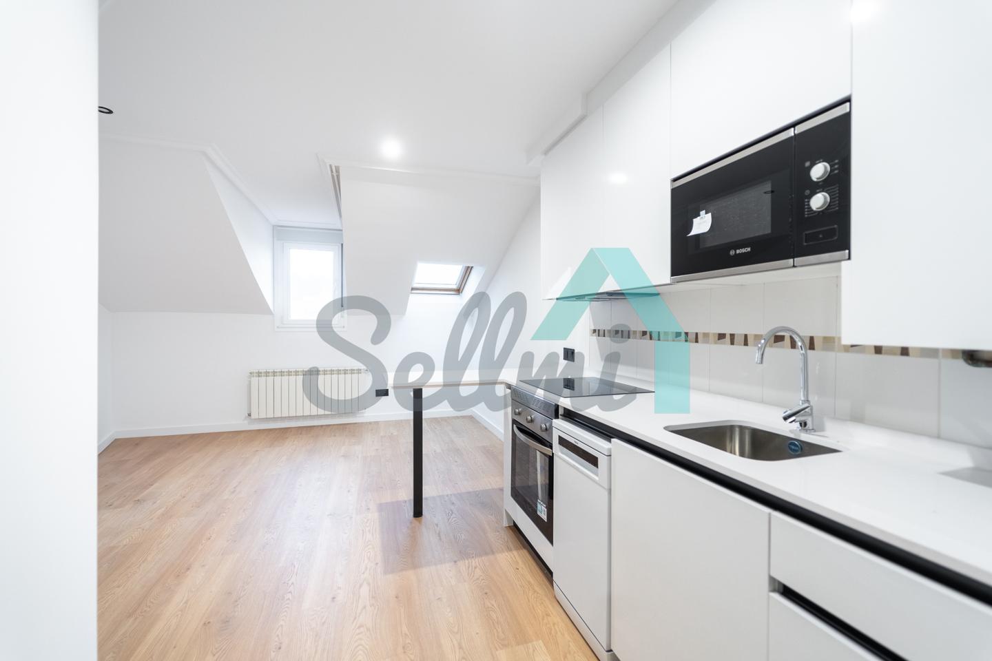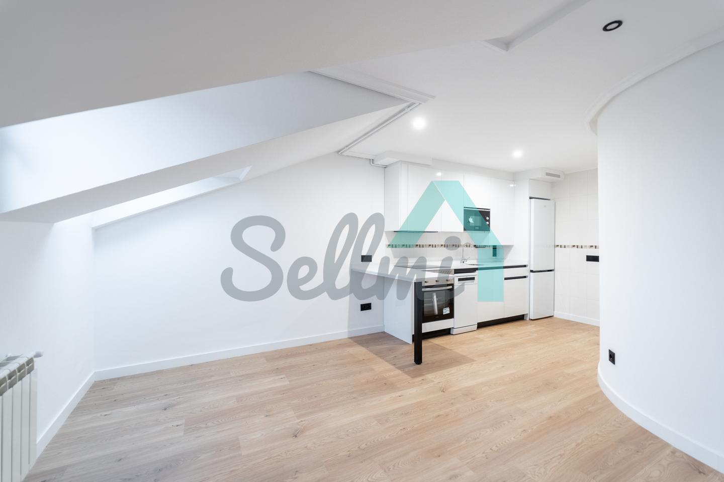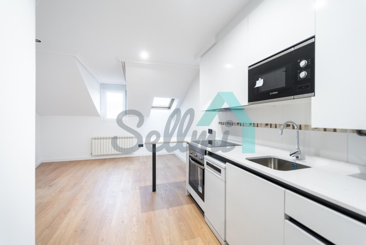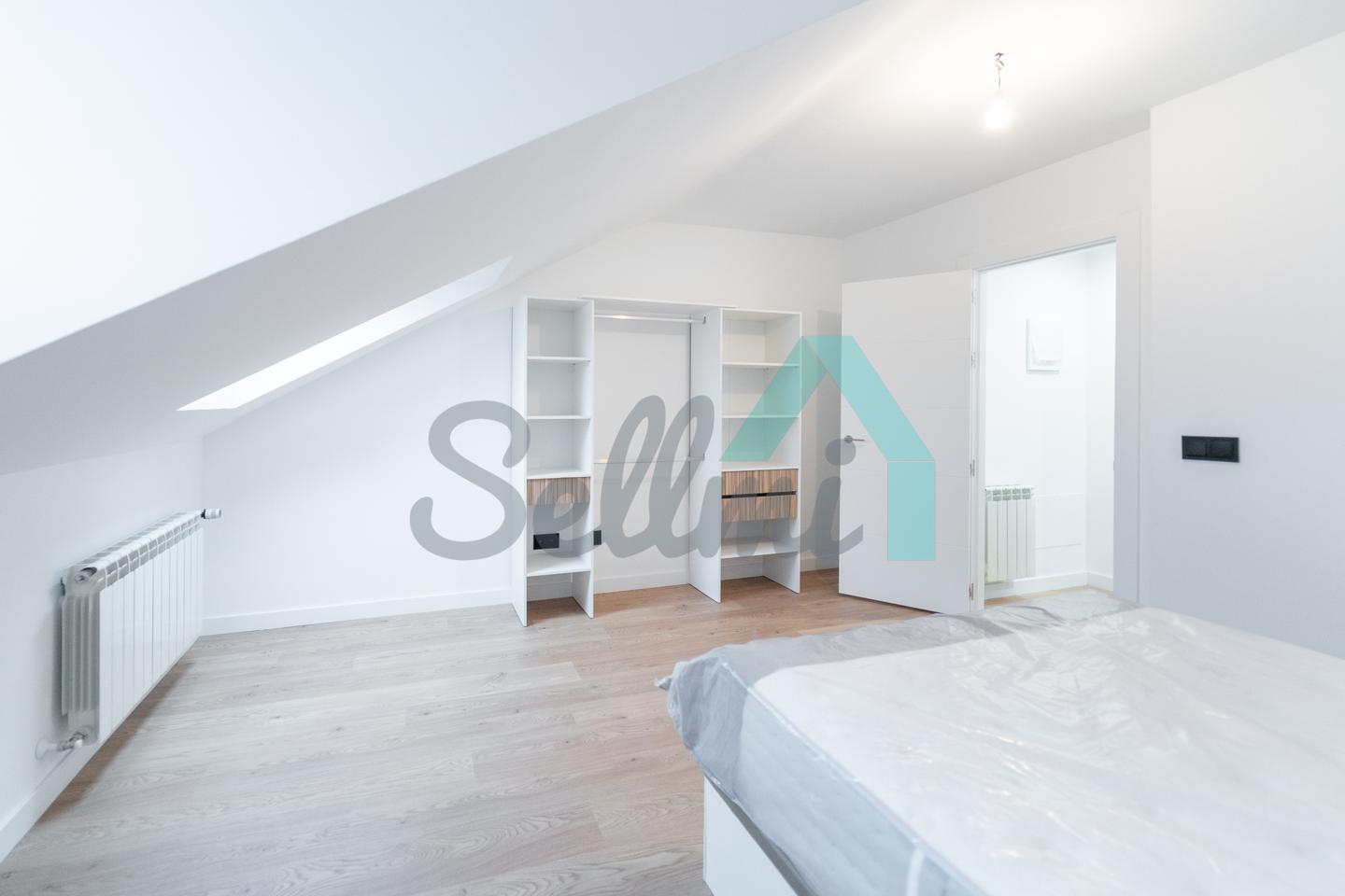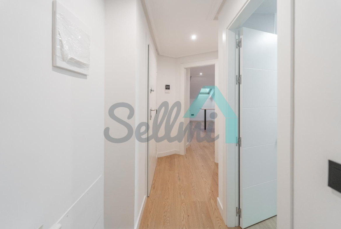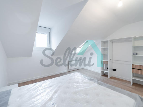 Se alquila parcialmente amueblada y dispone de servicios de agua caliente y calefacción por gas natural, suelos de tarima y gres, ventanas de PVC y velux con doble acristalamiento, puerta de seguridad, videoportero, etc.
