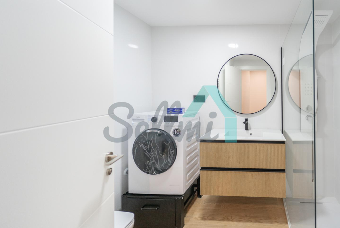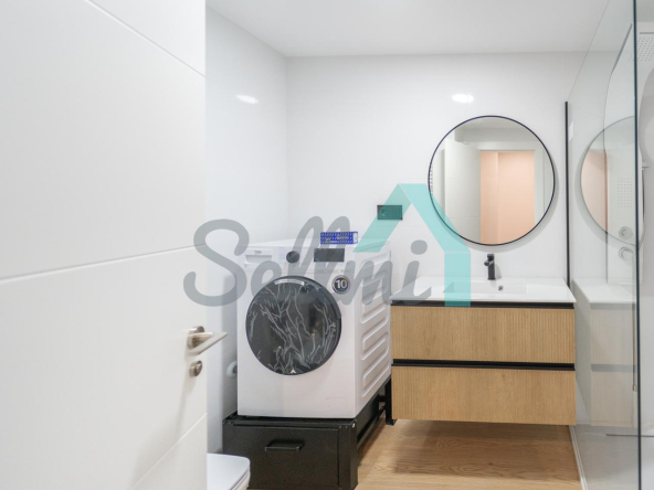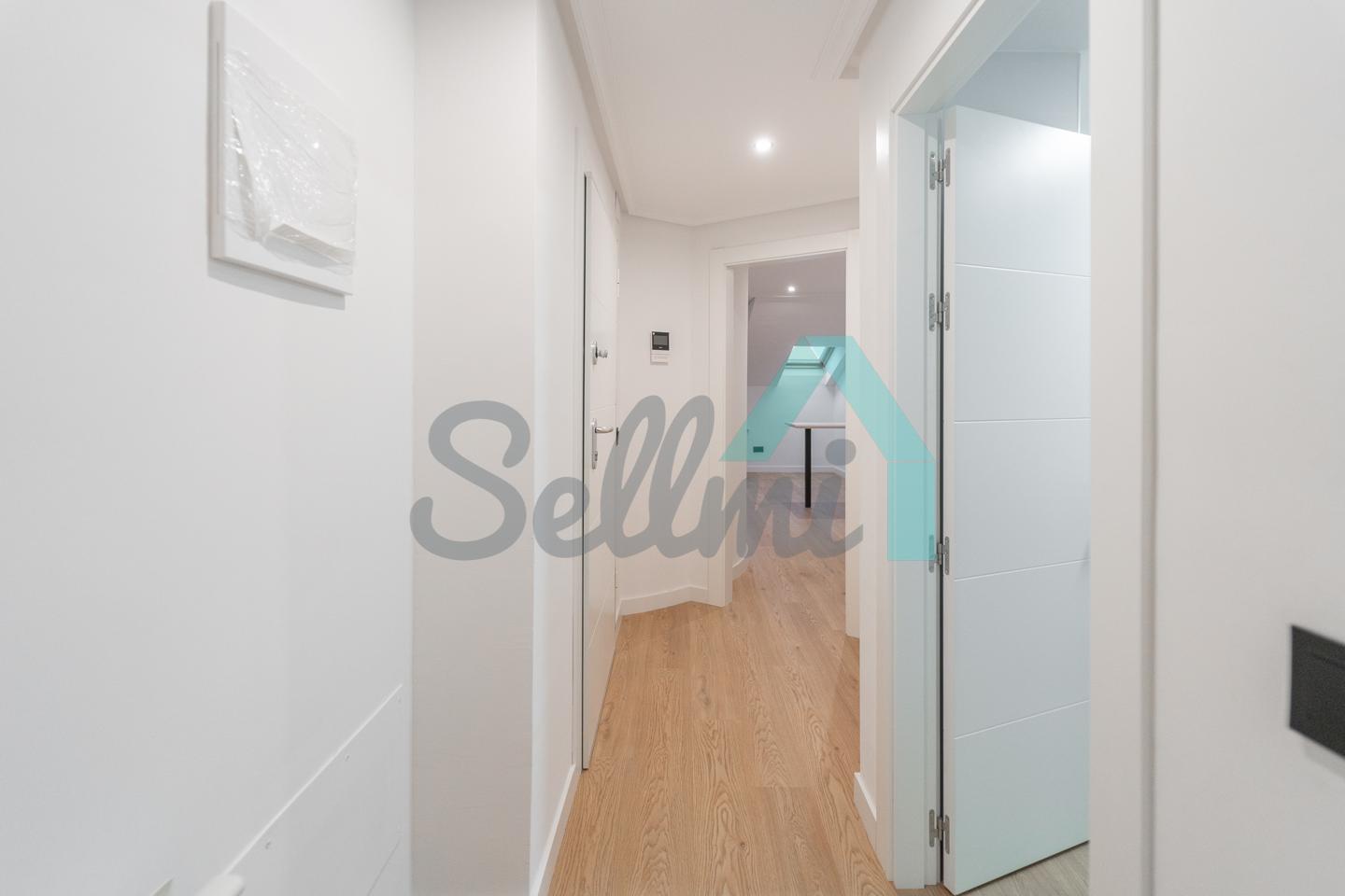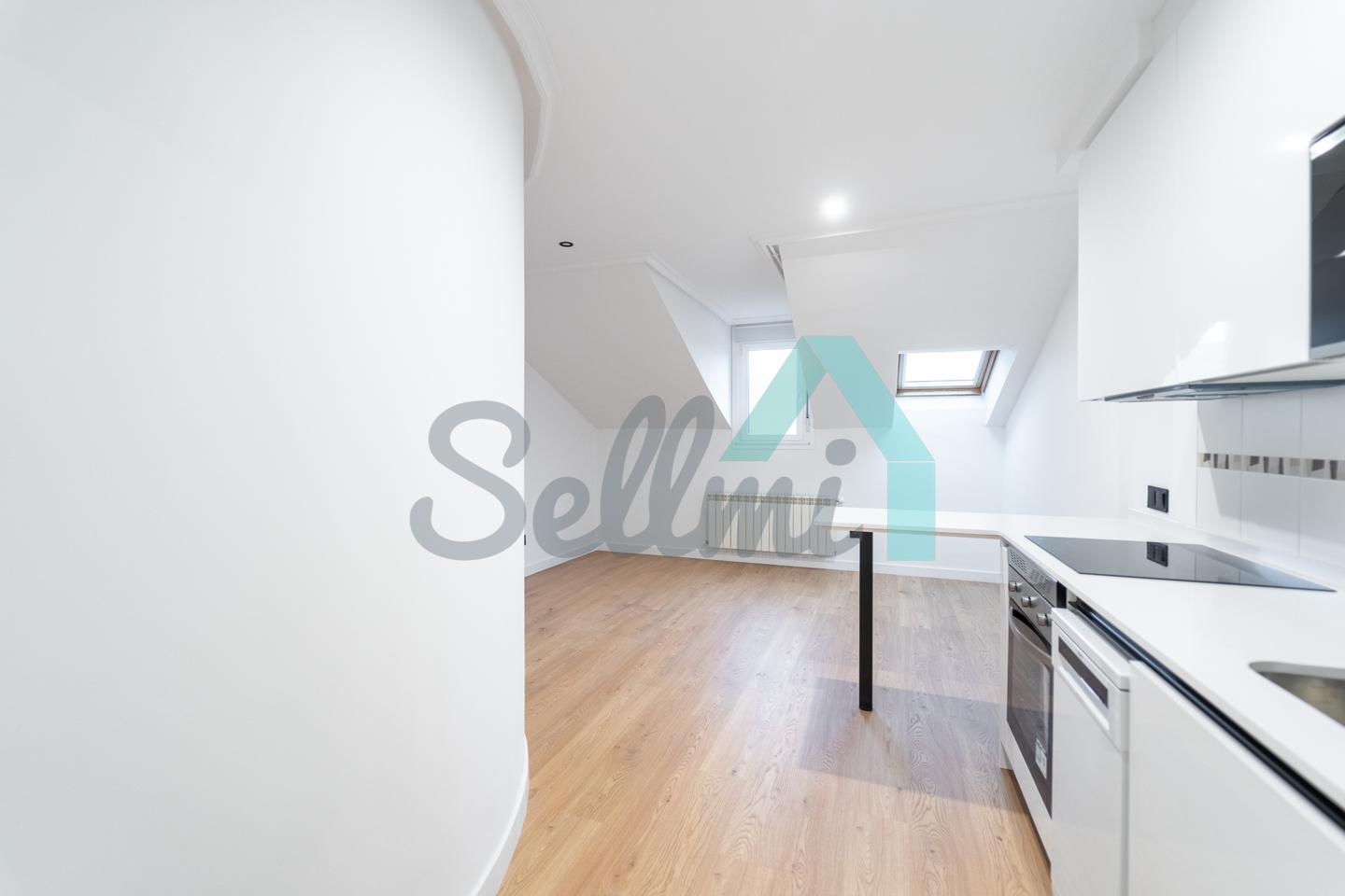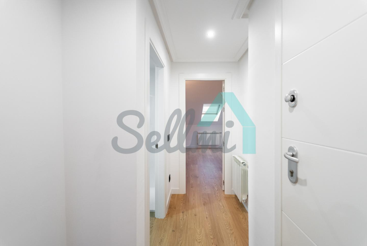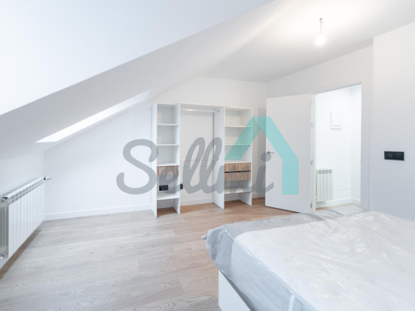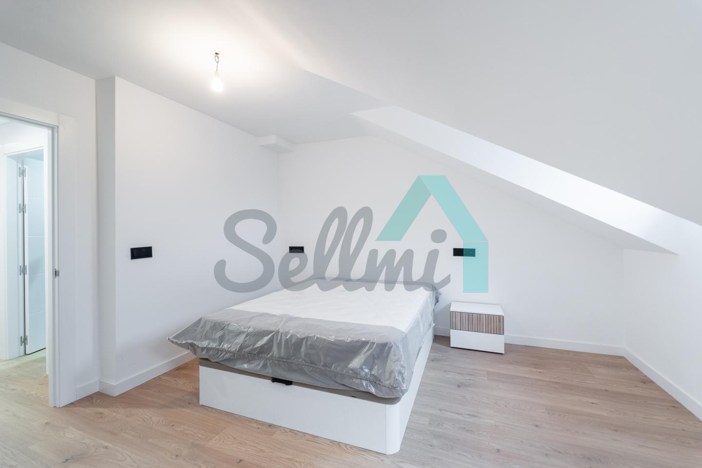 Se alquila parcialmente amueblada y dispone de servicios de agua caliente y calefacción por gas natural, suelos de tarima y gres, ventanas de PVC y velux con doble acristalamiento, puerta de seguridad, videoportero, etc.
