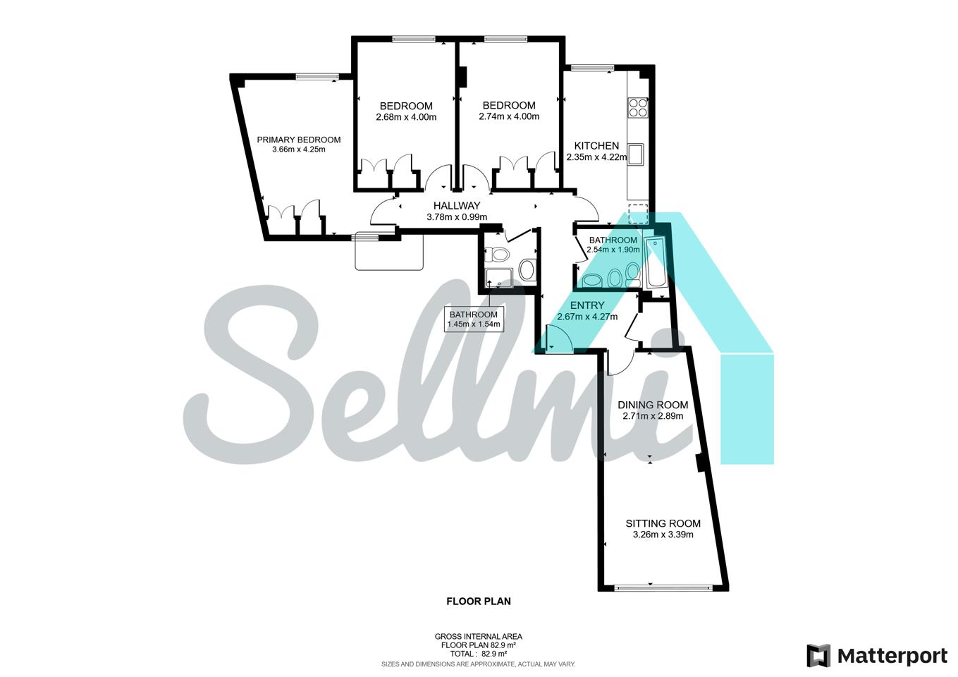 Tiene una superficie construida de 100 m² distribuidos en hall de entrada, salón comedor, cocina amueblada y equipada, tres habitaciones, dos baños completos y una despensa.